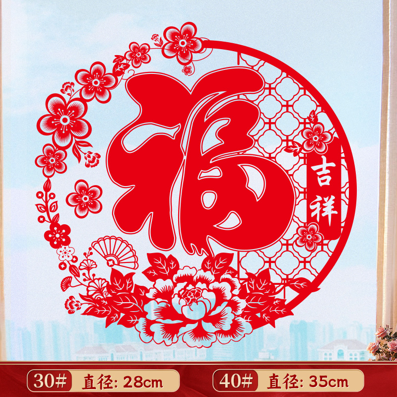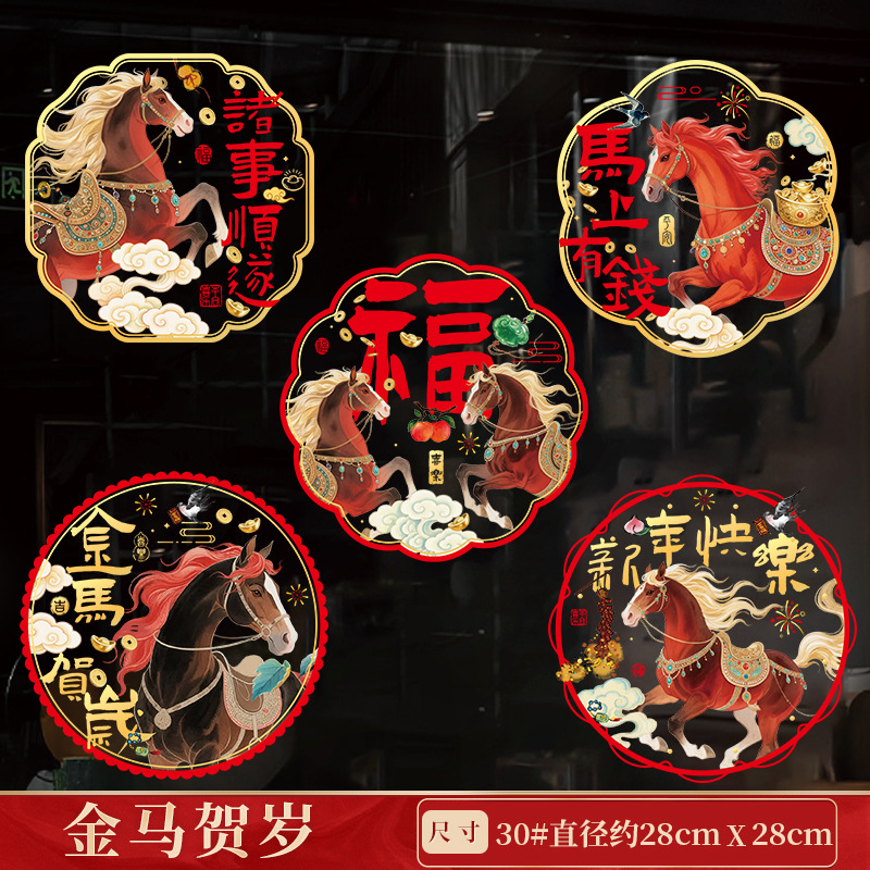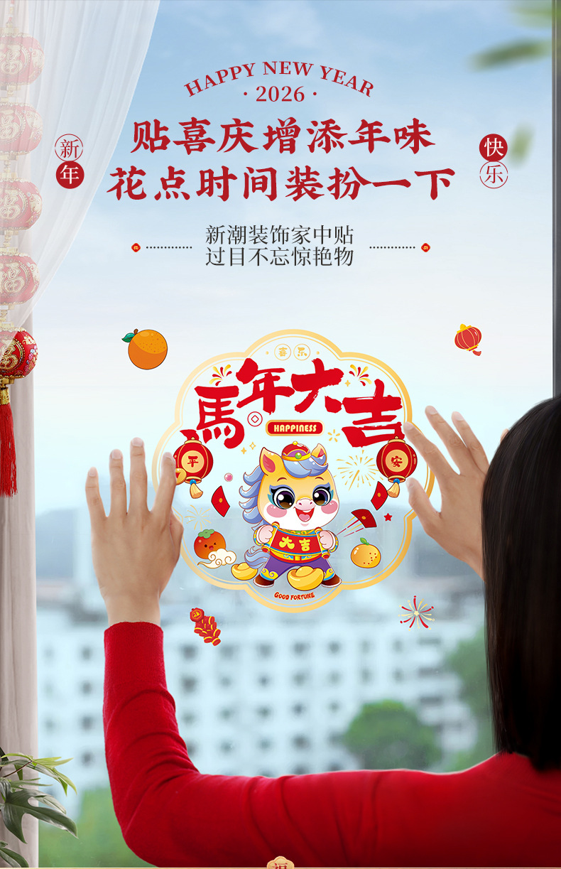 马年新年窗花静电贴福字门贴2026新款过年春节装饰用品玻璃贴剪纸