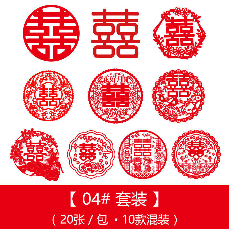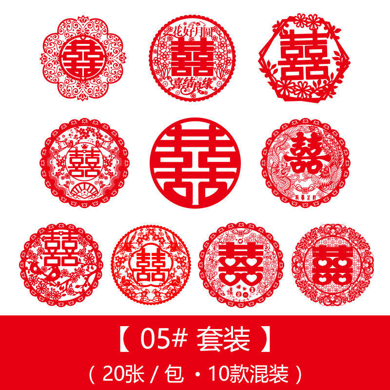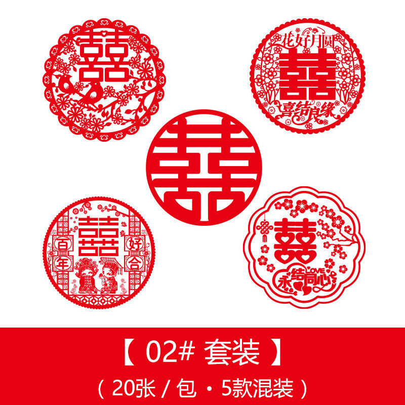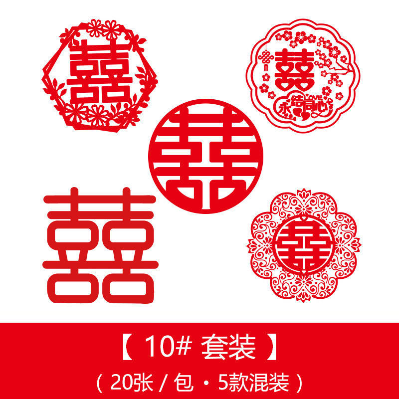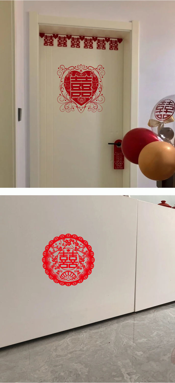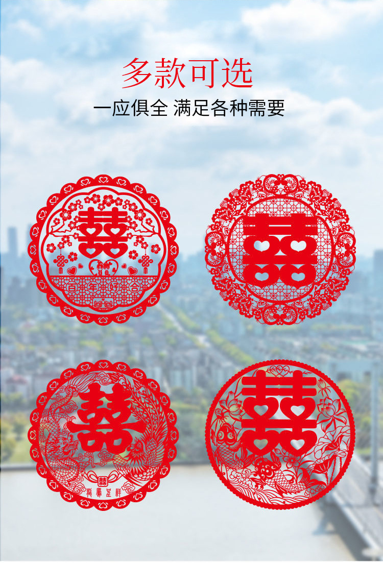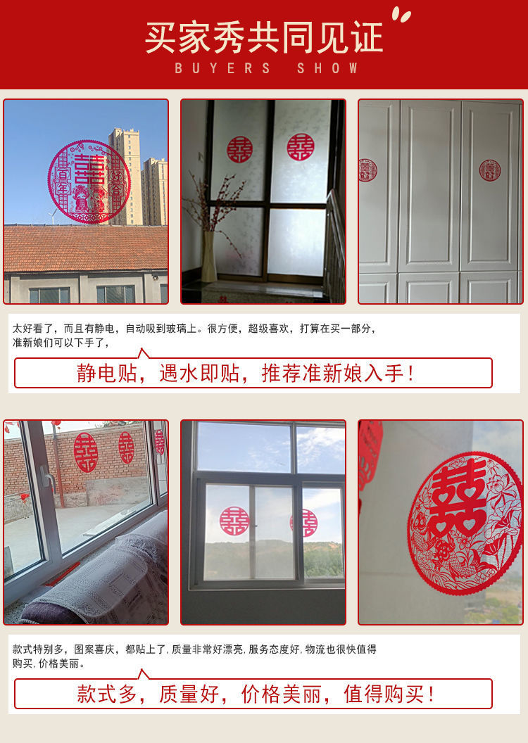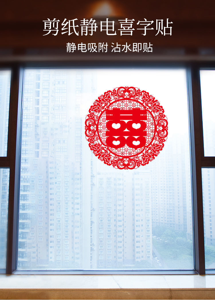 喜宴婚庆用品结婚静电贴窗户车用多尺寸婚礼喜字窗花套装布置装饰