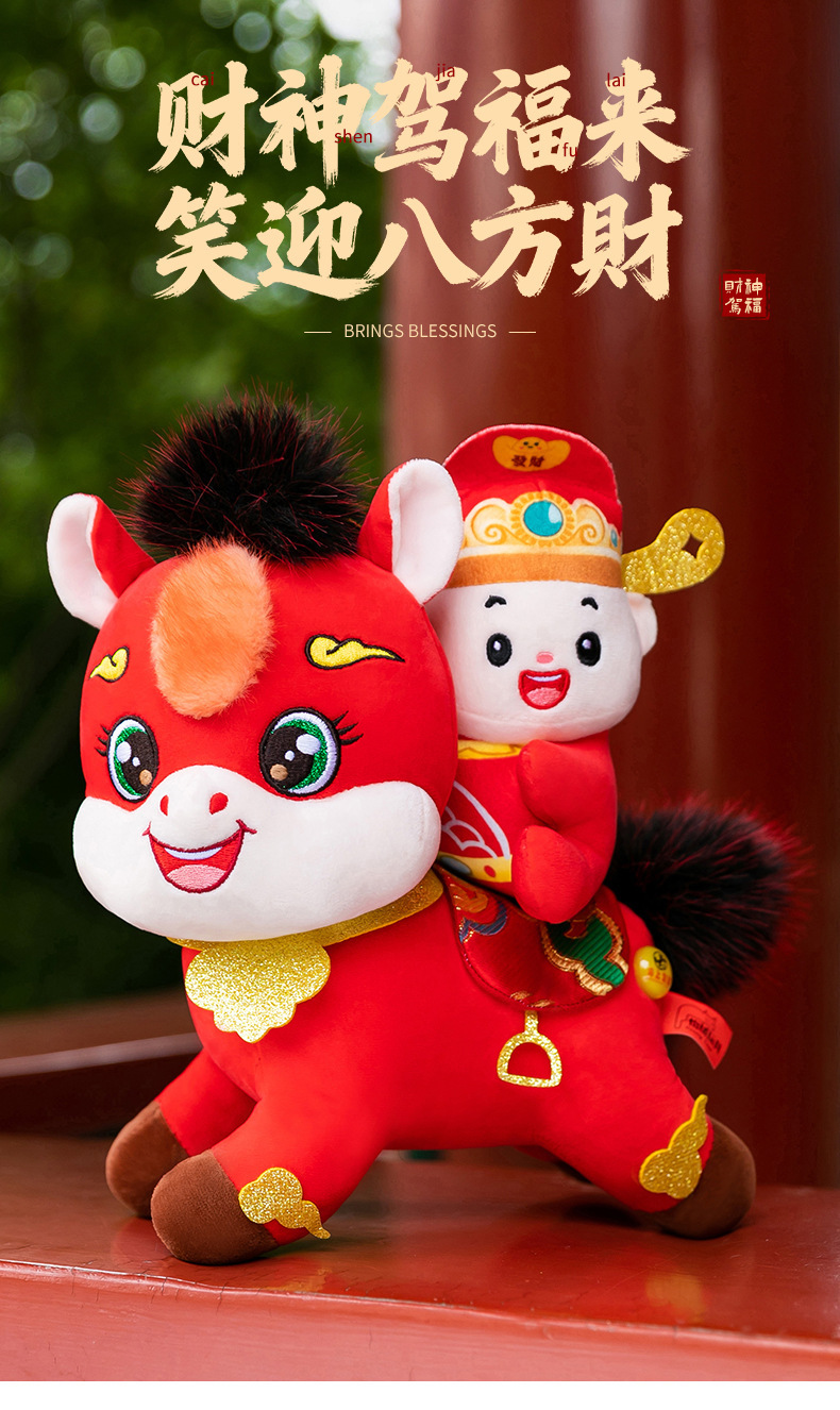 新款马年吉祥物公仔马上发财卡通毛绒玩偶小马娃娃庆店生肖马摆件