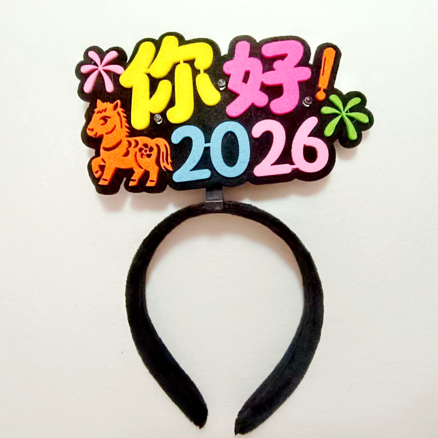 2026马年新年红色发光头箍应援发箍新年祝福语文字聚会礼品厂家定
