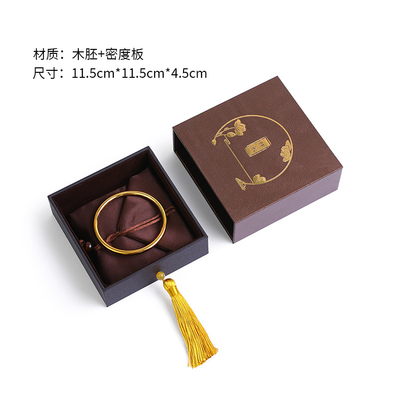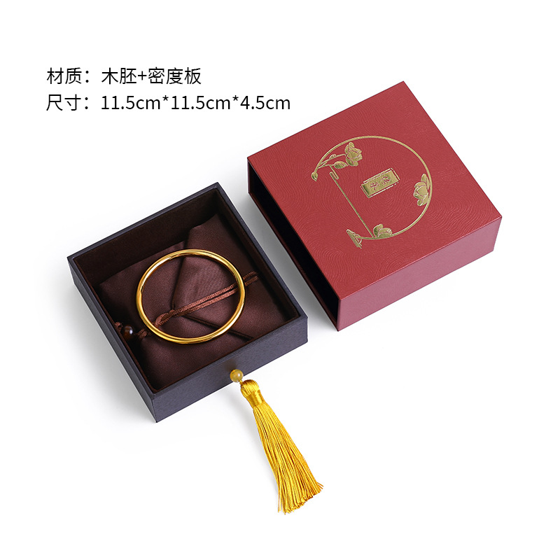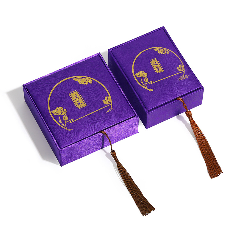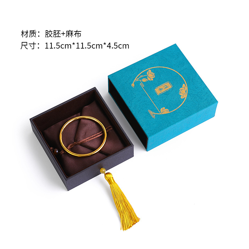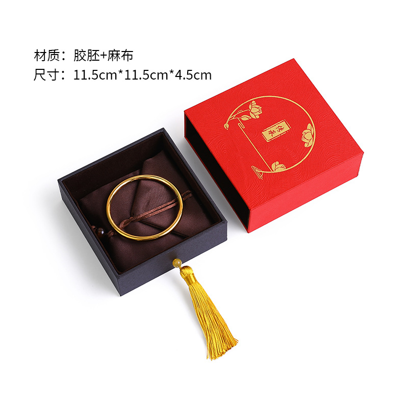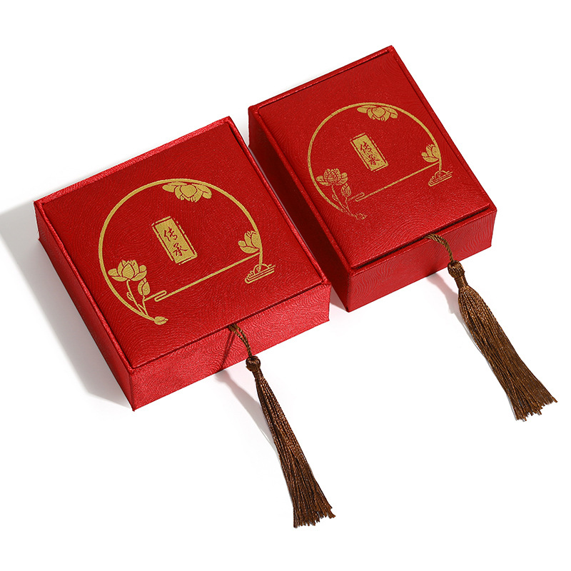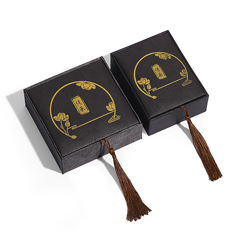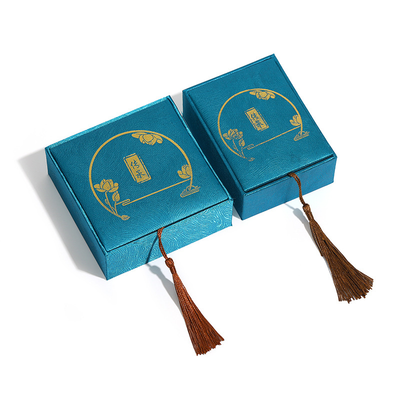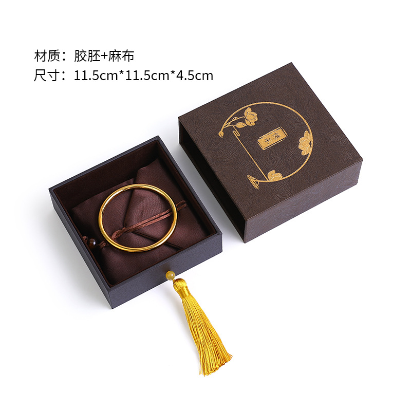 复古中国风书法文玩麻布流苏古风首饰盒佛珠手串盒玉器戒指项链盒