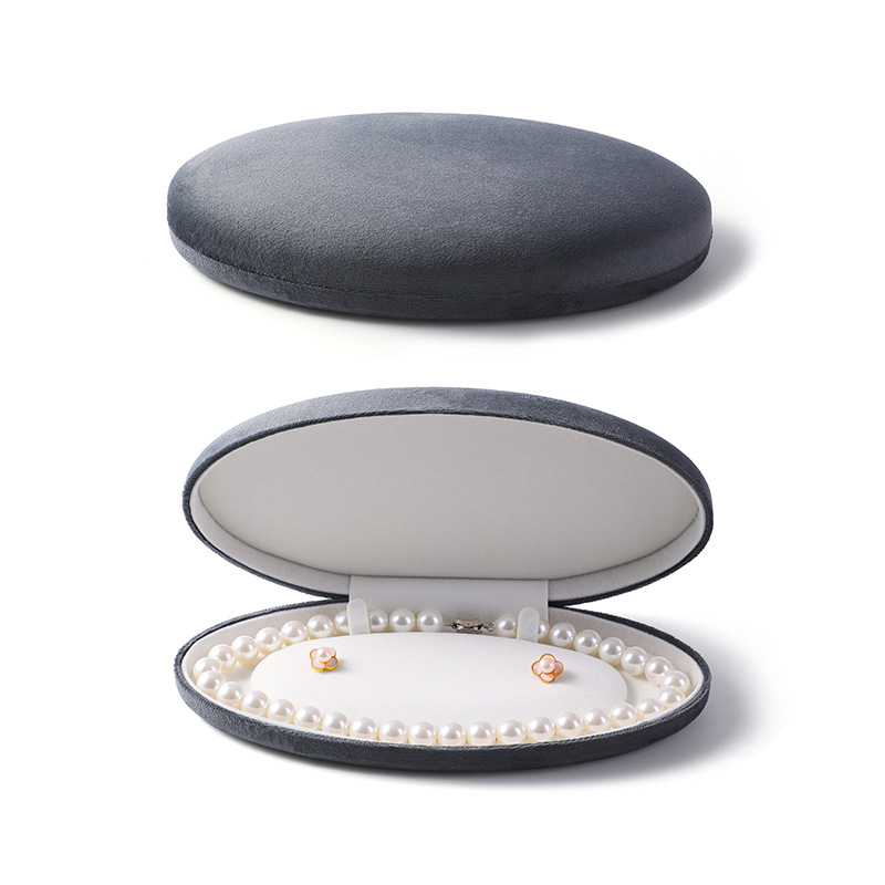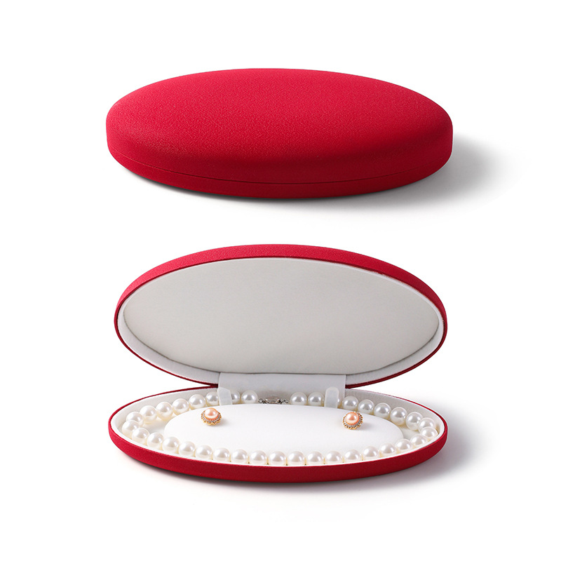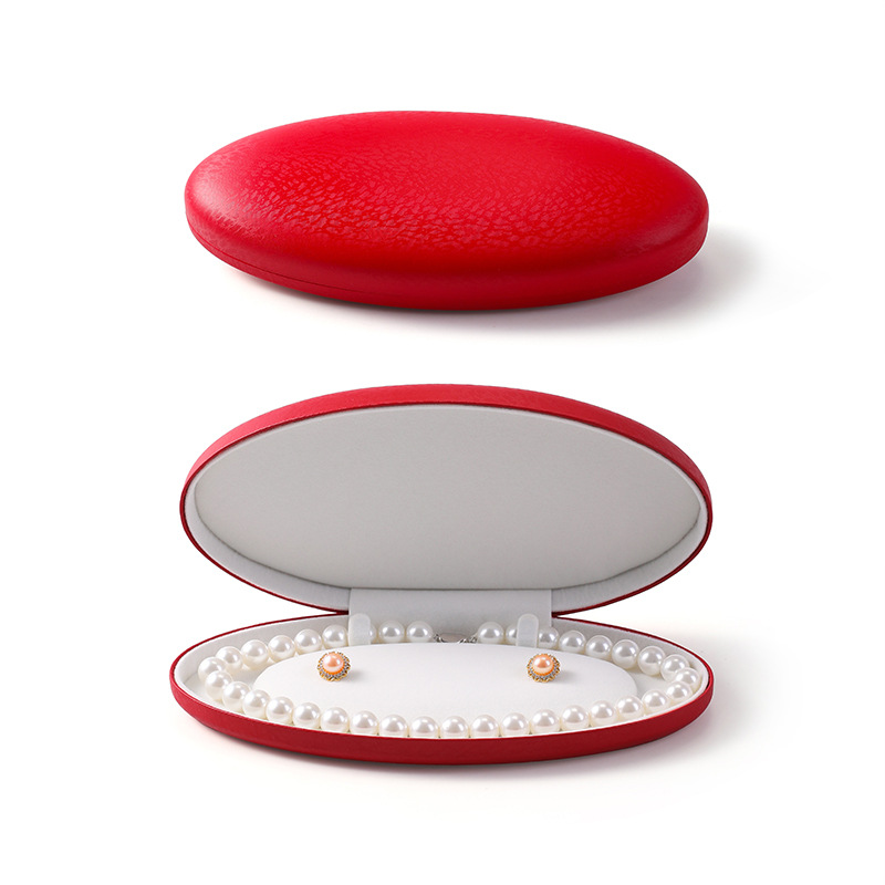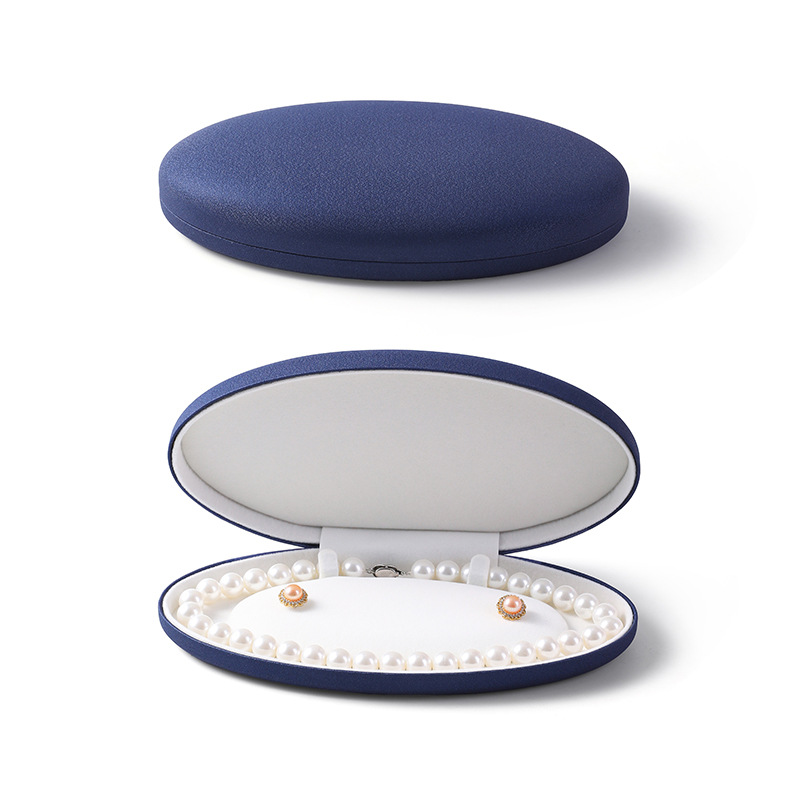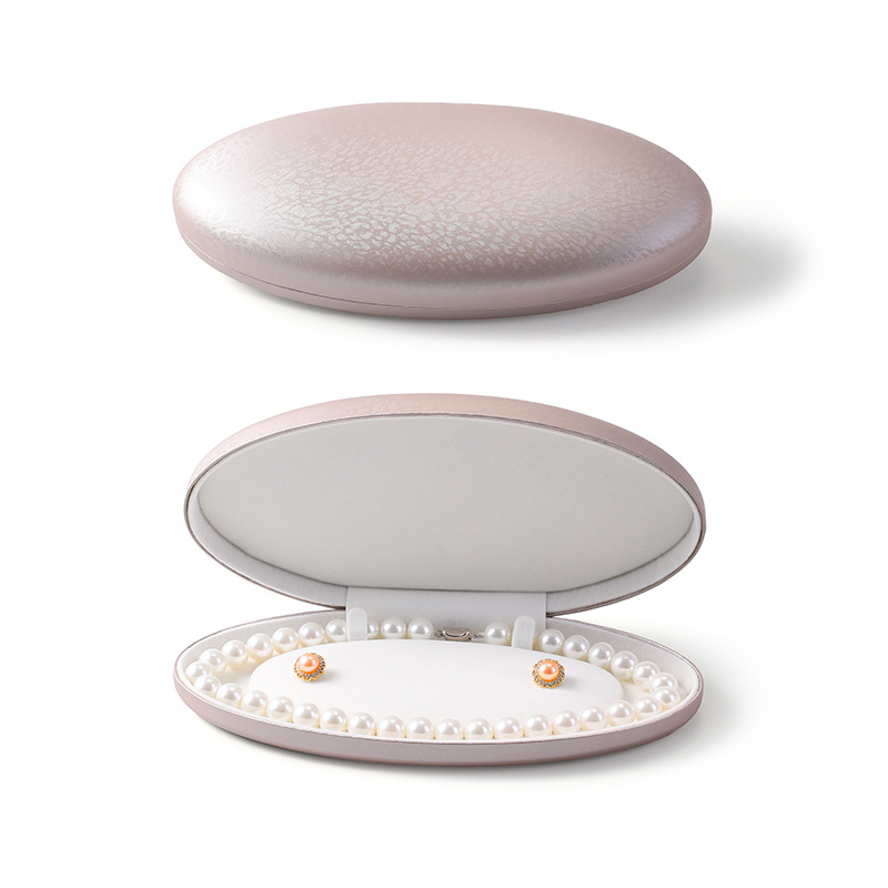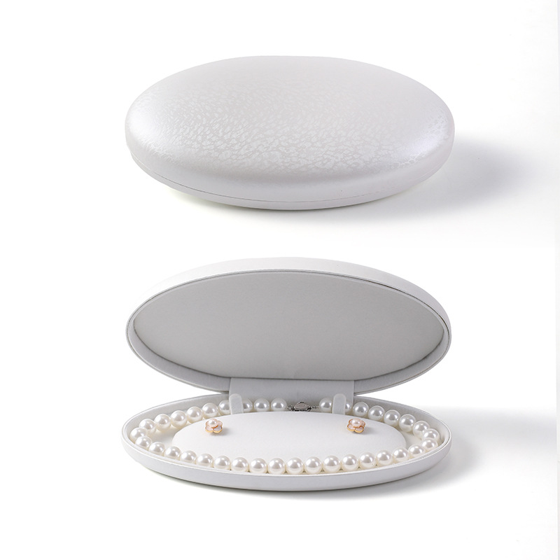 椭圆珍珠项链盒耳钉长链盒PU皮首饰盒绒布超绒翻盖珍珠饰品包装盒