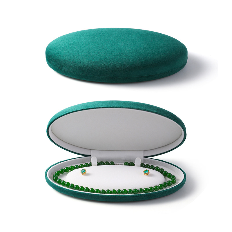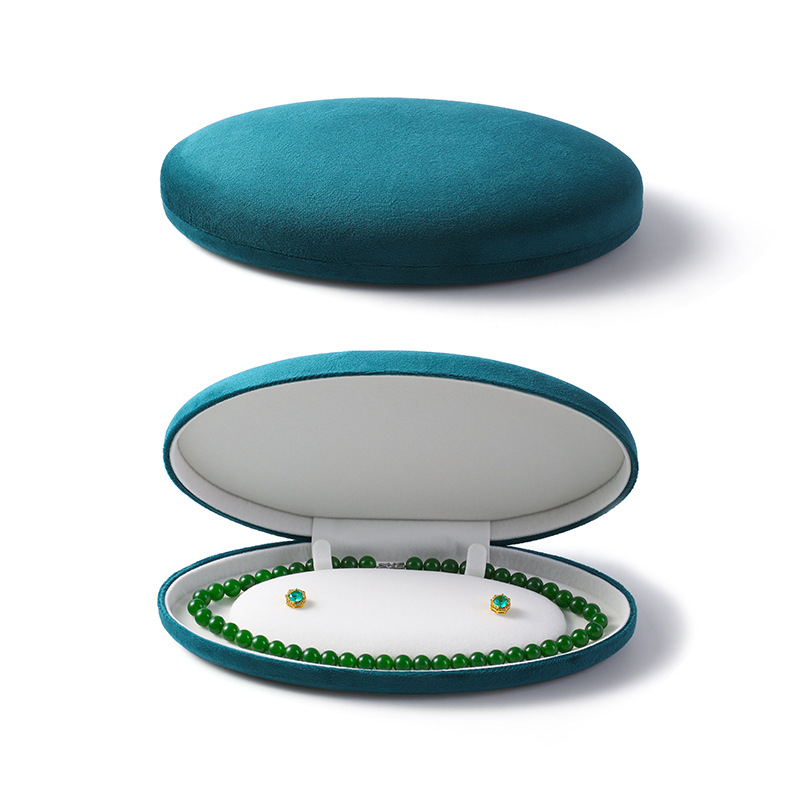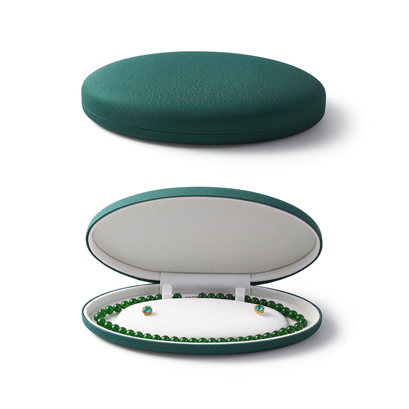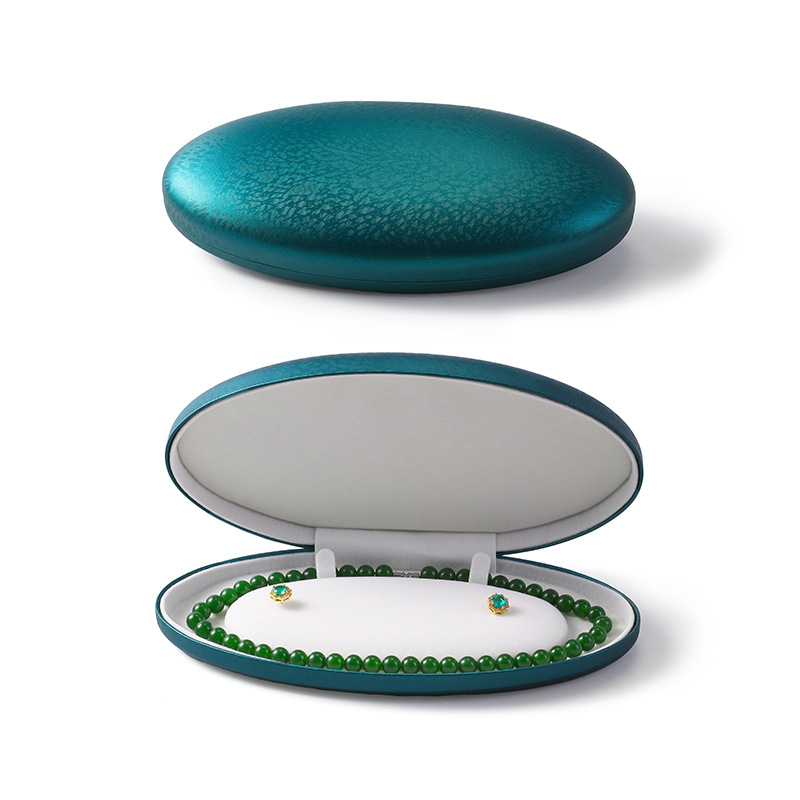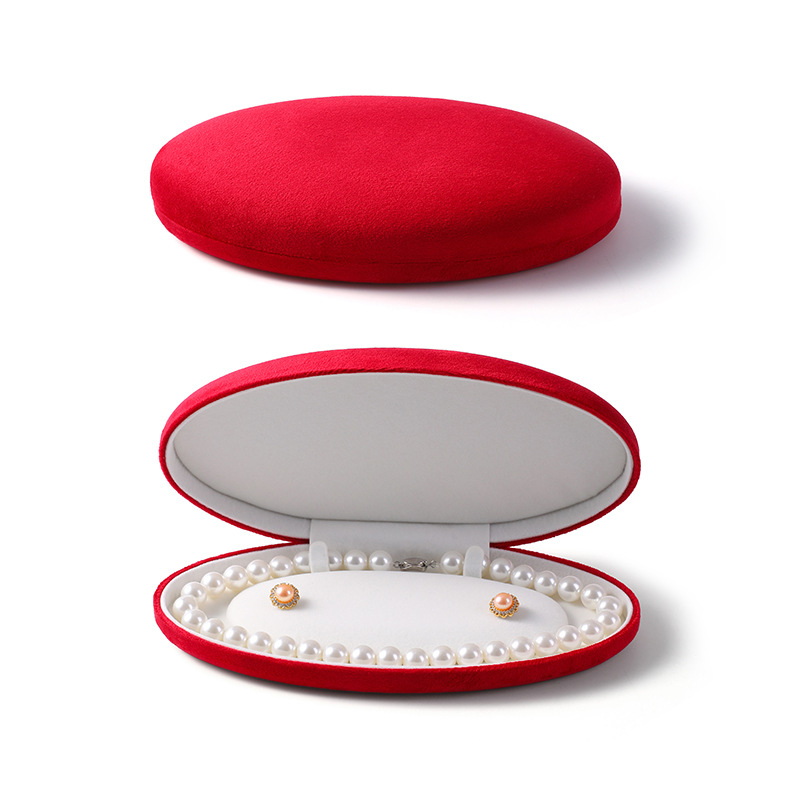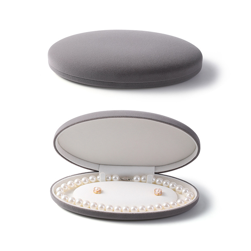 椭圆珍珠项链盒耳钉长链盒PU皮首饰盒绒布超绒翻盖珍珠饰品包装盒