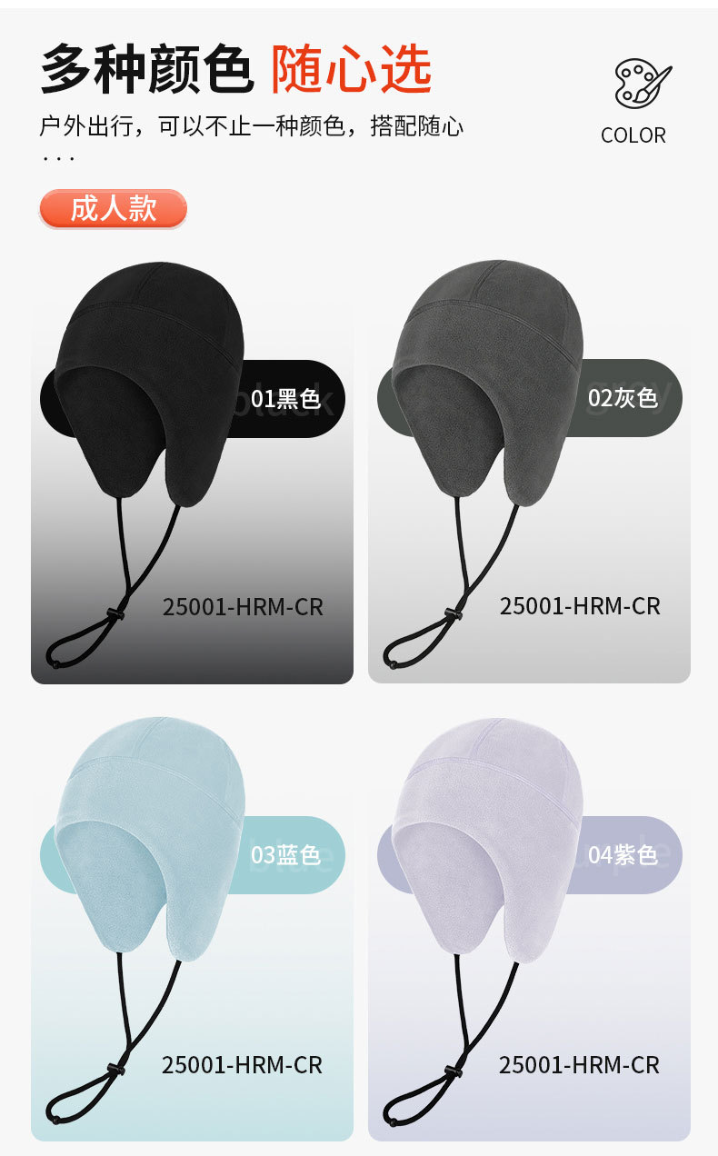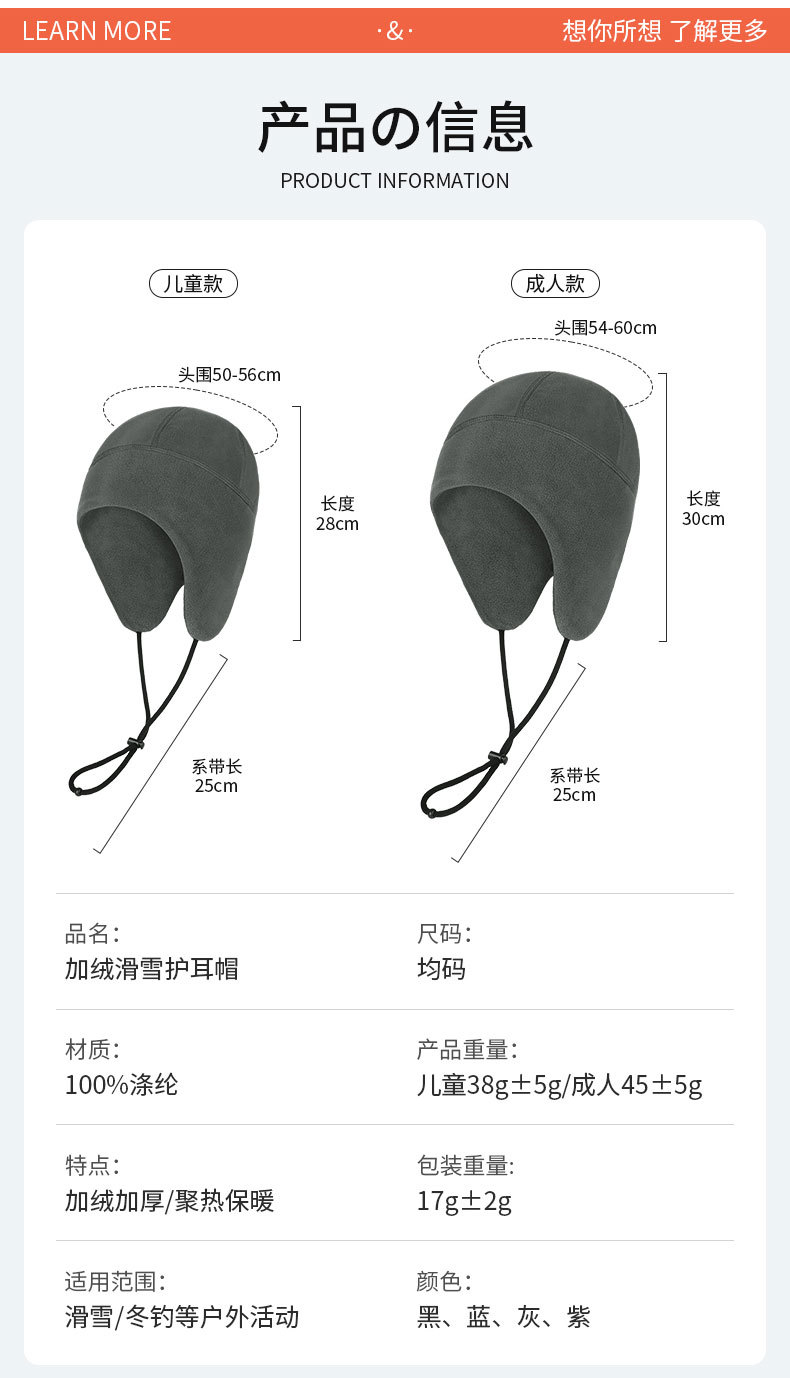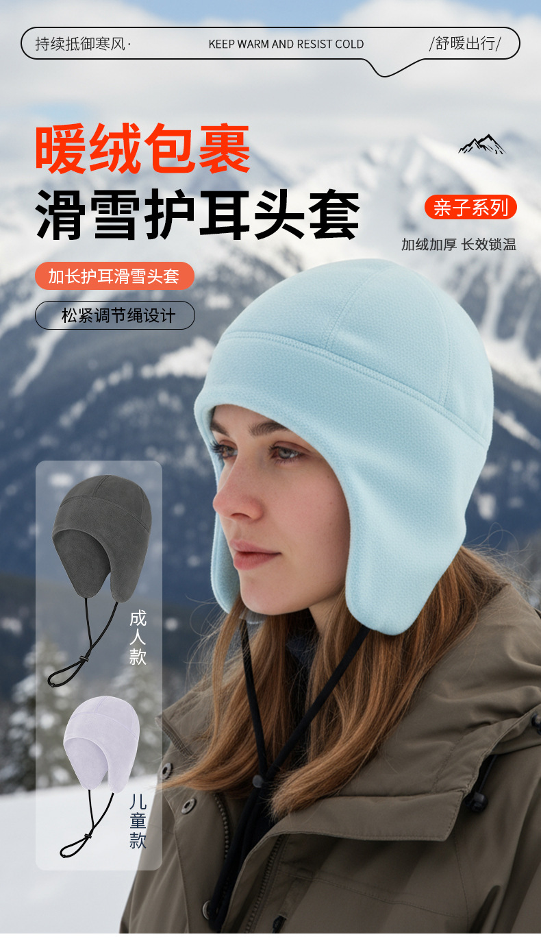 冬季户外抓绒保暖防风成人儿童骑行滑雪小帽纯色可调节加绒护耳帽