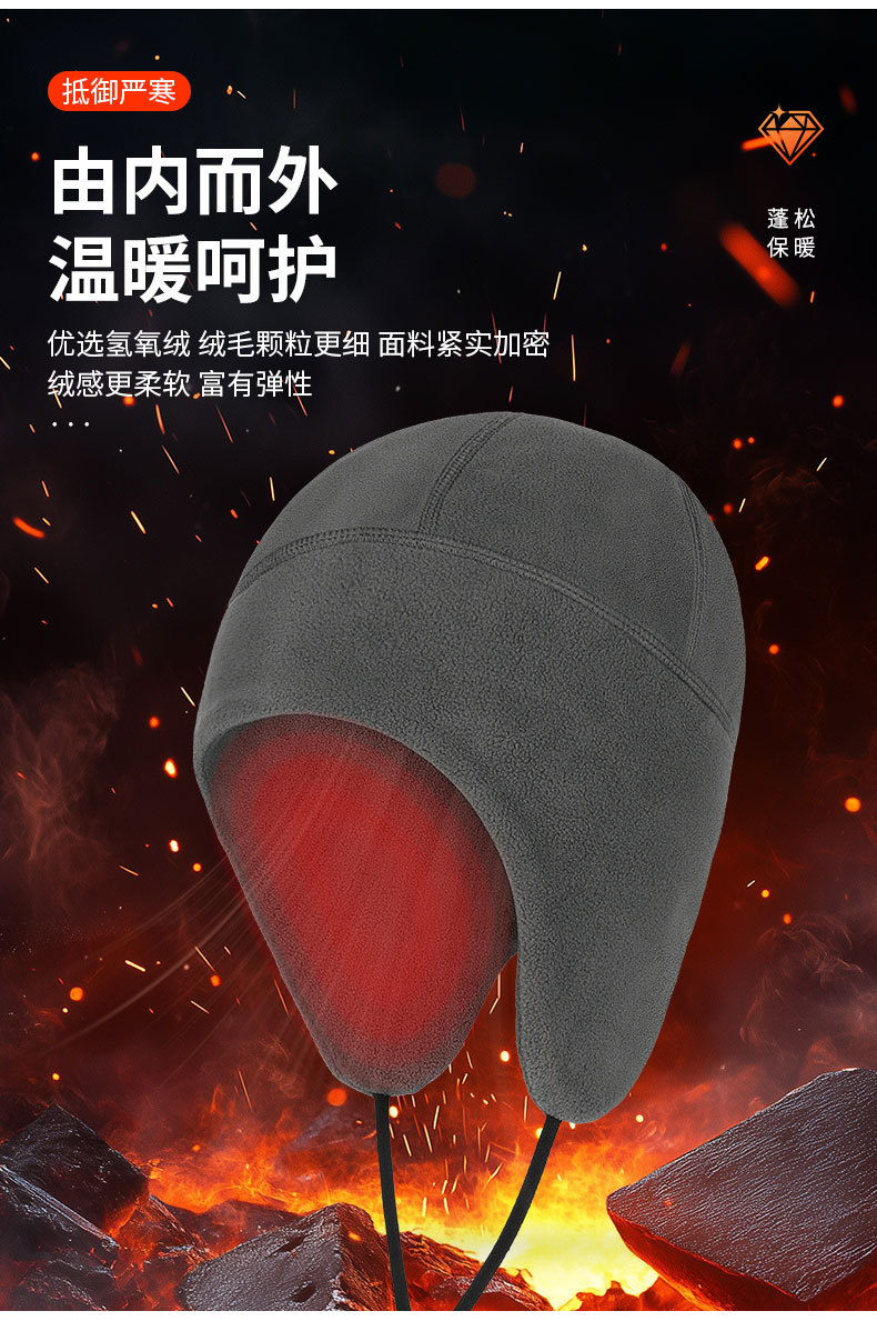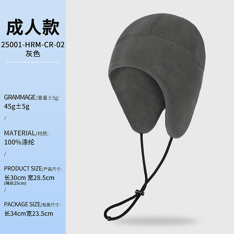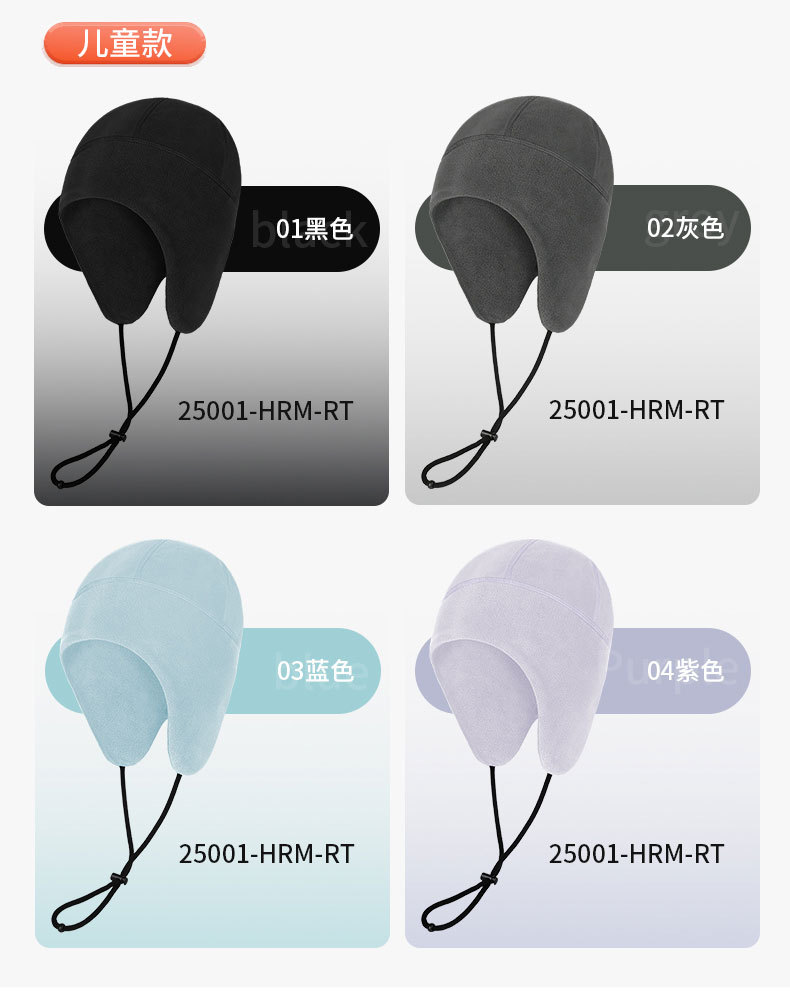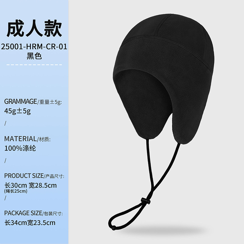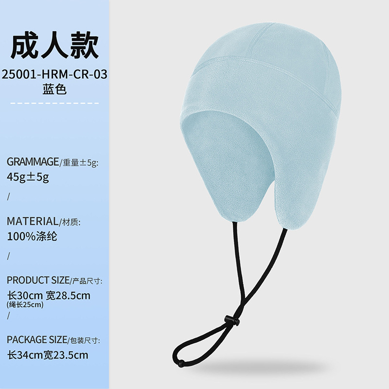 冬季户外抓绒保暖防风成人儿童骑行滑雪小帽纯色可调节加绒护耳帽