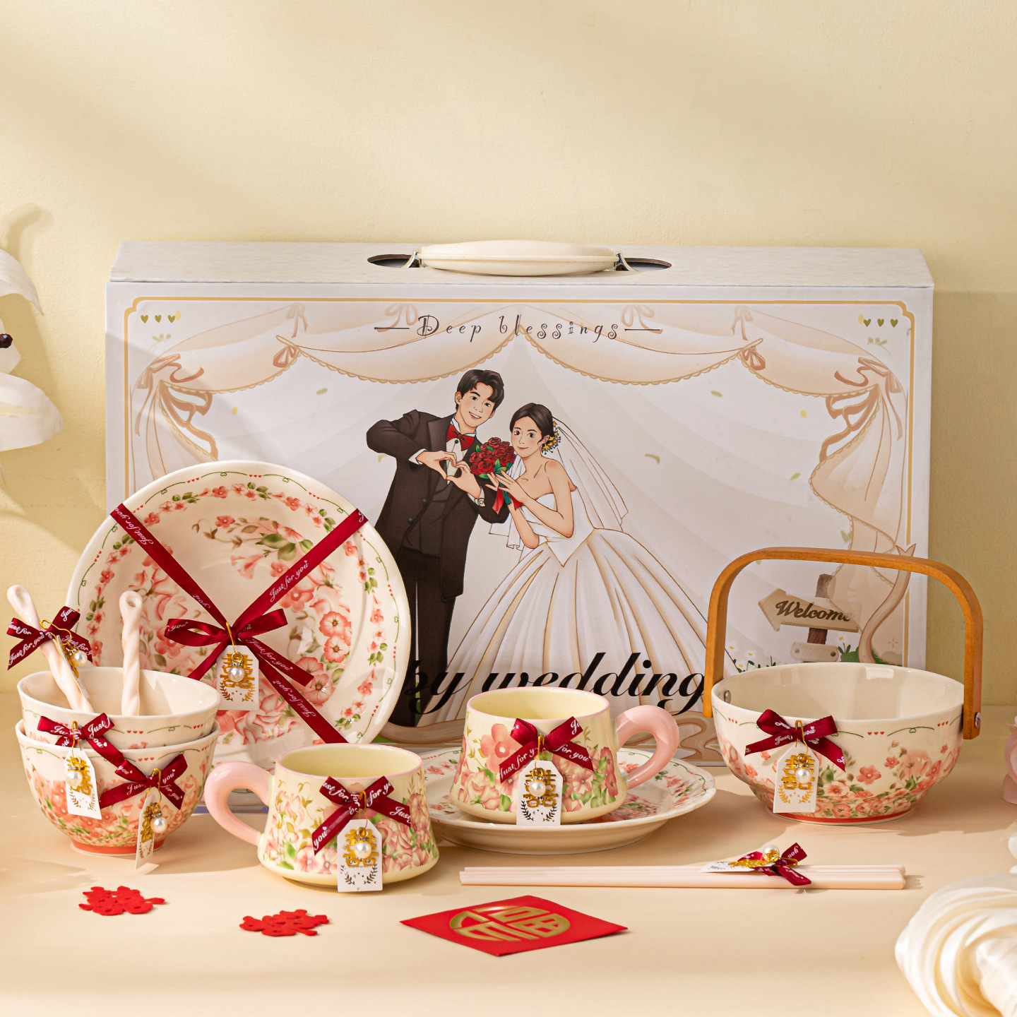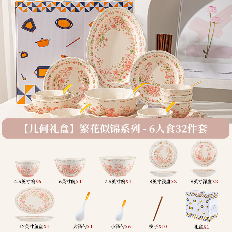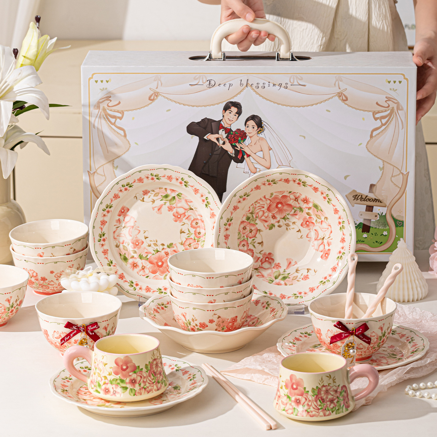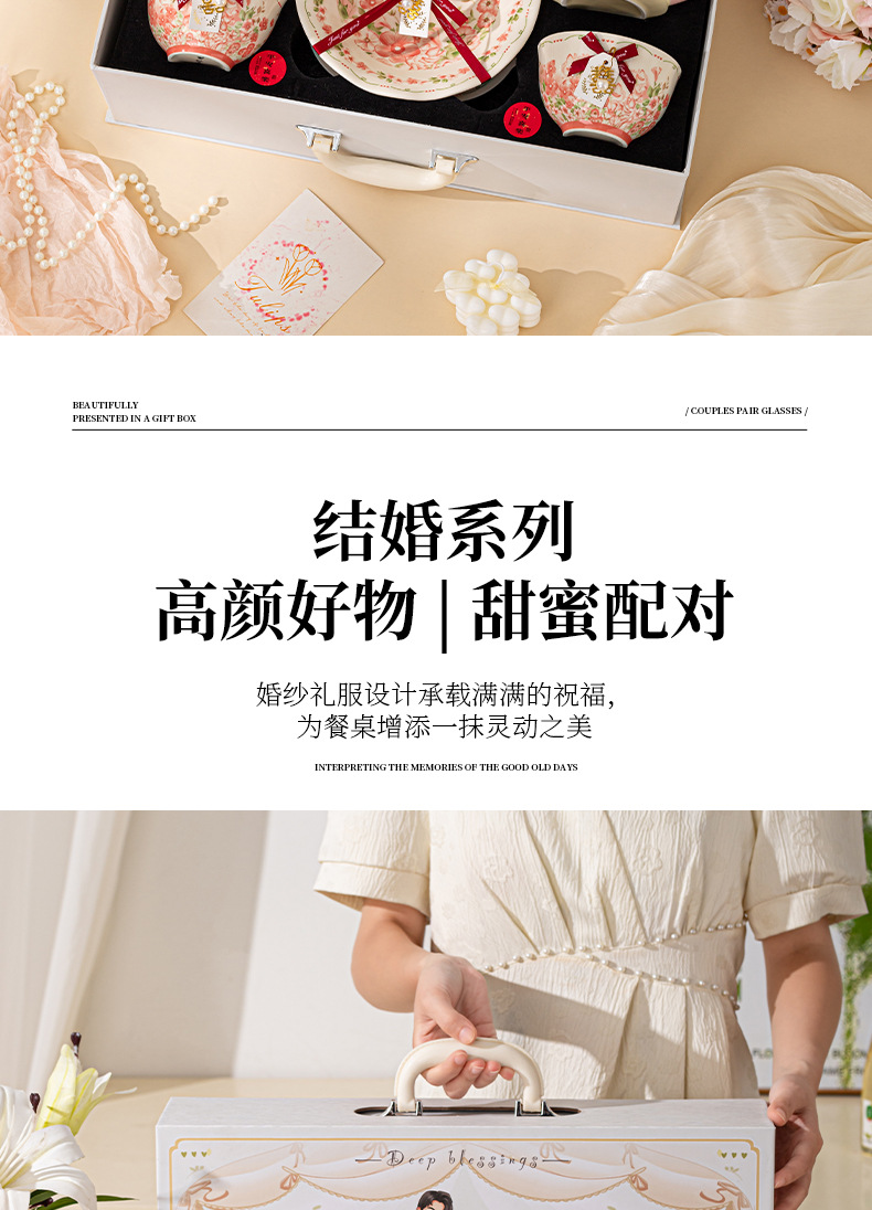 高颜值陶瓷餐具结婚礼物陶瓷碗碟套装餐具礼盒家用米饭碗陶瓷盘子