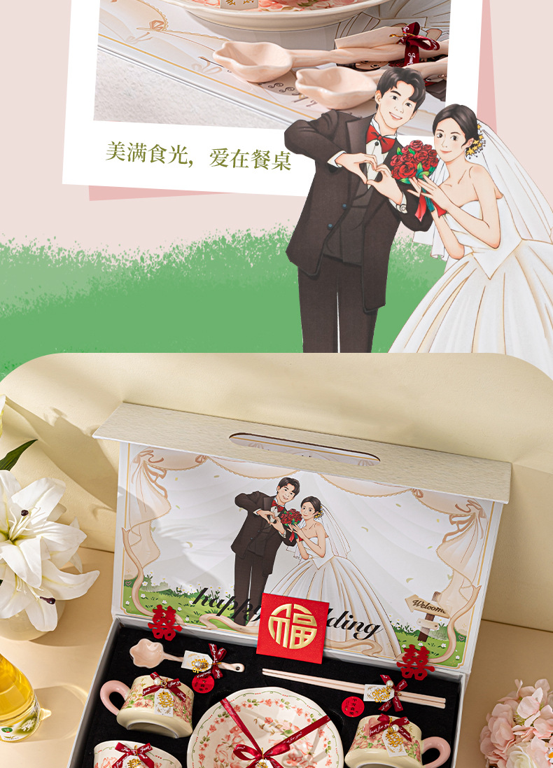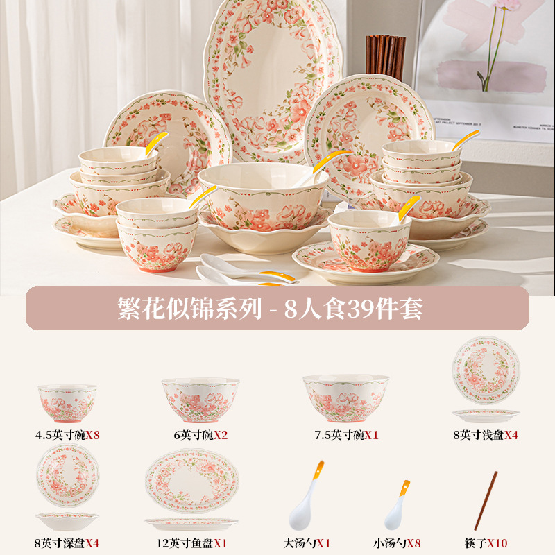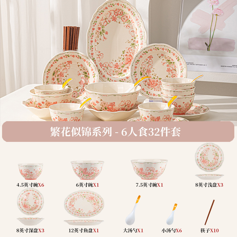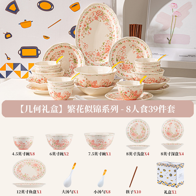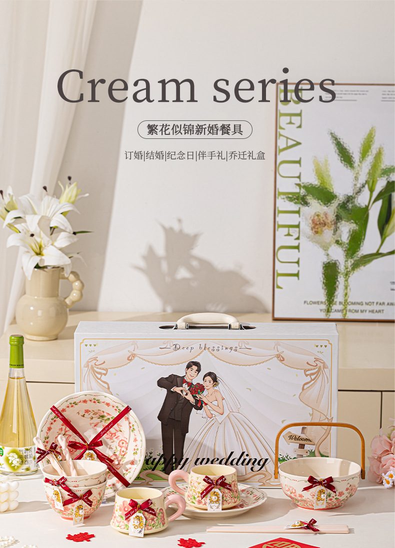 高颜值陶瓷餐具结婚礼物陶瓷碗碟套装餐具礼盒家用米饭碗陶瓷盘子