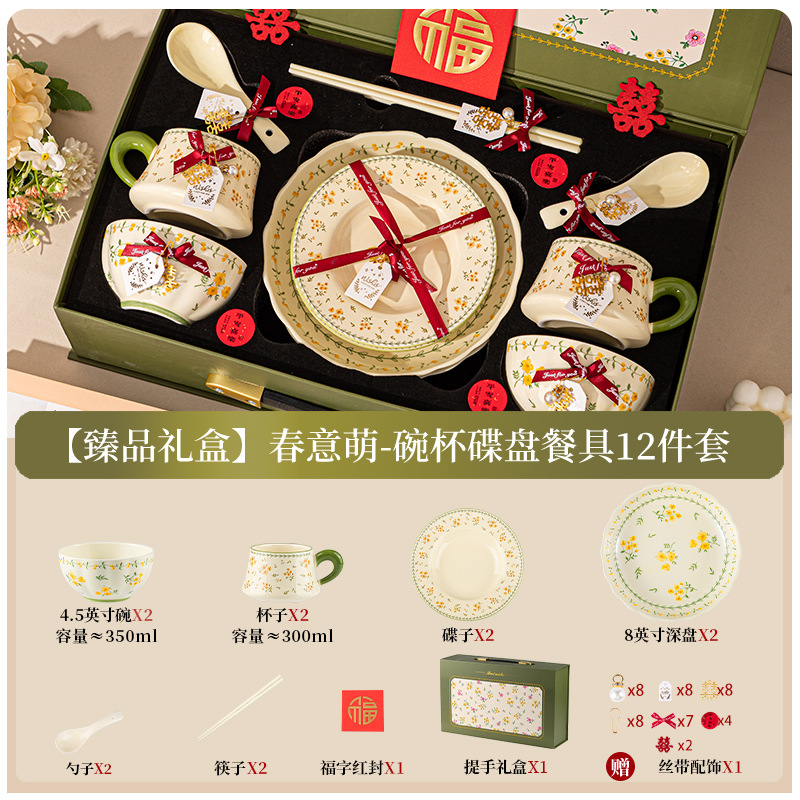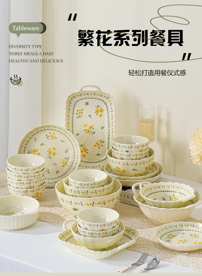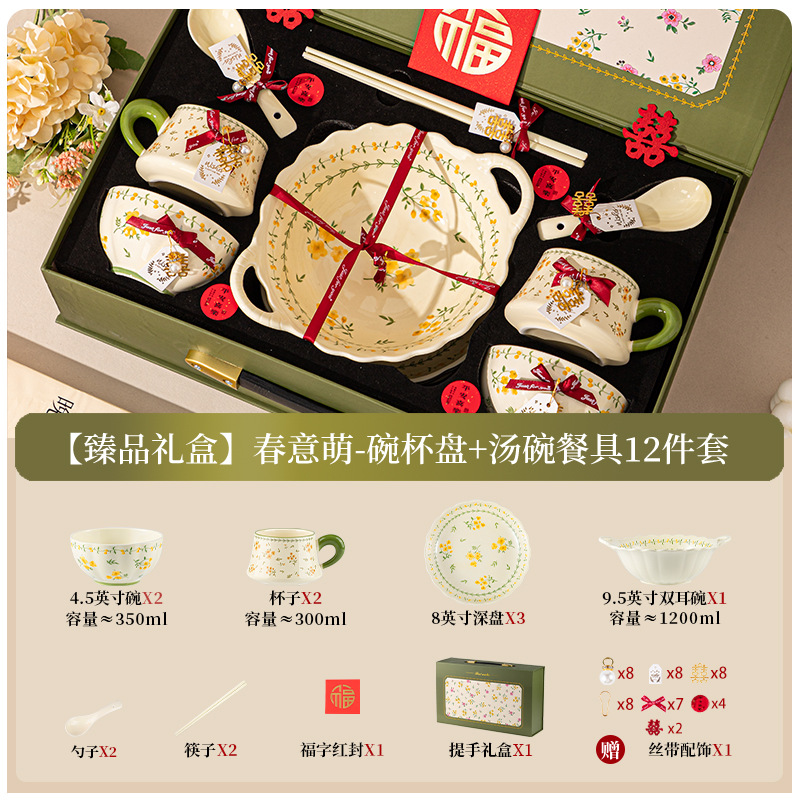 餐具日式碗碟套装高颜值家用新款釉下彩餐具套装陶瓷碗盘新居礼盒