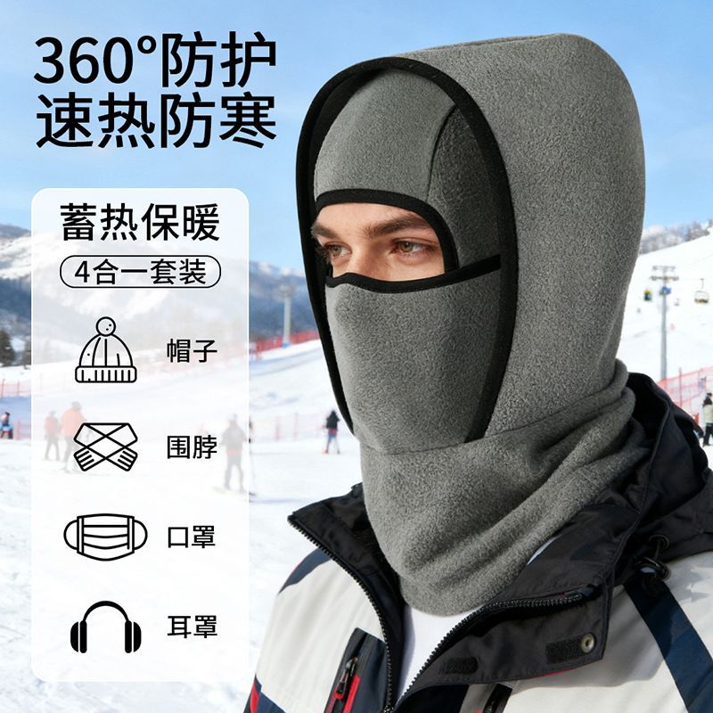 跨境冬季多功能保暖头套围脖一体套头帽护颈双层加厚保暖滑雪面罩
