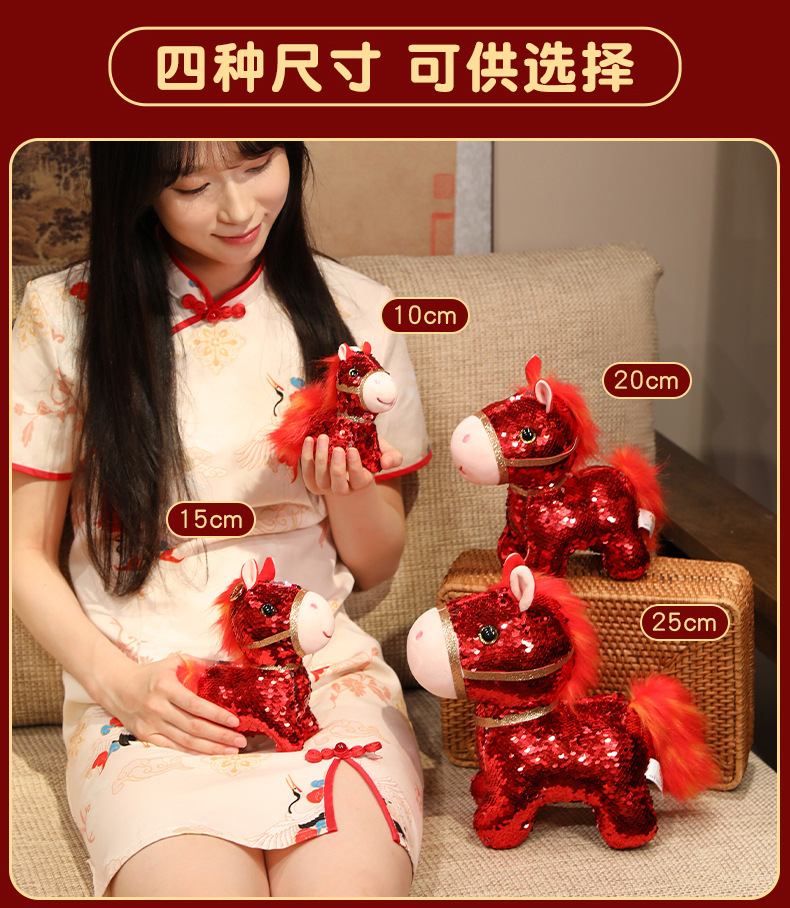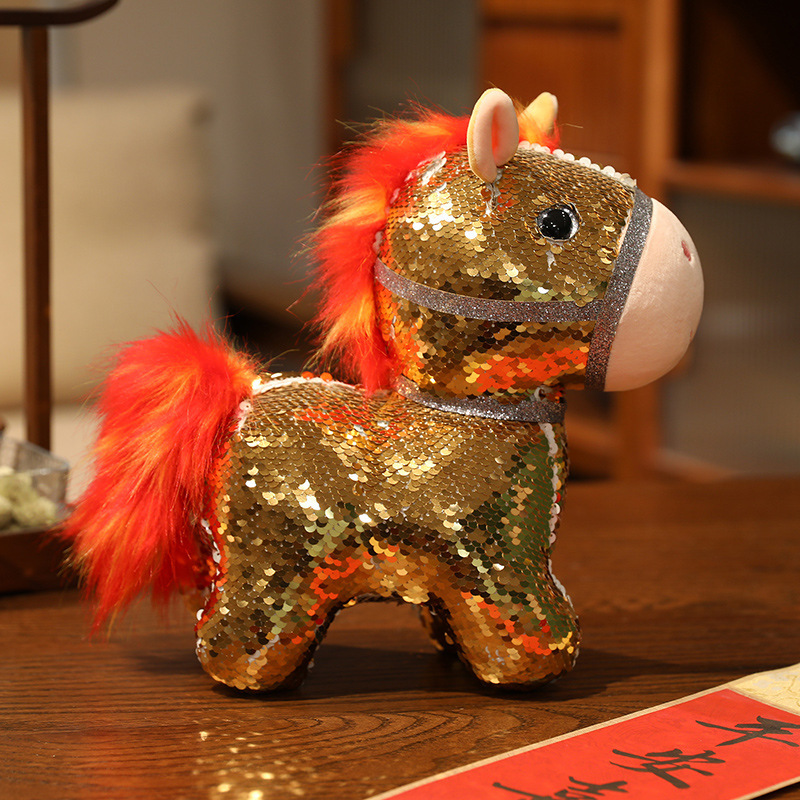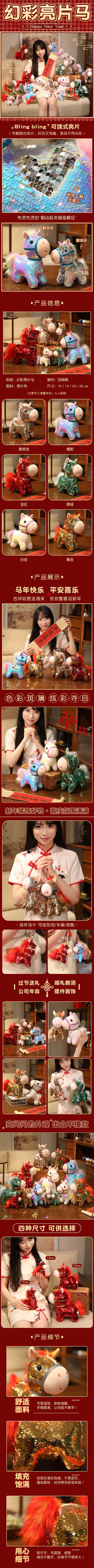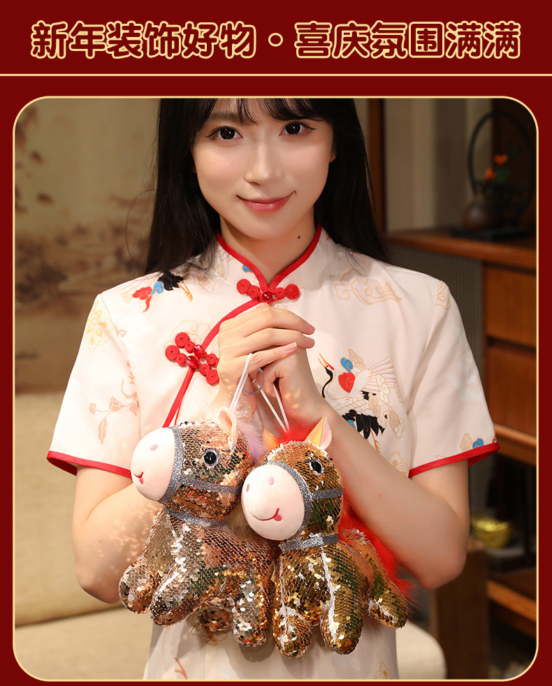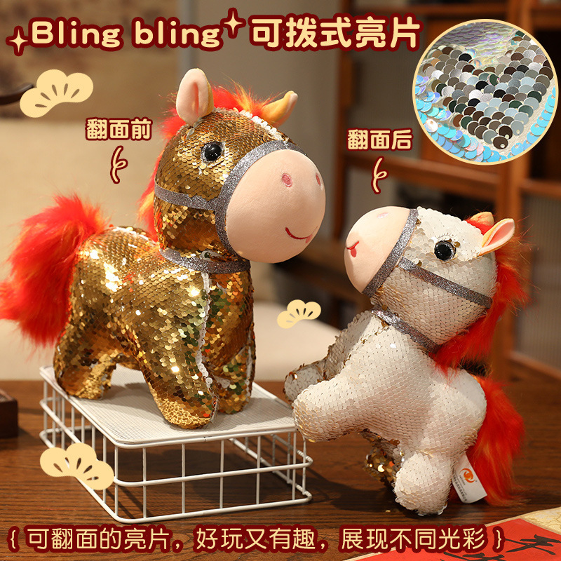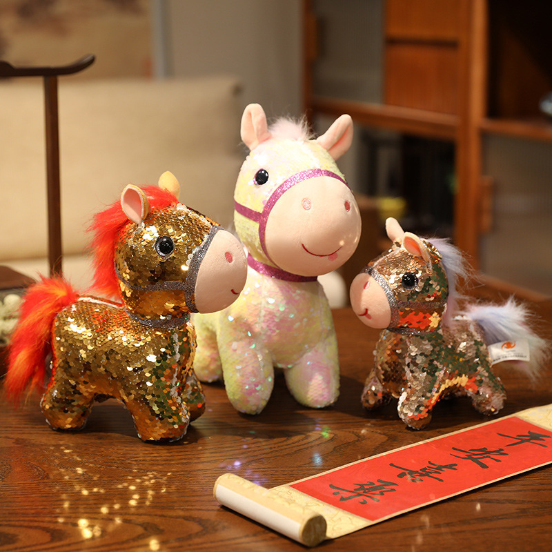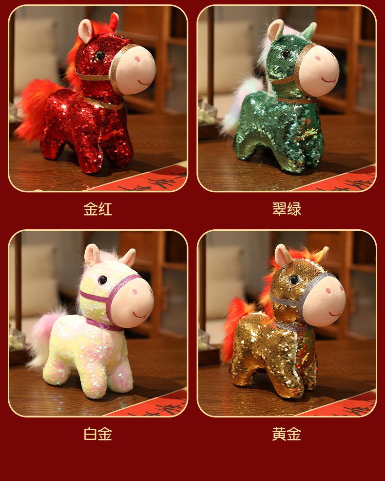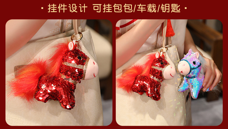 小马玩偶毛绒玩具公仔幻彩亮片马挂件马年吉祥物客厅摆件新年礼物