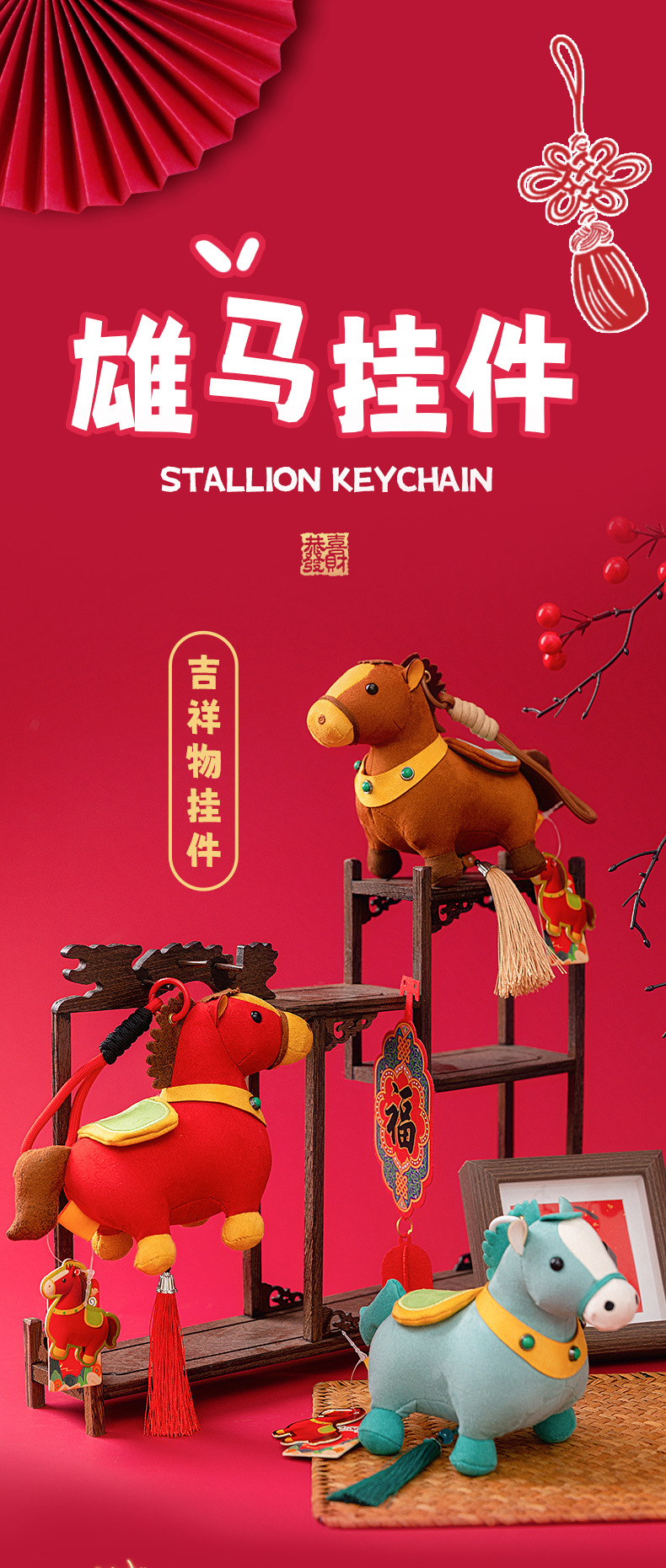 2026马年吉祥物毛绒玩偶公仔背包钥匙扣挂饰生肖马娃娃新年礼物