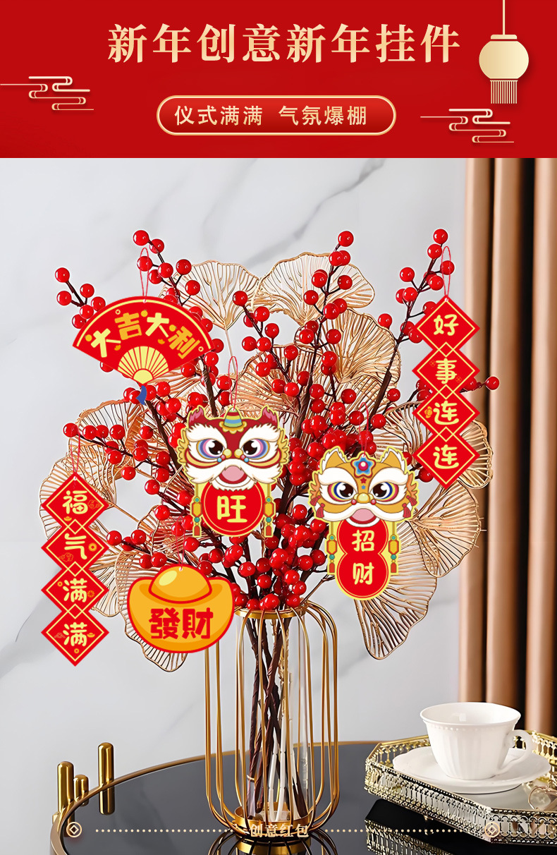 2026新年过年小挂饰乔迁室内盆景马年挂件春节布置品绿植挂件卡片