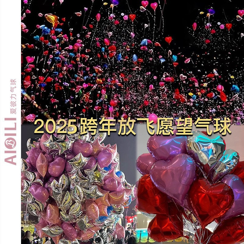 跨年气球元旦充氦气飘空气球仪式感心形放飞气球心愿爱心气球