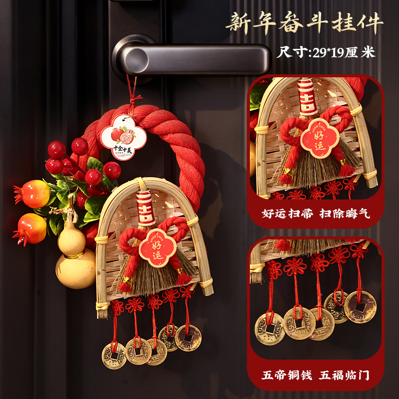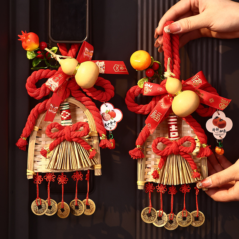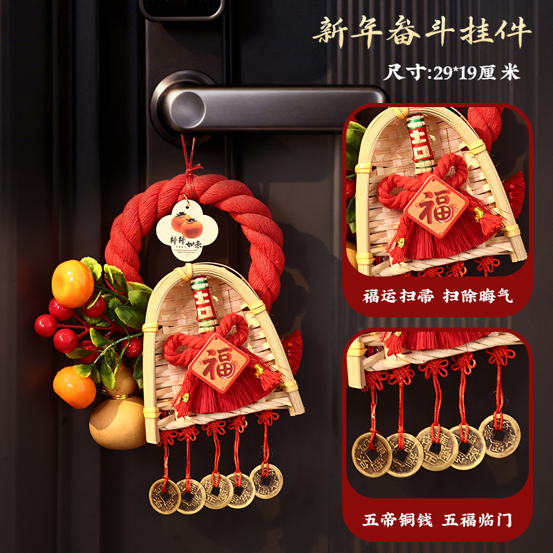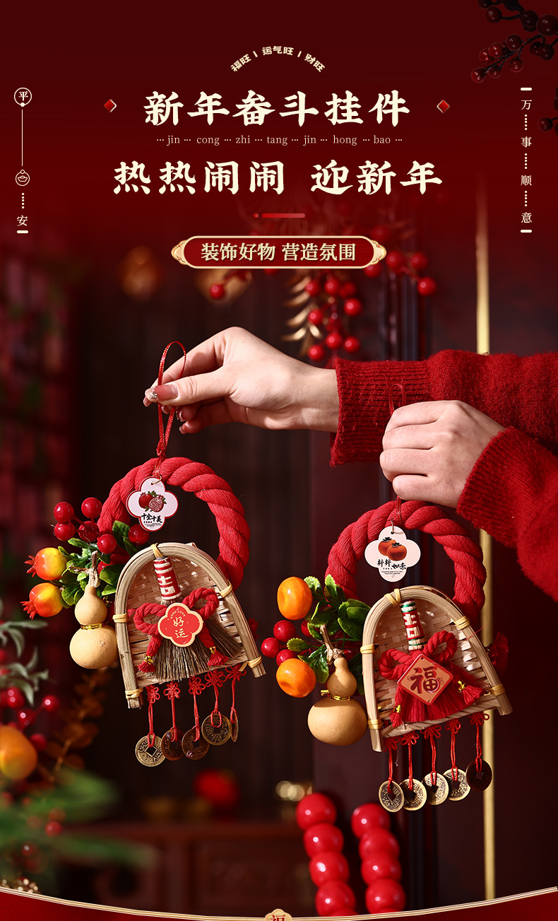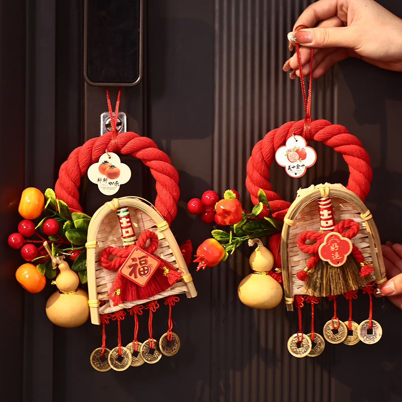 新年氛围装饰挂件春节发财红果花环挂饰2026马年过节室内门挂布置