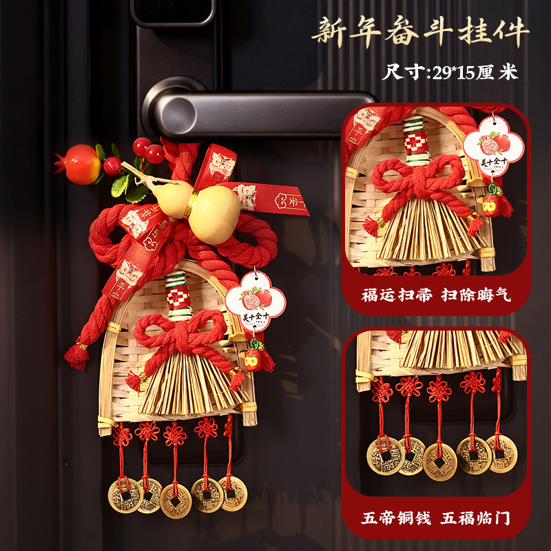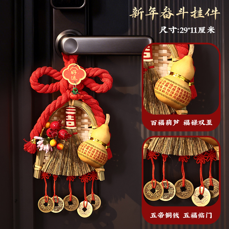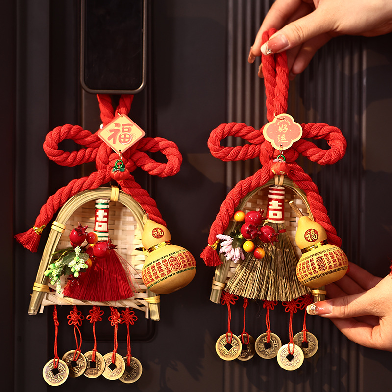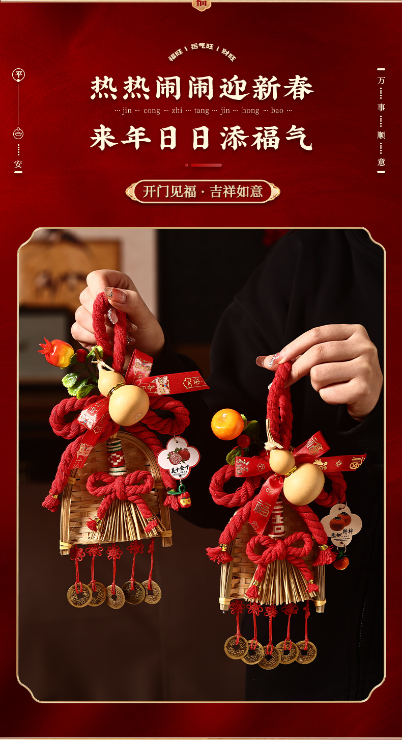 新年氛围装饰挂件春节发财红果花环挂饰2026马年过节室内门挂布置