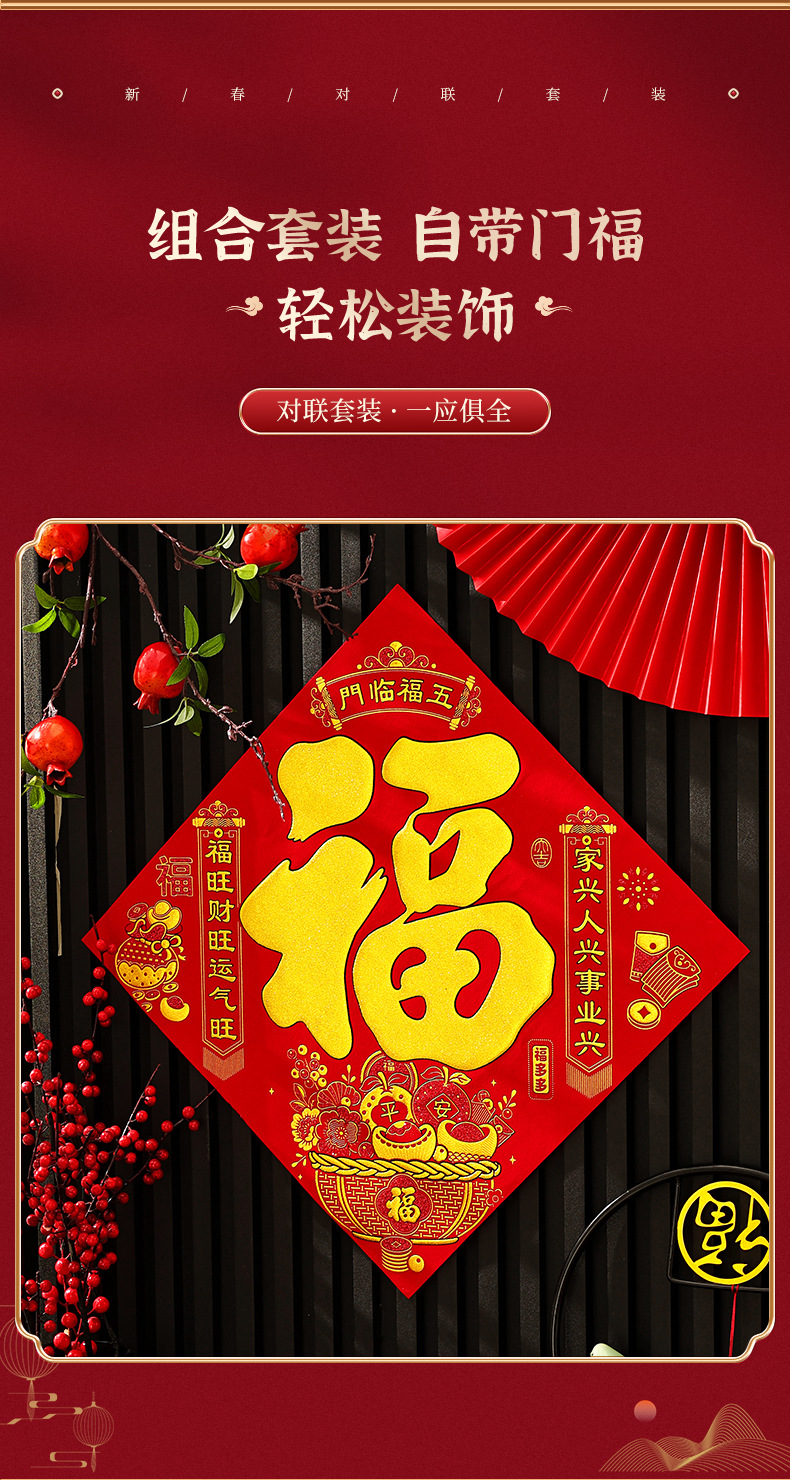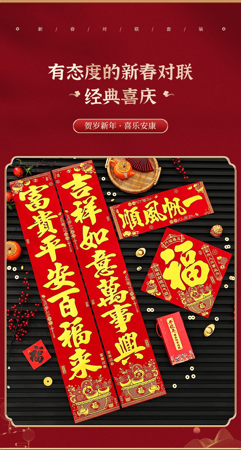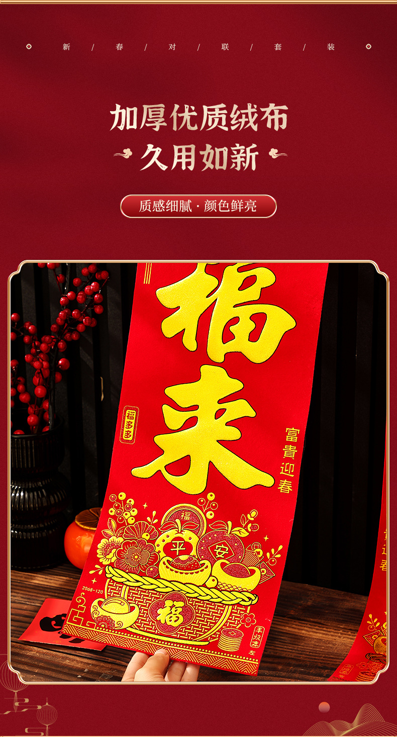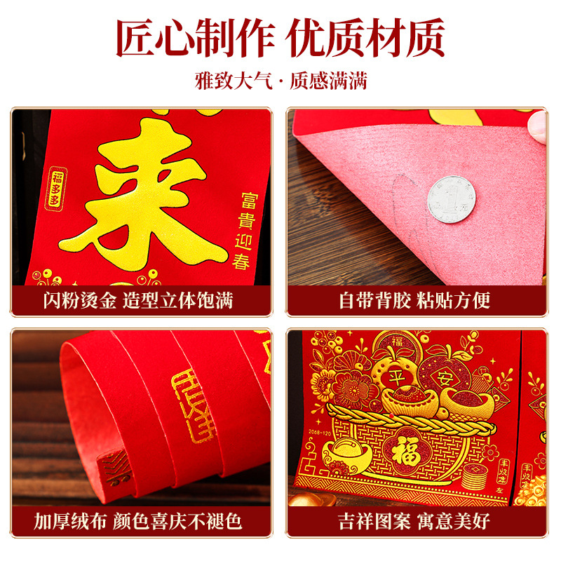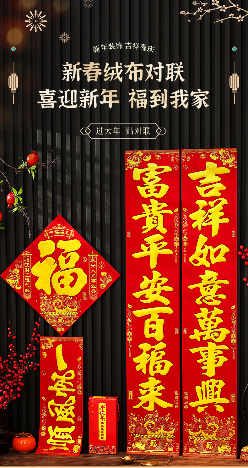 2026马年新款绒布对联过年春节高档烫金门联批发花篮春联新年装饰