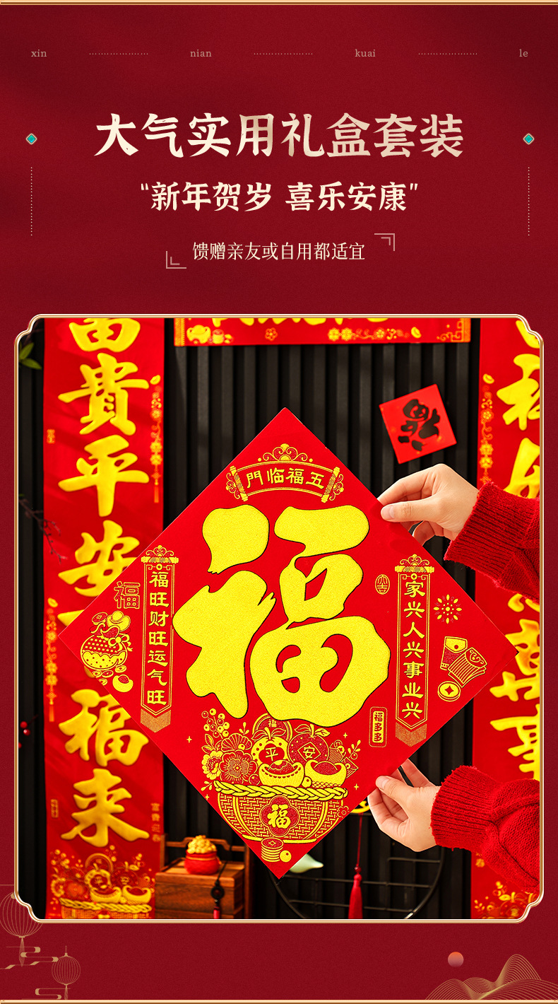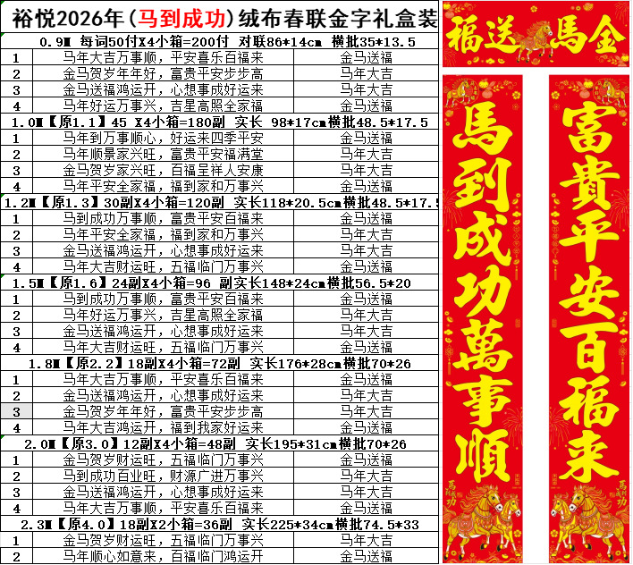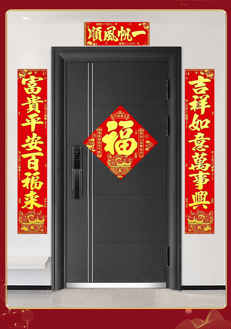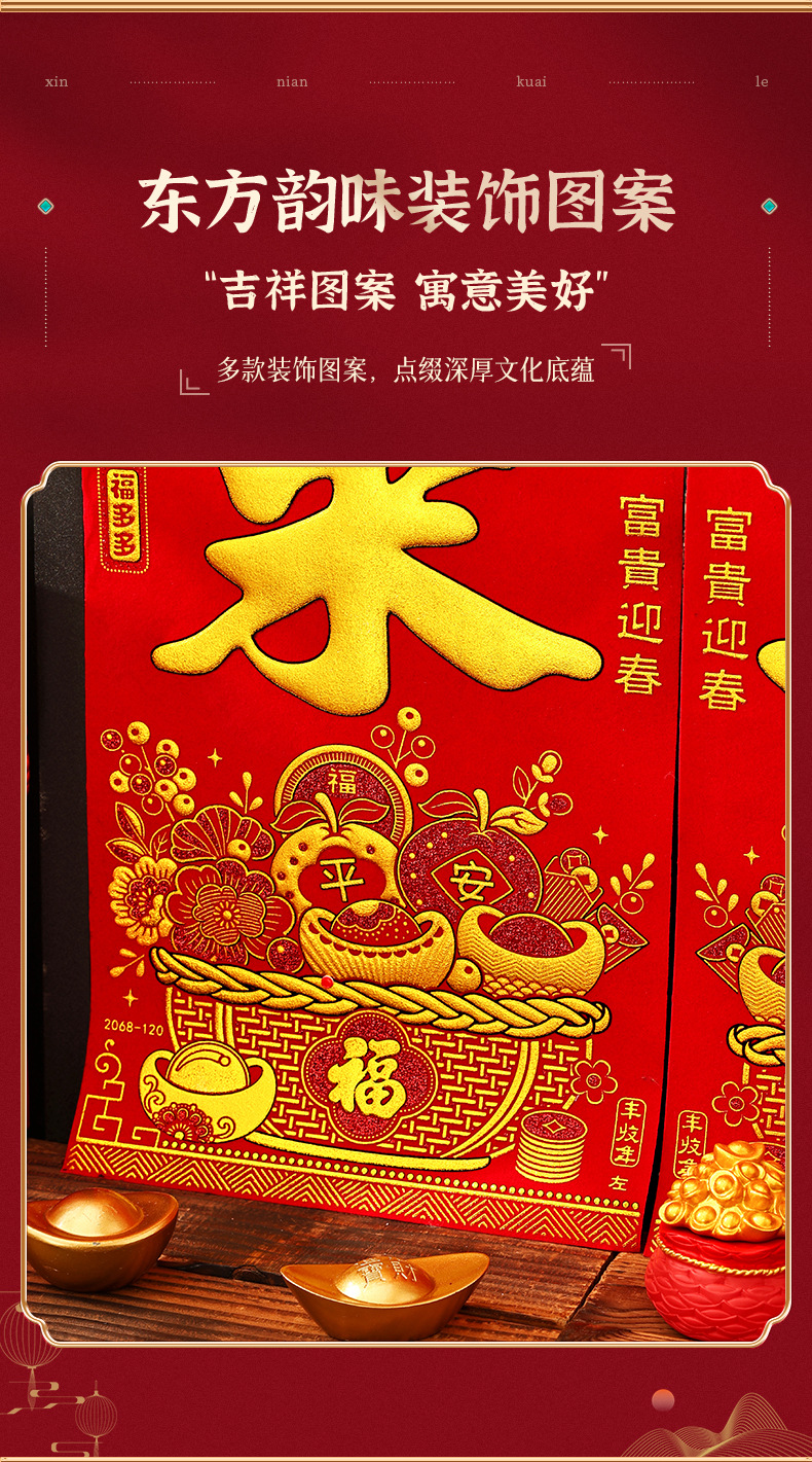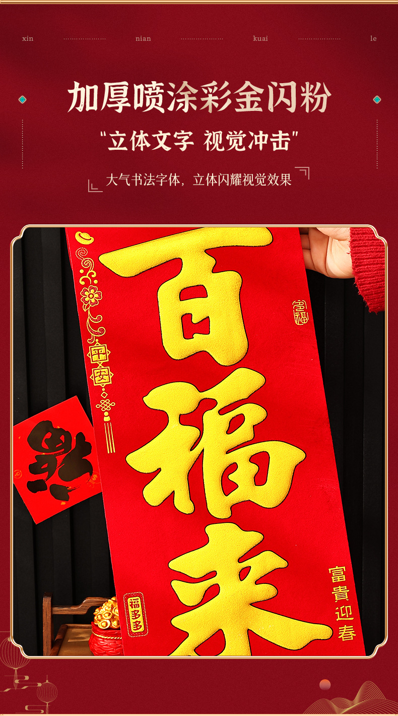 2026马年新款绒布对联过年春节高档烫金门联批发花篮春联新年装饰