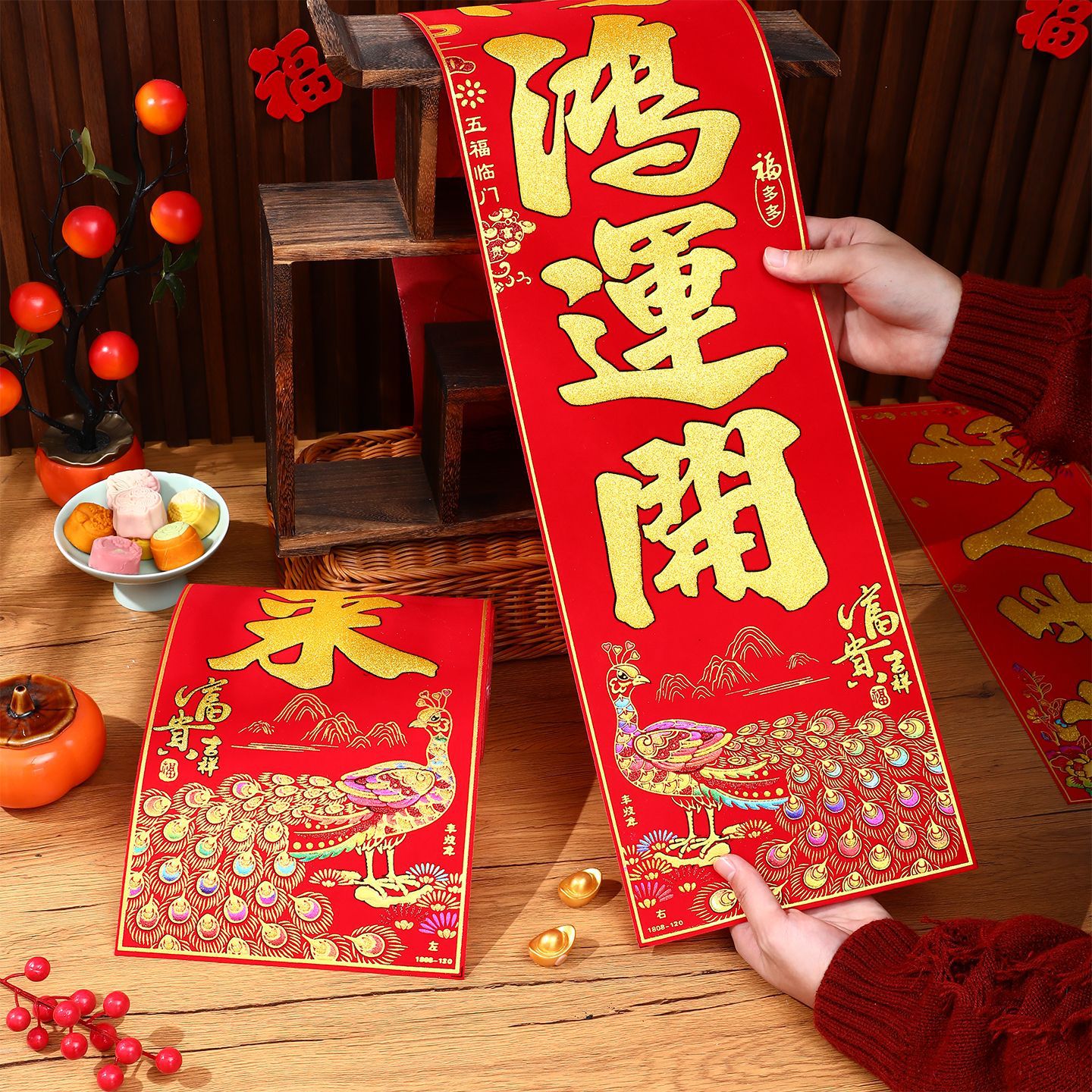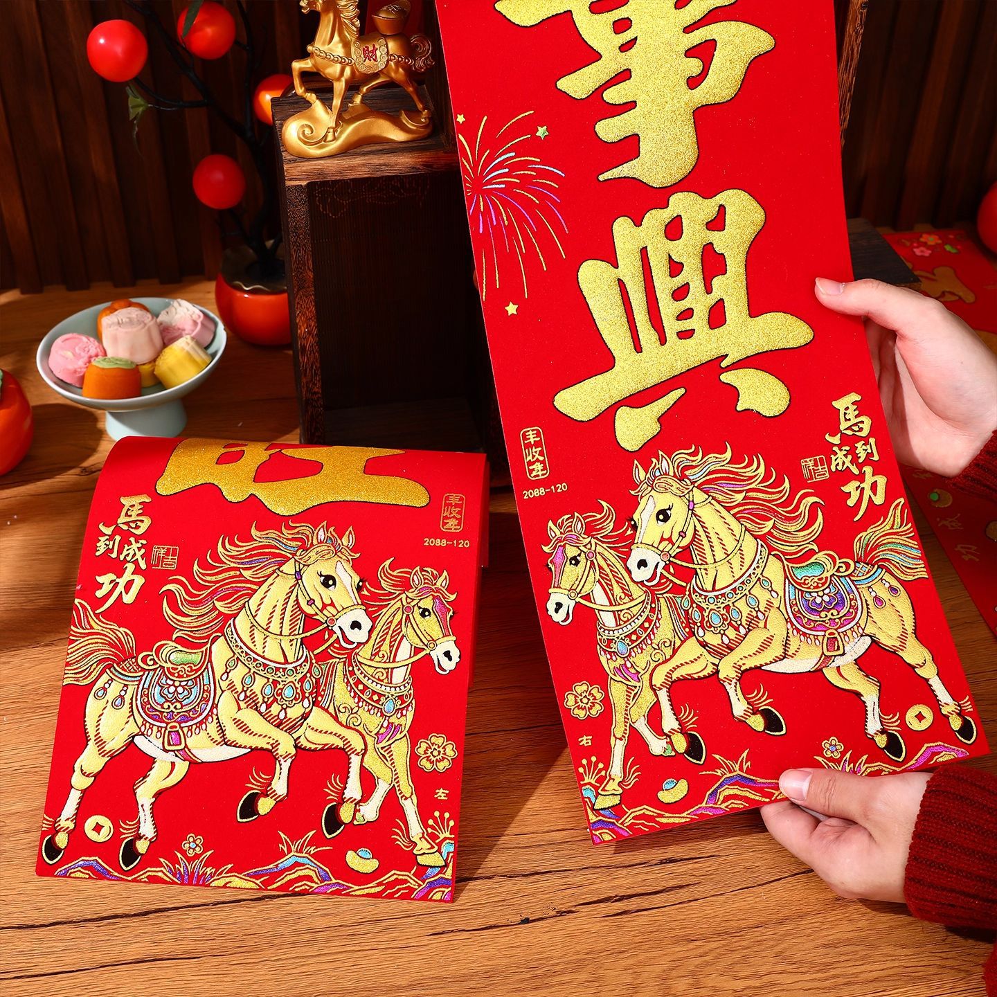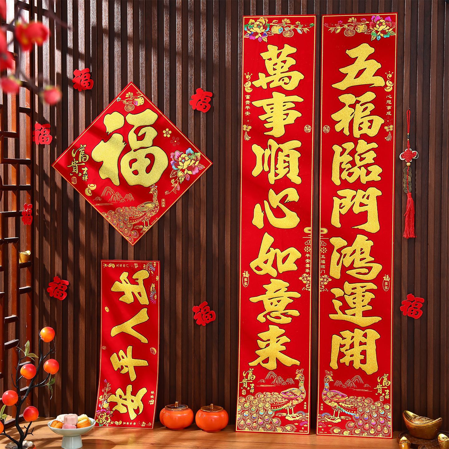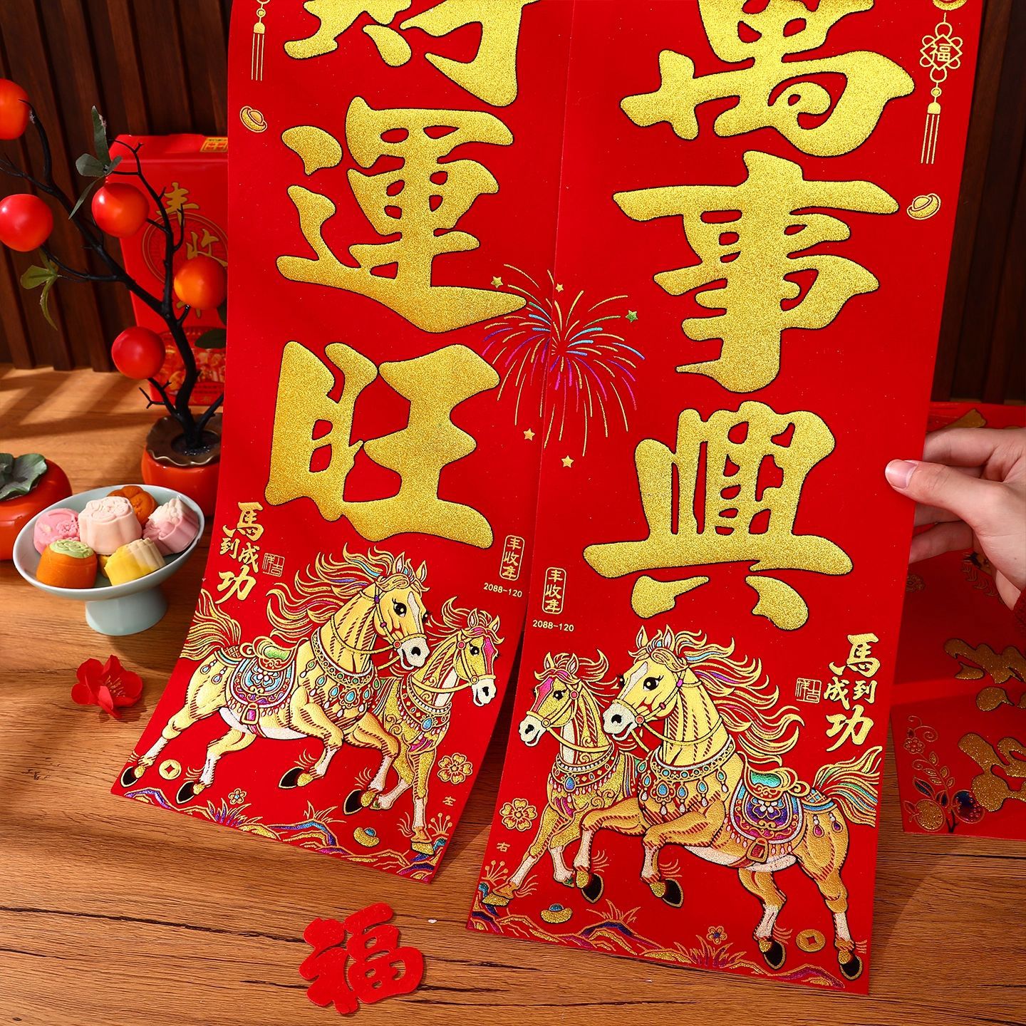 2026马年新款绒布对联过年春节高档烫金门联批发花篮春联新年装饰
