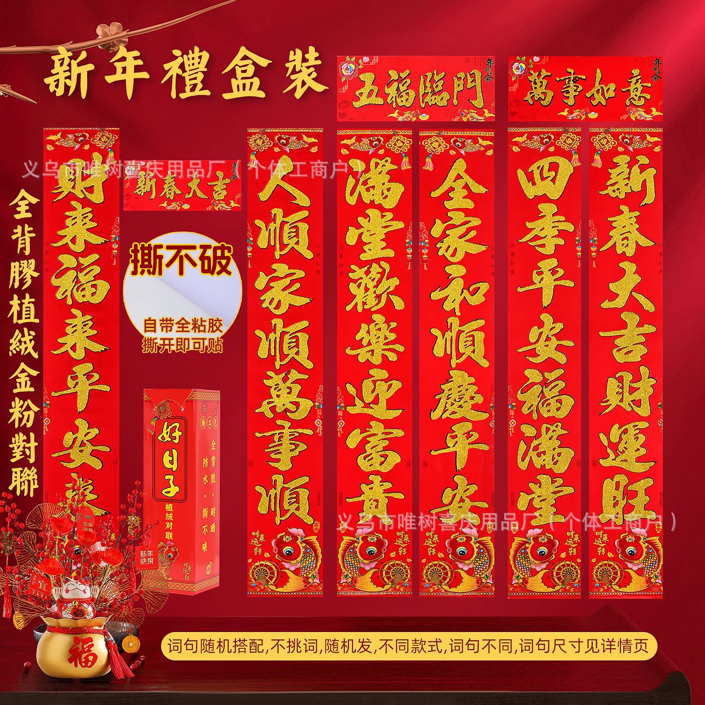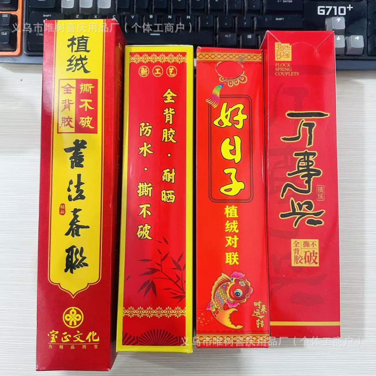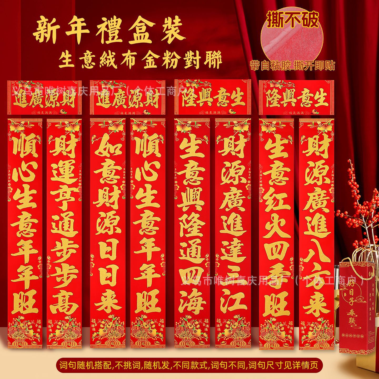 对联批发 2026铜版纸植绒布全背胶盒装春联 春节摆摊爆款批货厂家