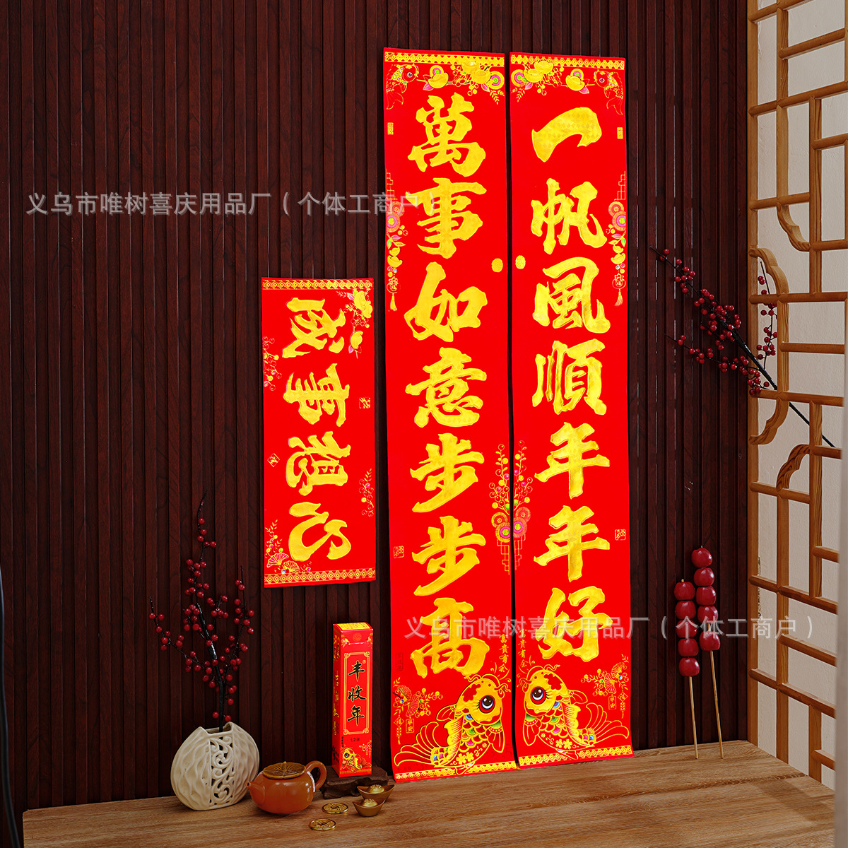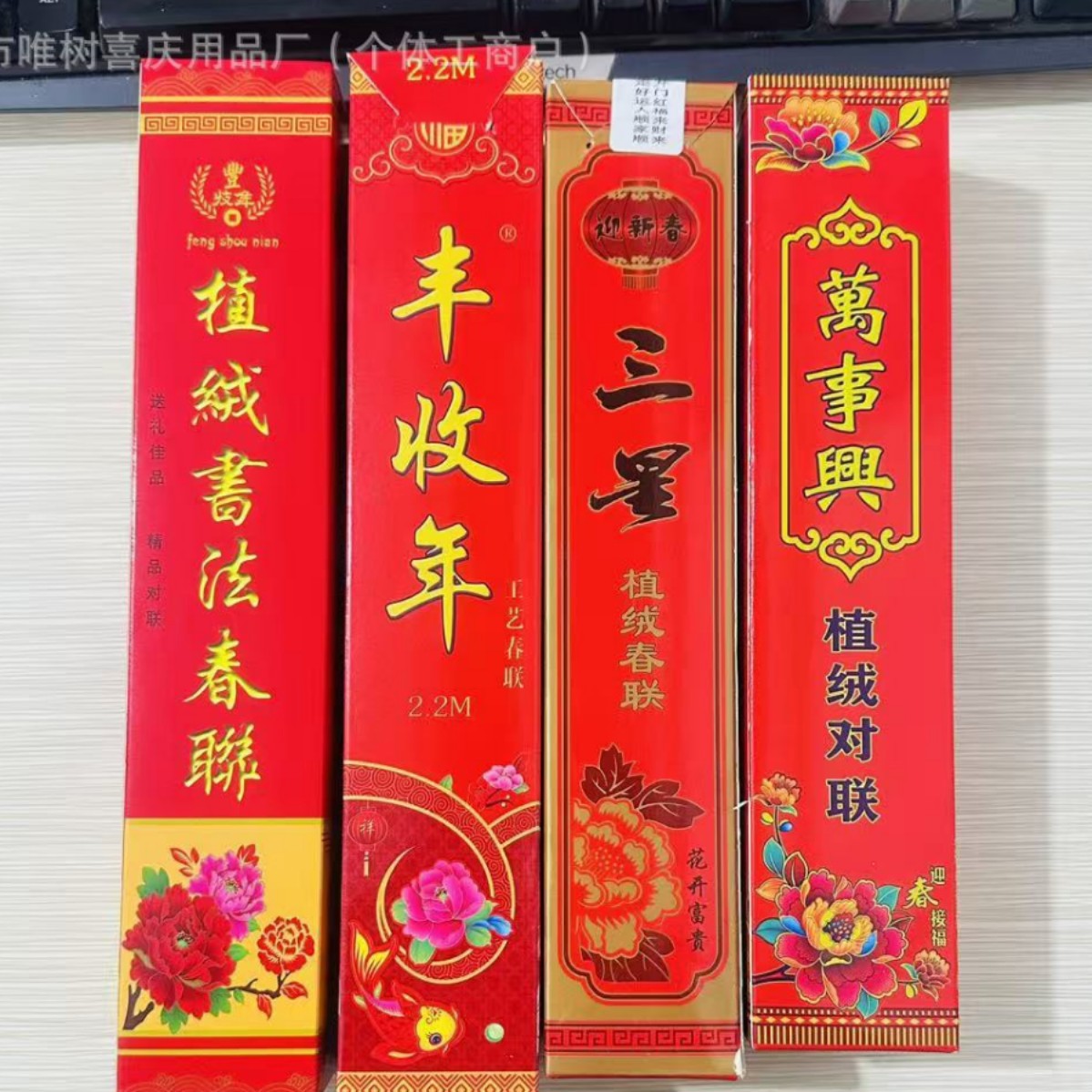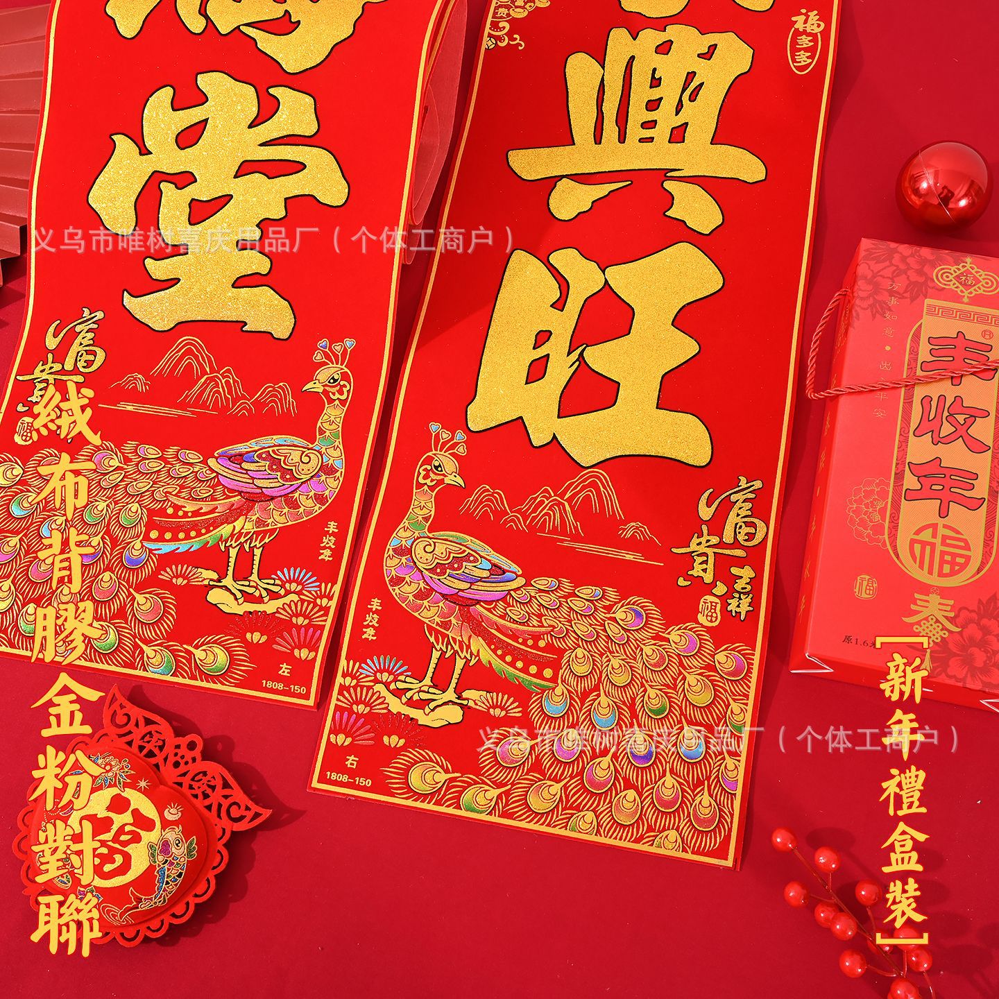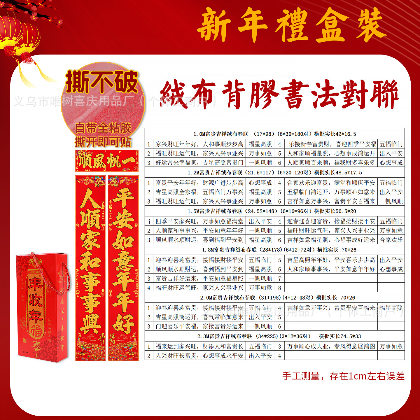 对联批发 2026铜版纸植绒布全背胶盒装春联 春节摆摊爆款批货厂家