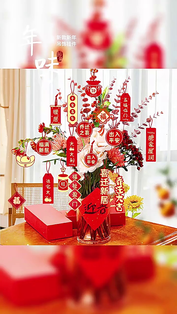 2026春节客厅盆栽摆摊马年新年财神挂件装饰小吊牌喜庆挂饰批发