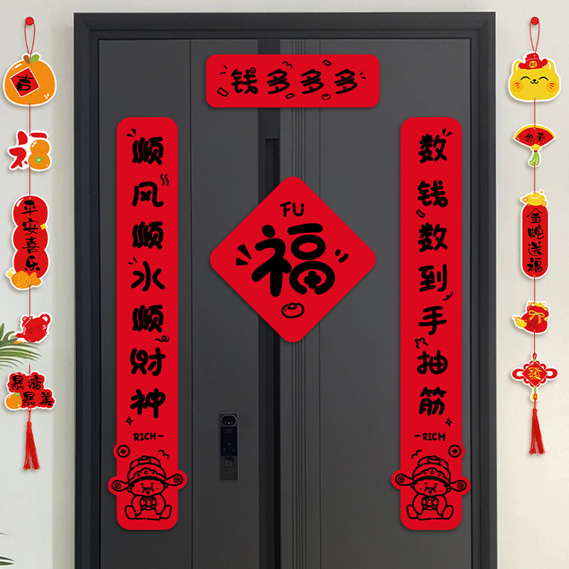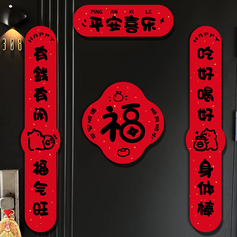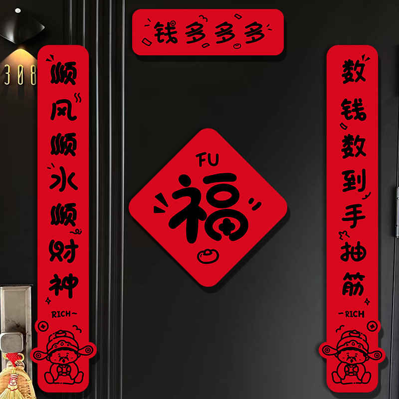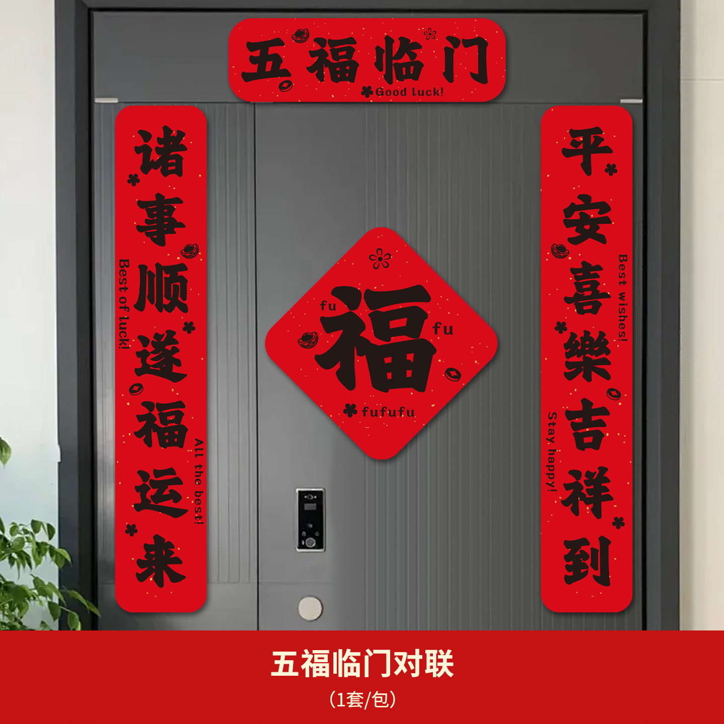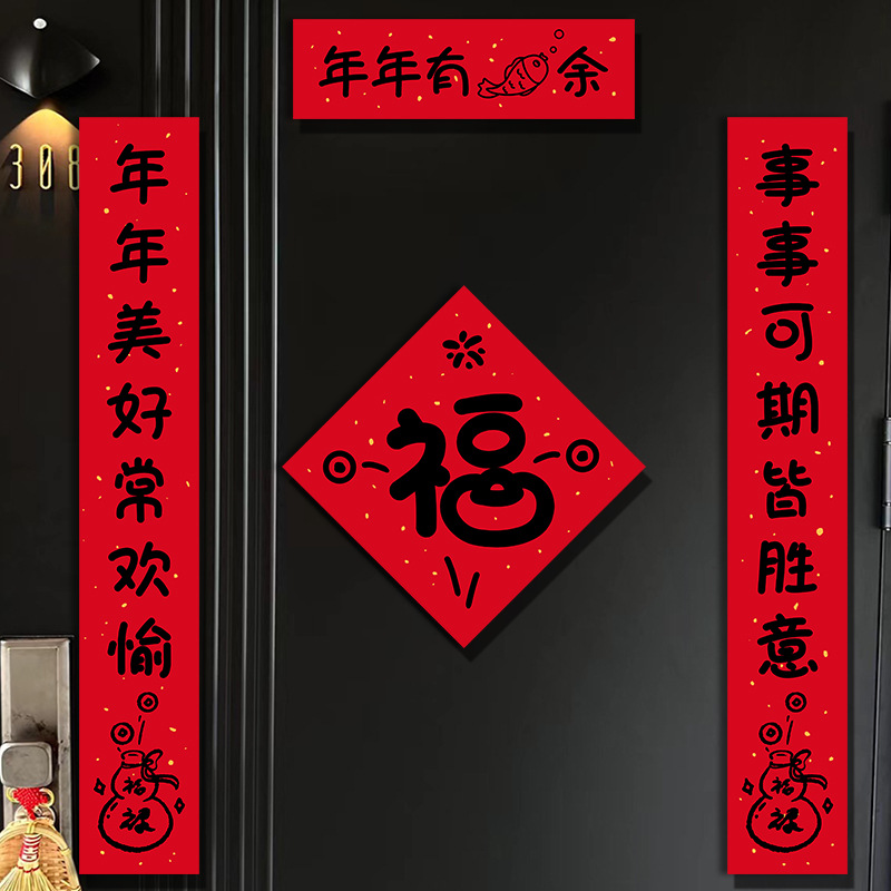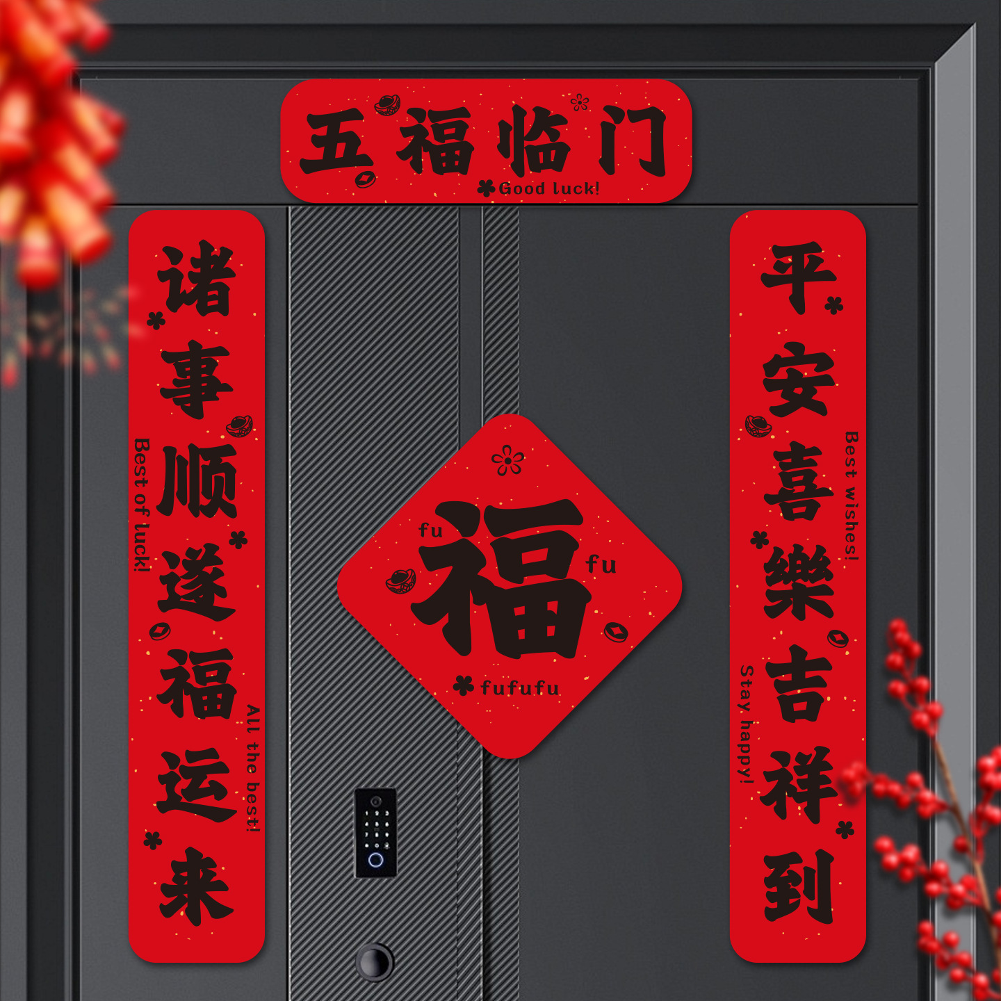 新年对联贴纸2026新款春节福字门贴创意家用黑字春联入户门联定制