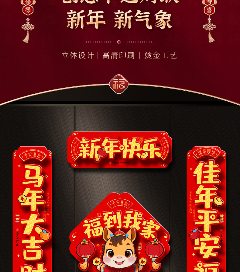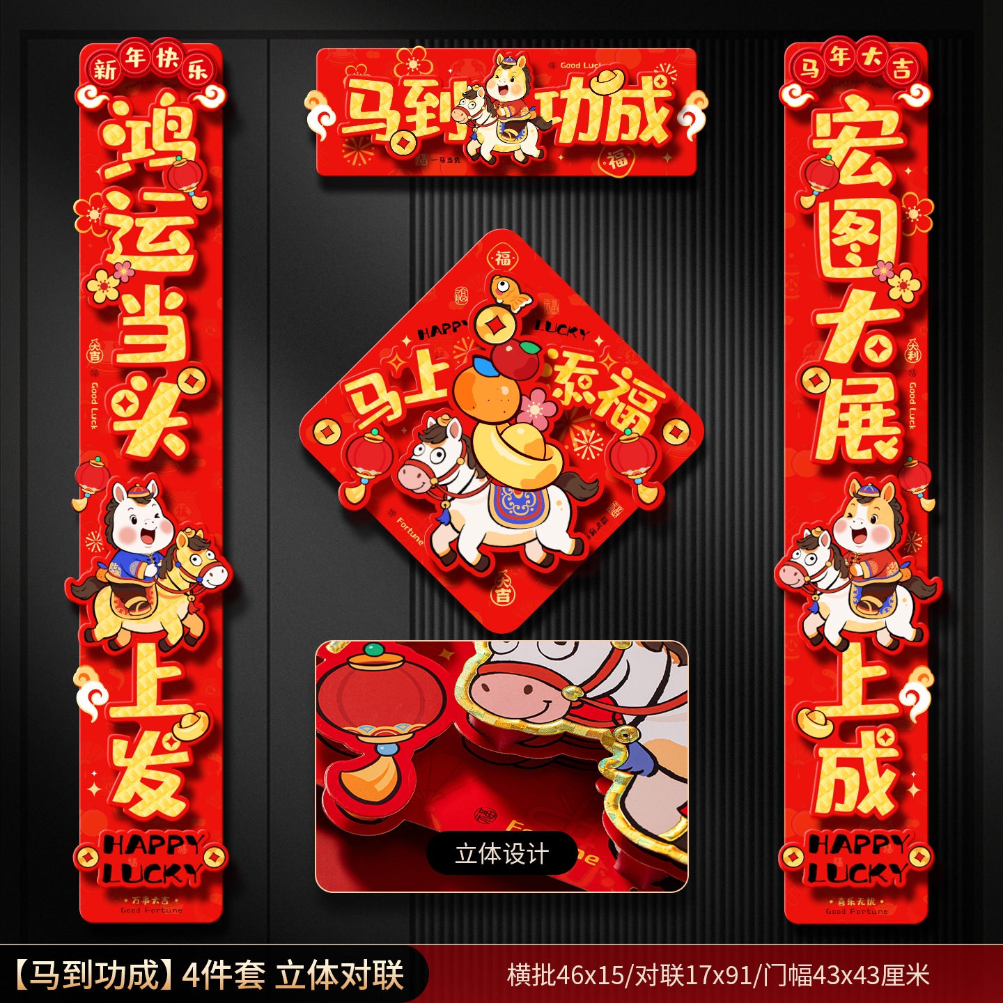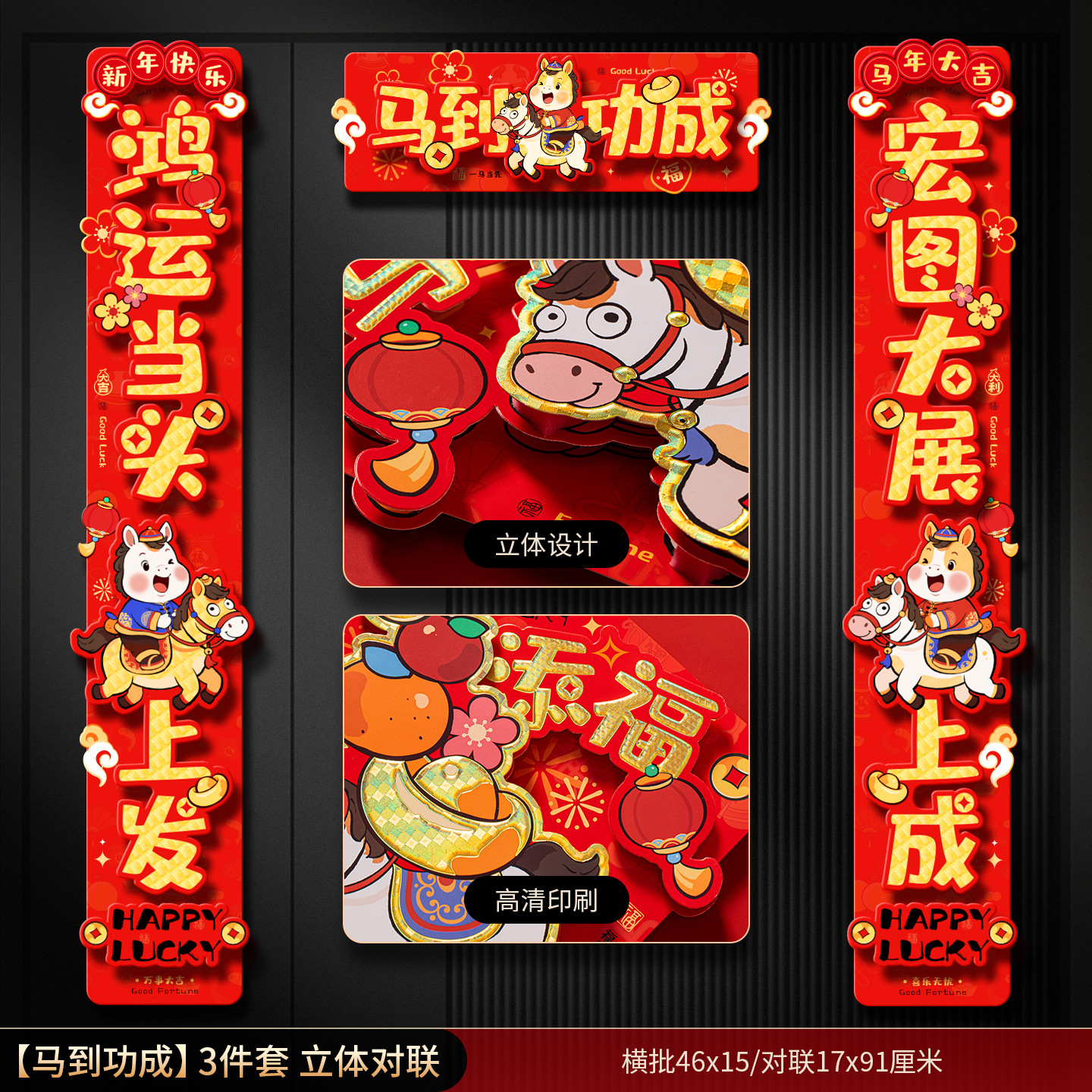 2026马年对联立体纸质春联新年入户门贴纸过年家用立体装饰