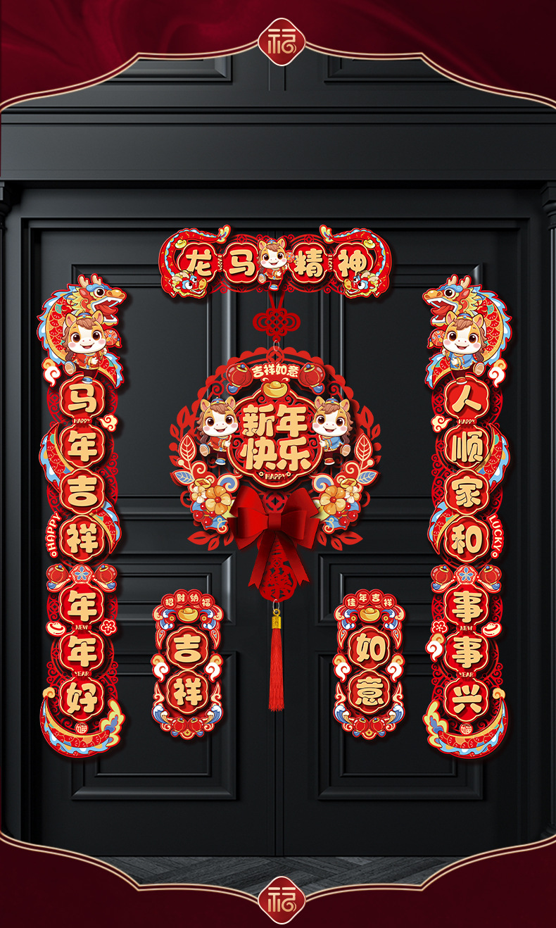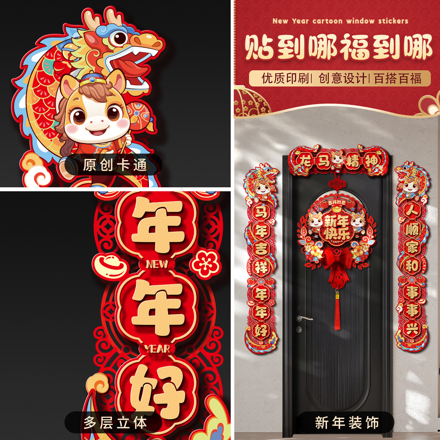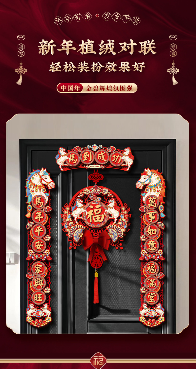 2026新款春节新年对联过年入户门布置马年春联毛毡磁吸装饰福字贴