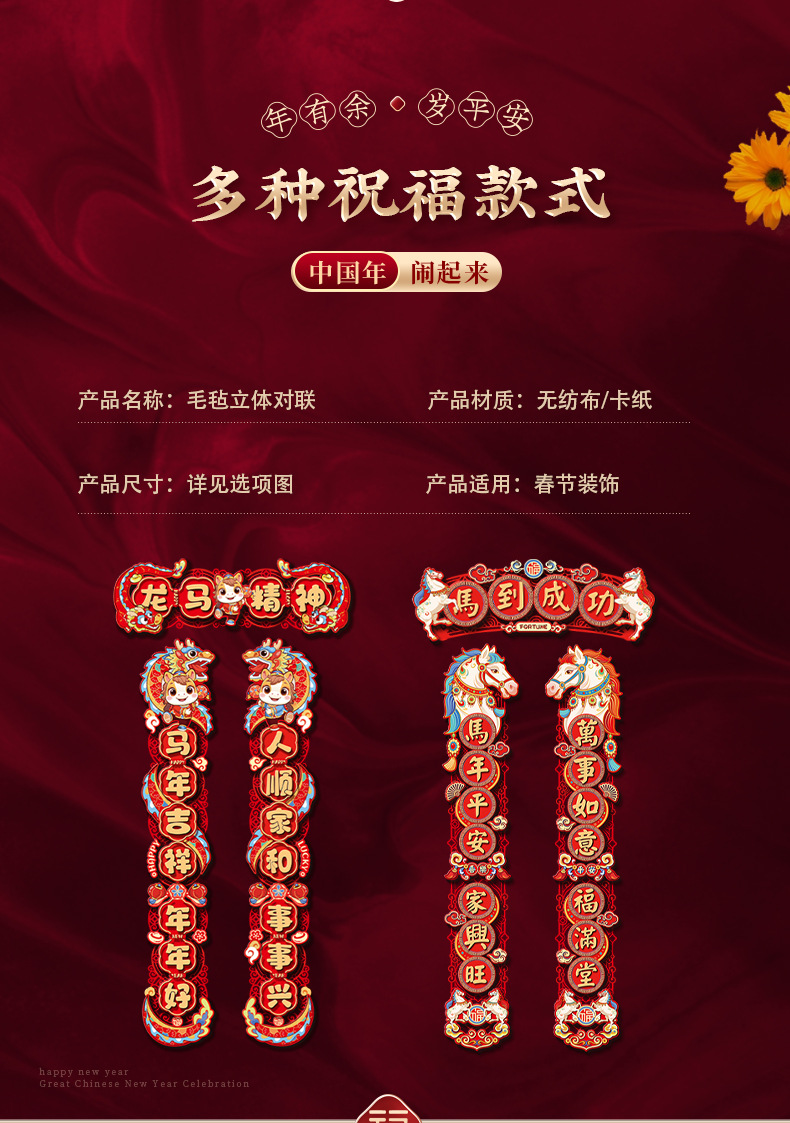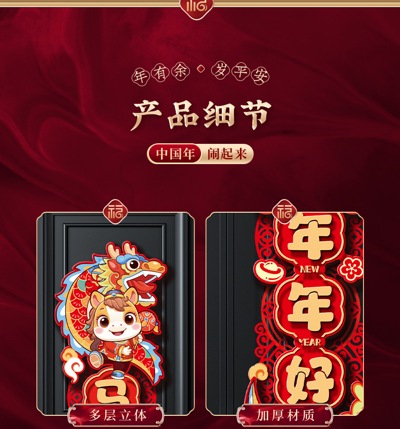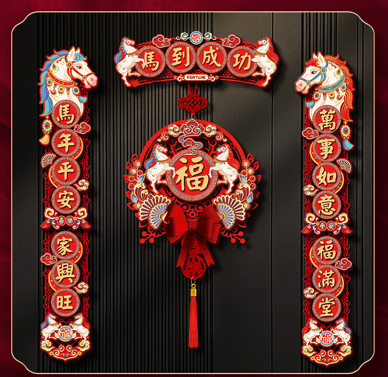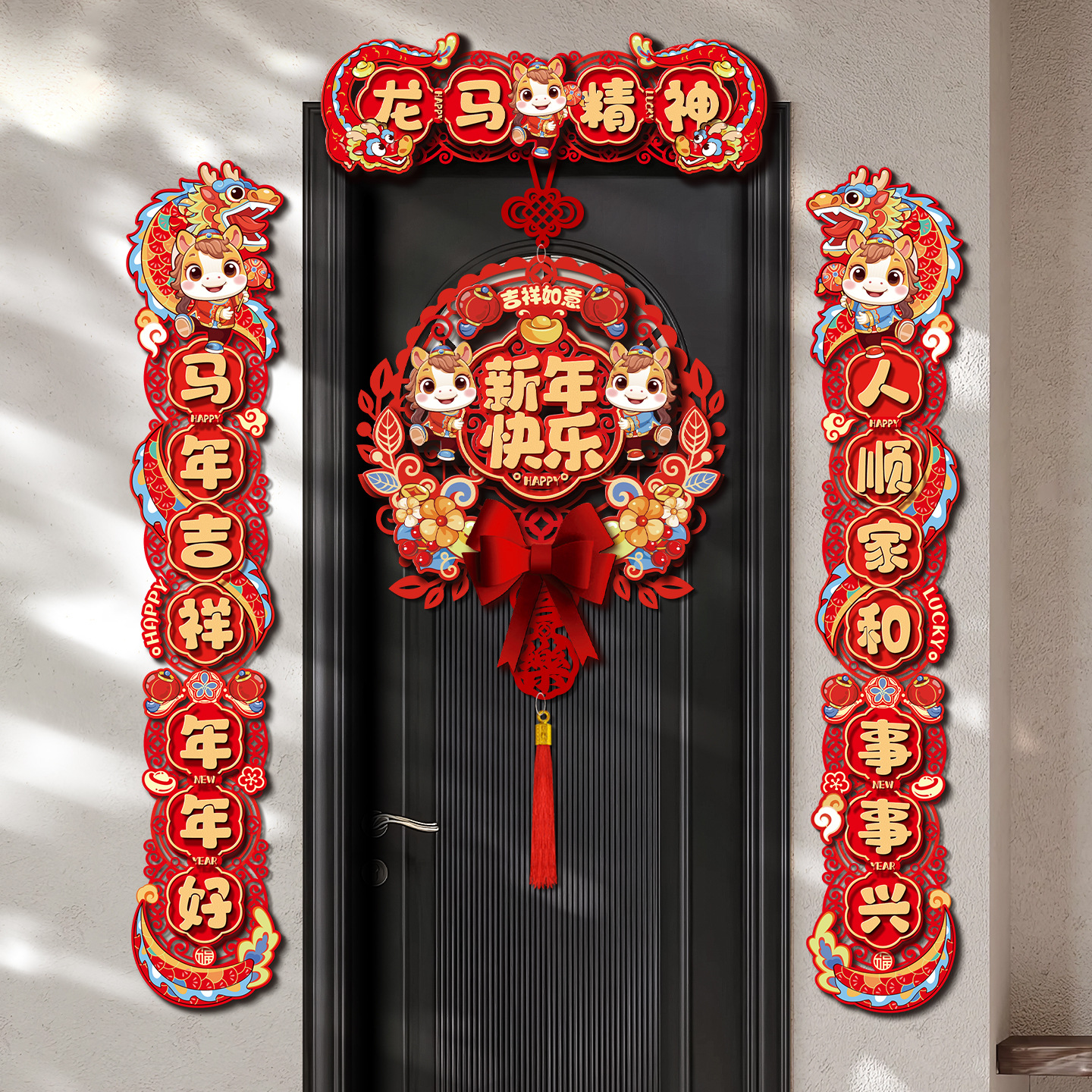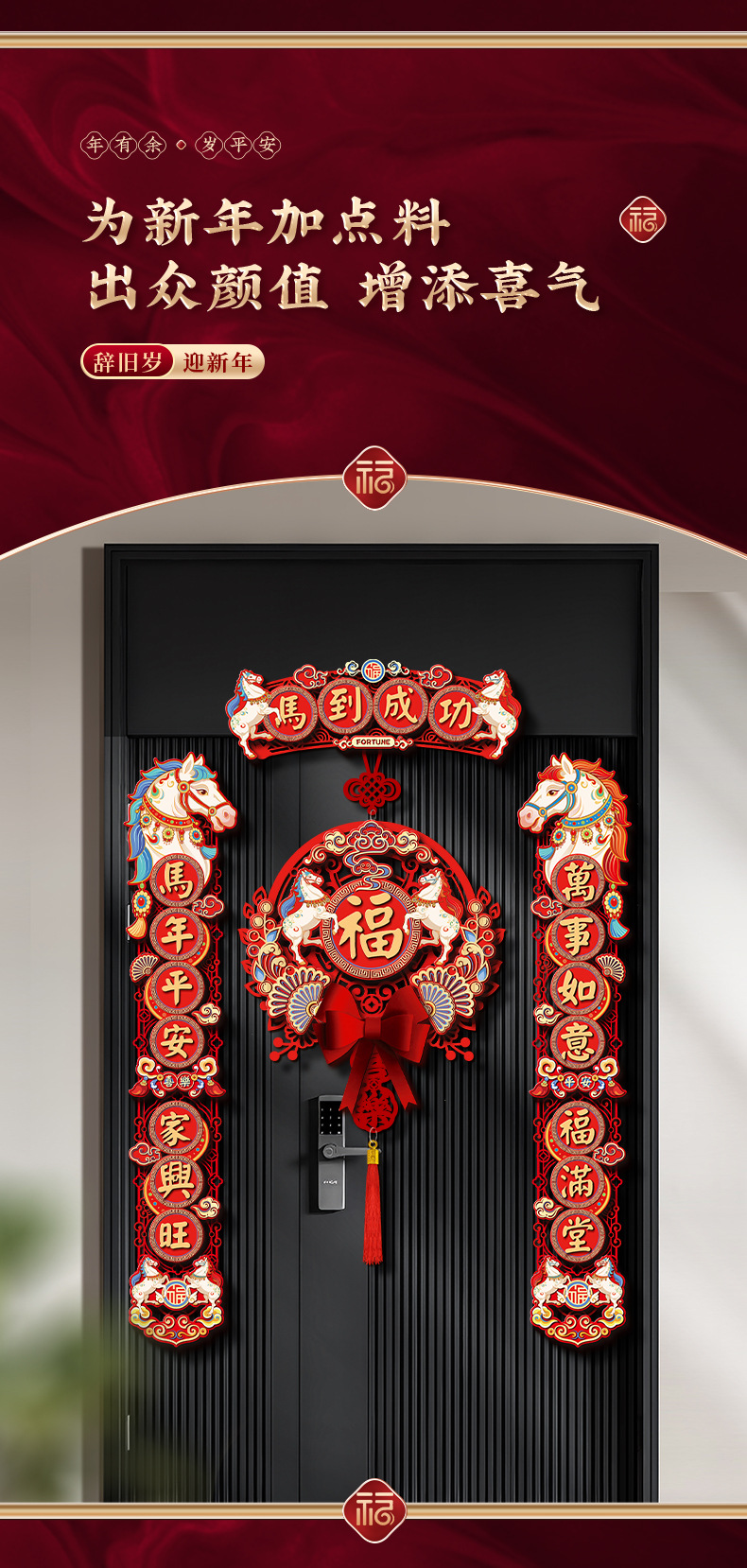 2026新款春节新年对联过年入户门布置马年春联毛毡磁吸装饰福字贴