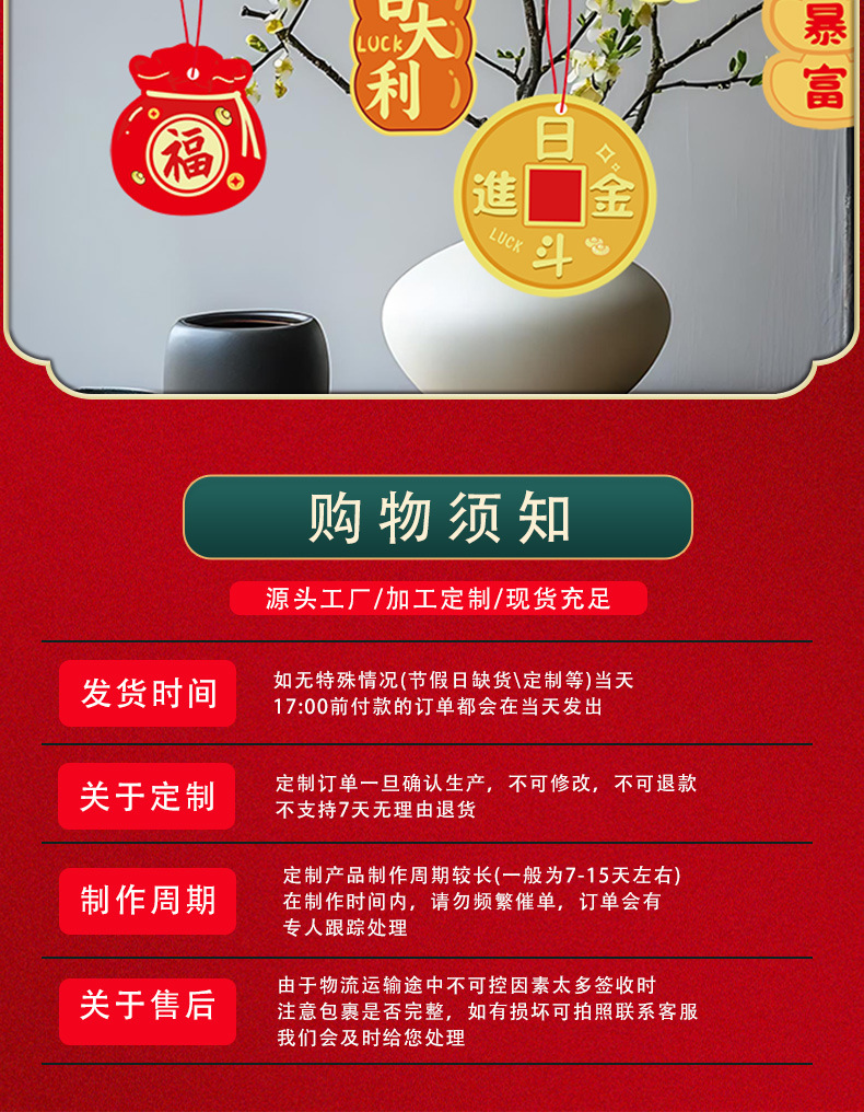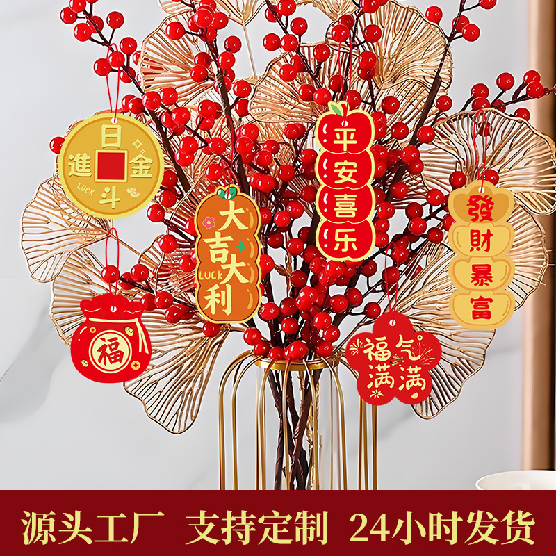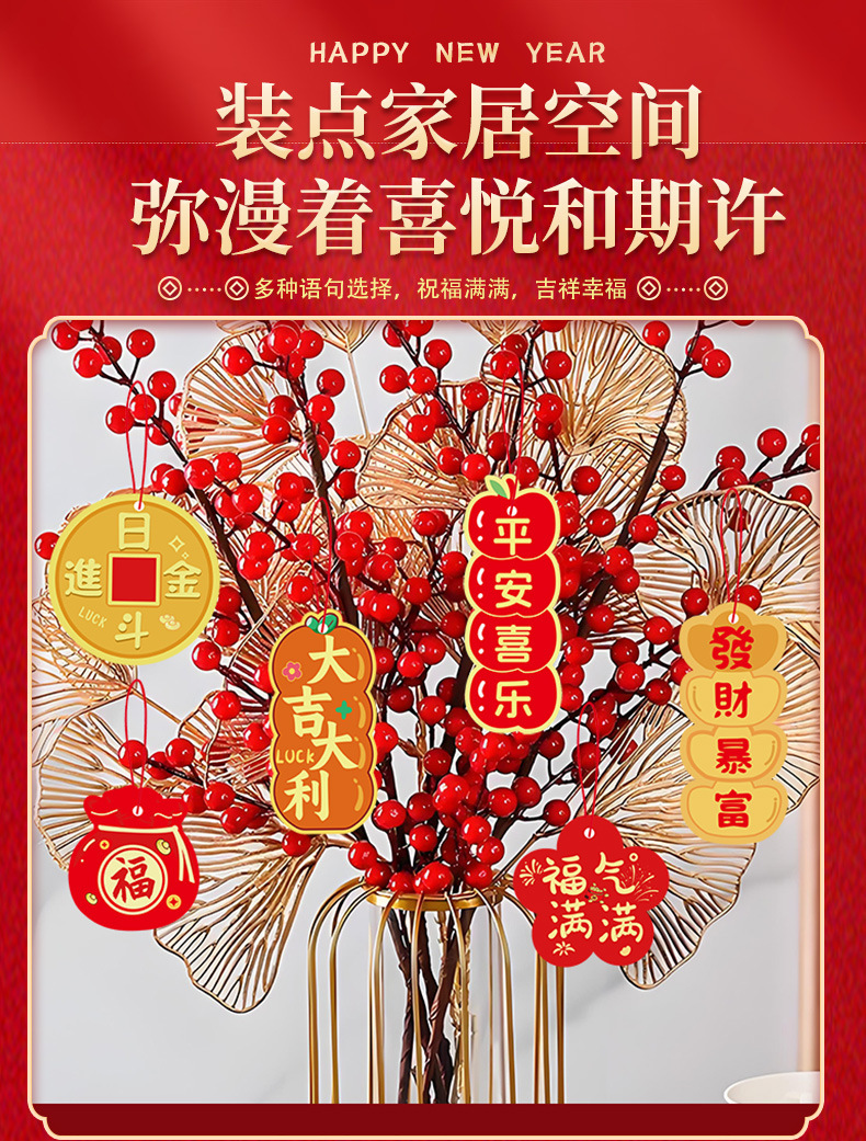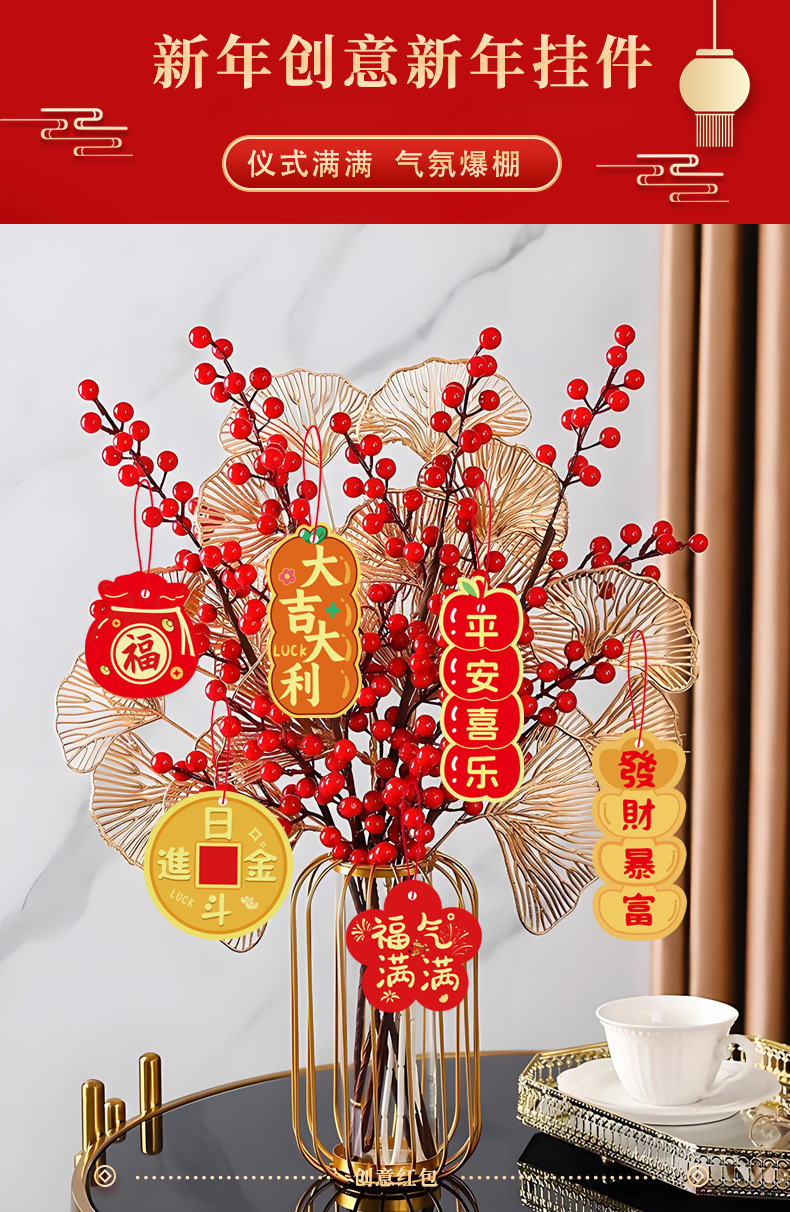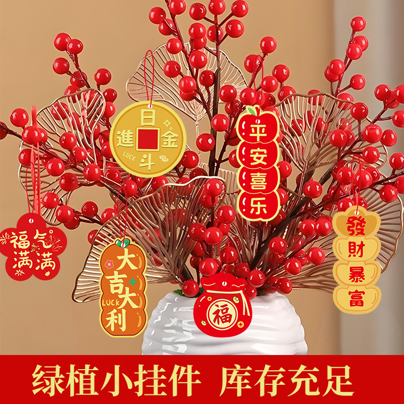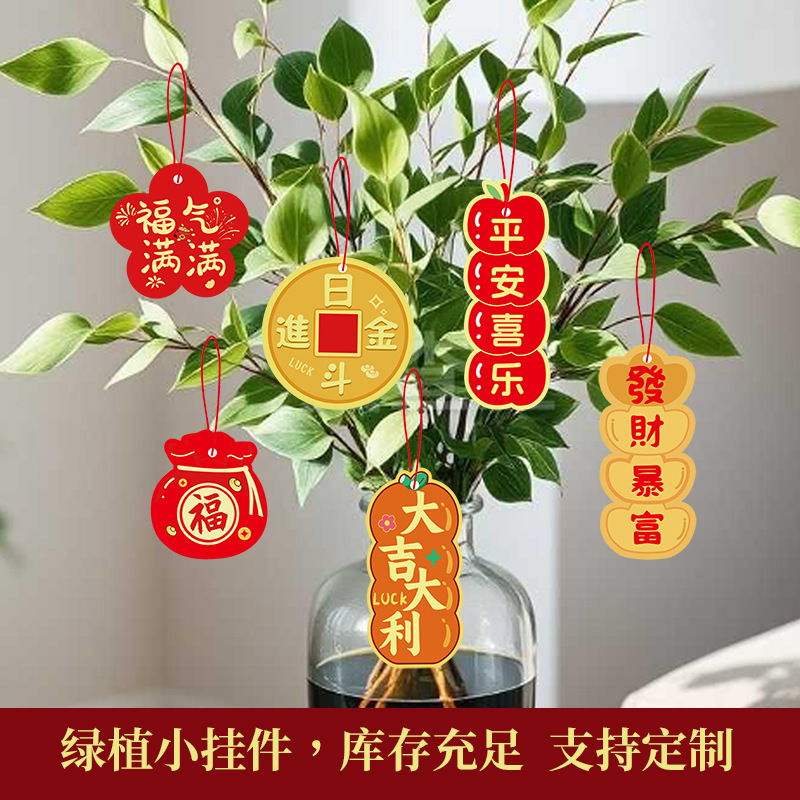 春节客厅场景布置福桶盆栽绿植过年马年新年装饰品挂件挂饰吊卡