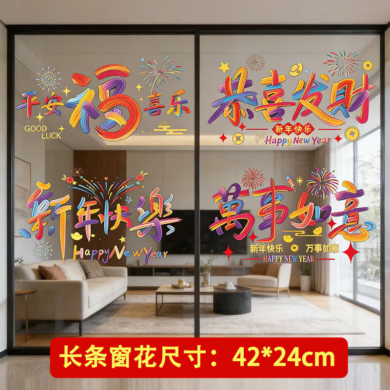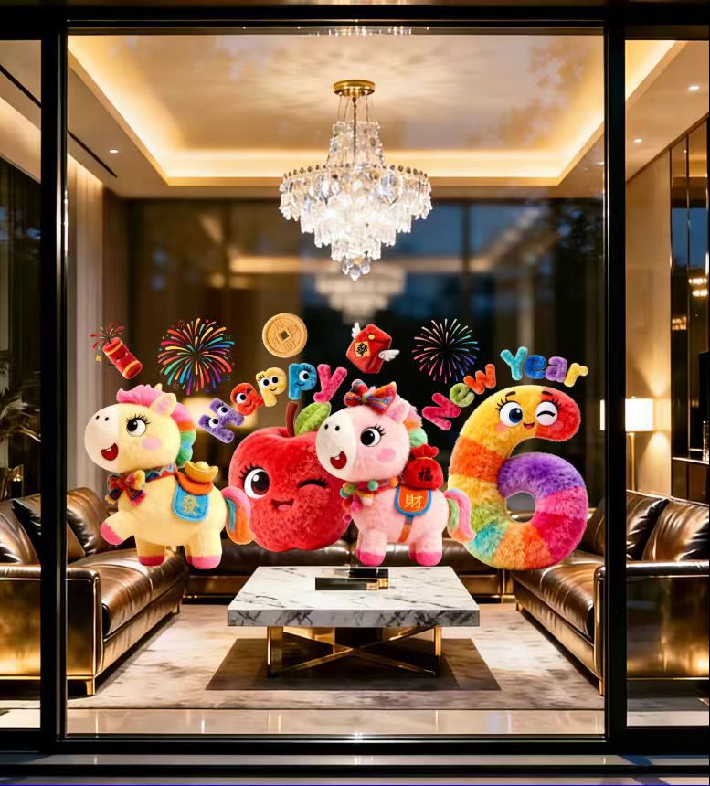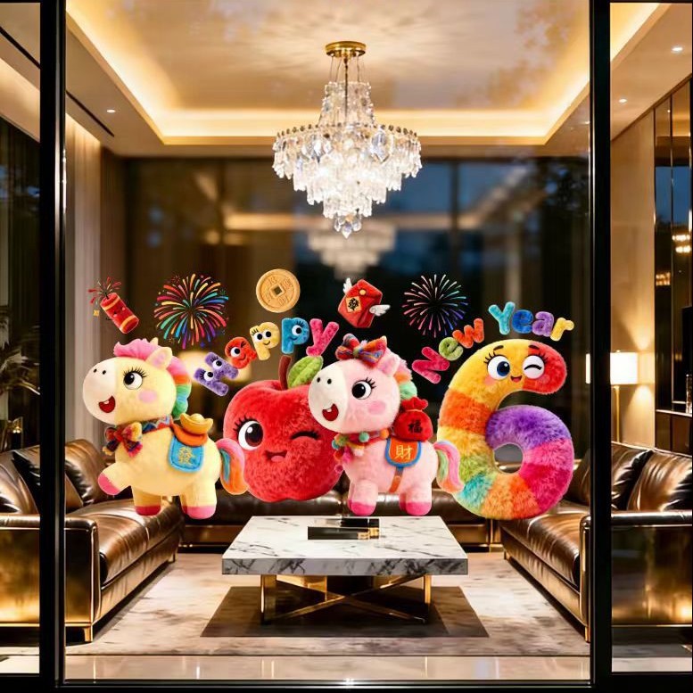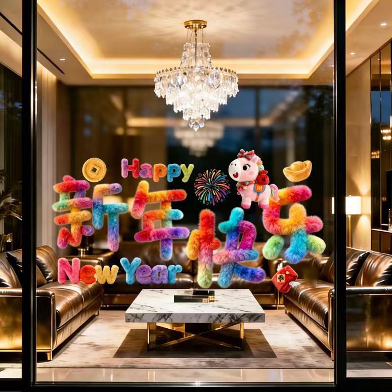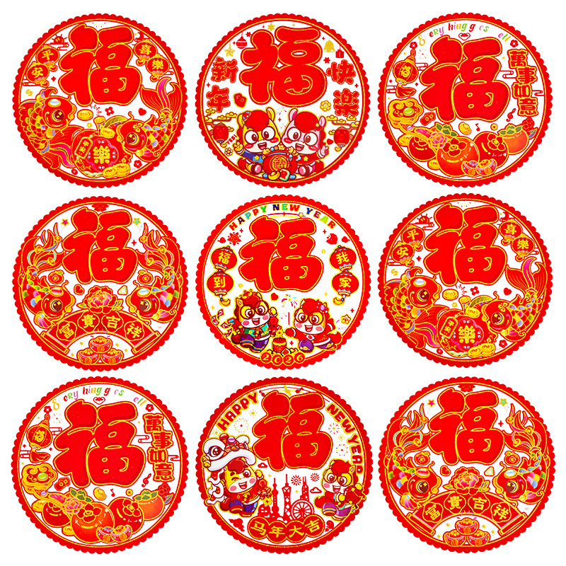 窗花2026马年窗贴植绒新年用品剪纸福字静电贴厂家批发