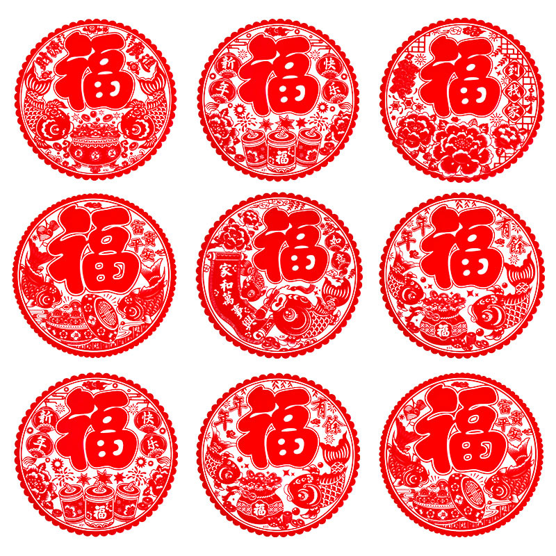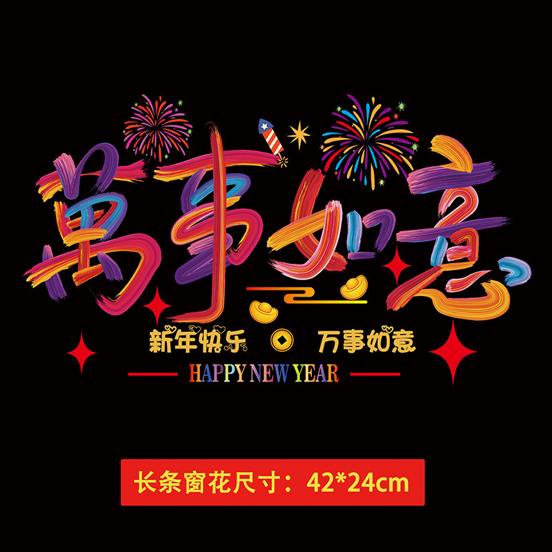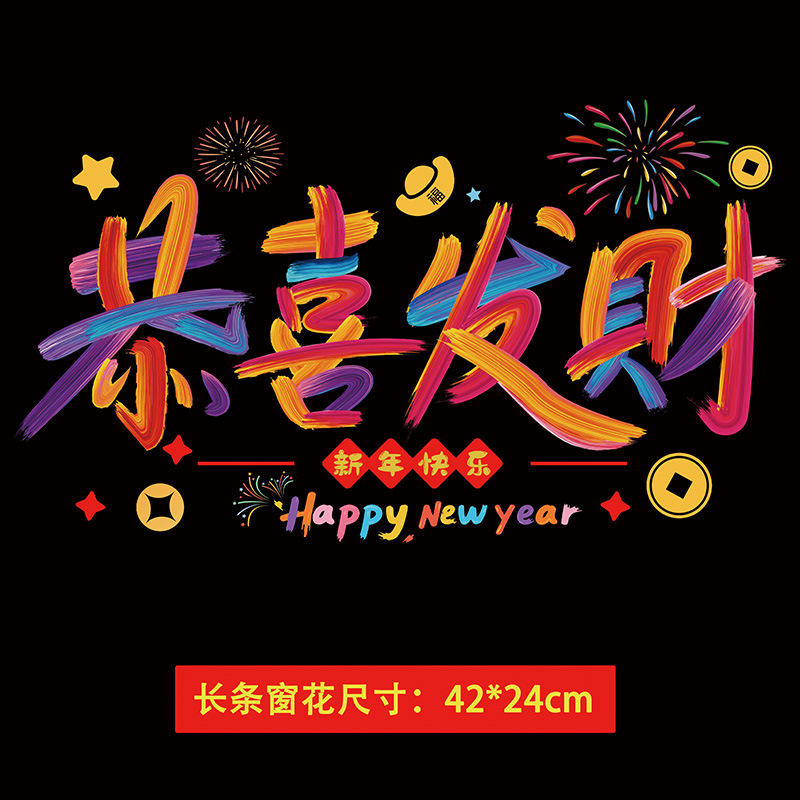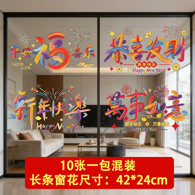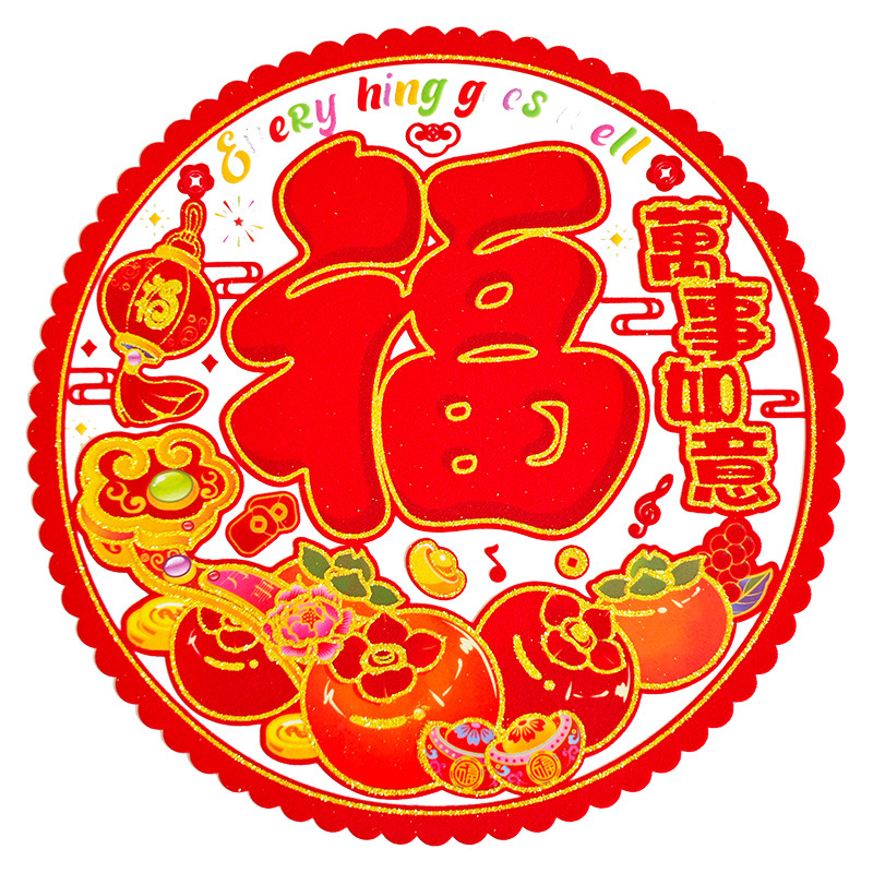 窗花2026马年窗贴植绒新年用品剪纸福字静电贴厂家批发