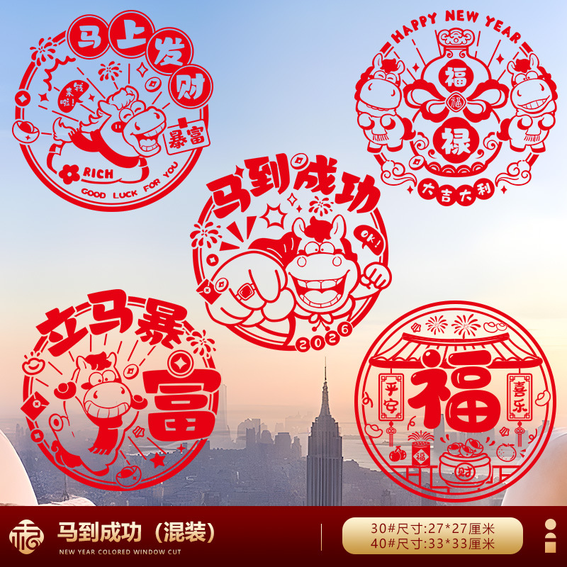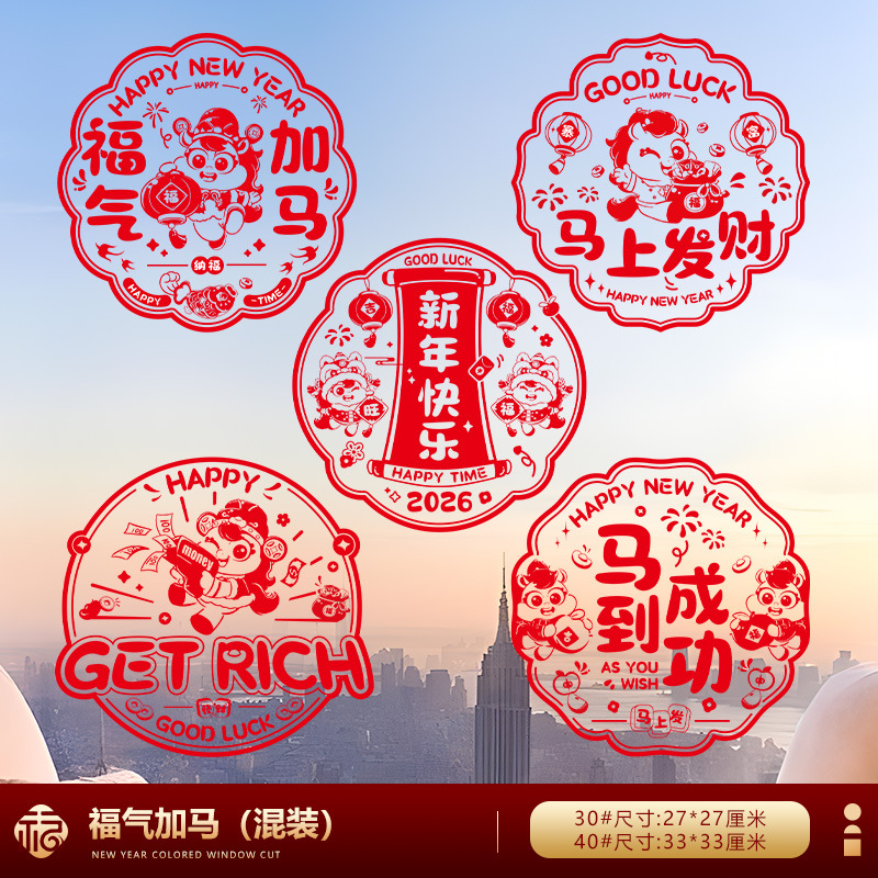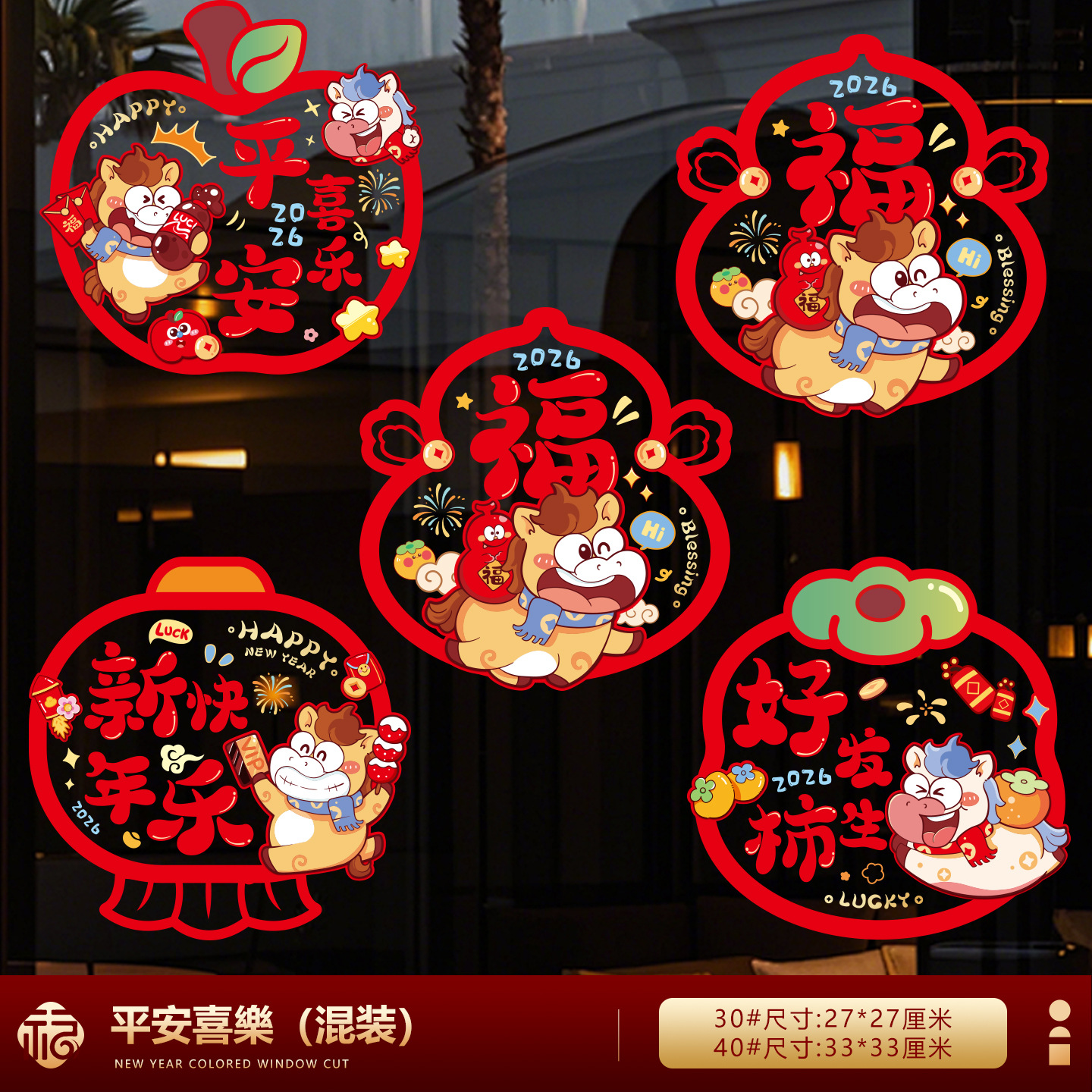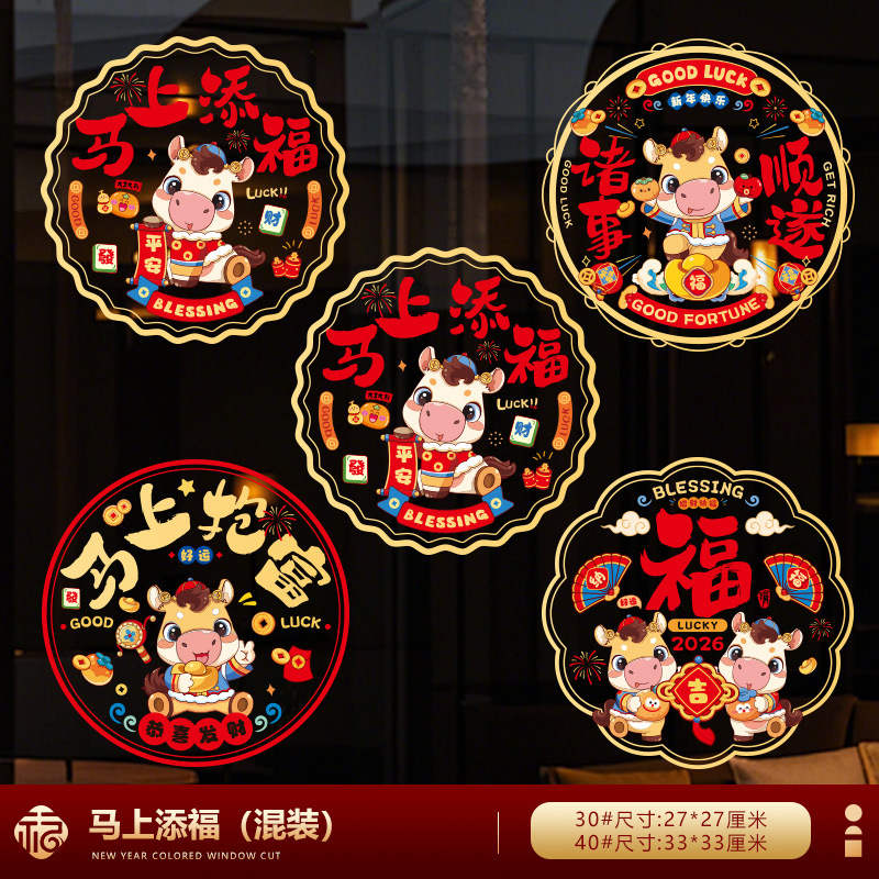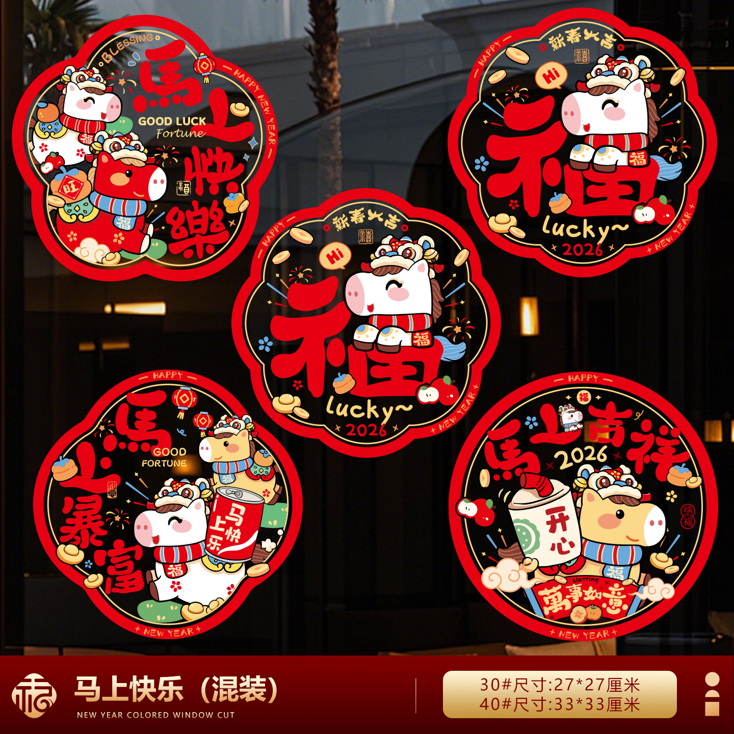 2026福字门贴马年新年装饰大张窗花贴春节过年窗户玻璃贴纸静电贴