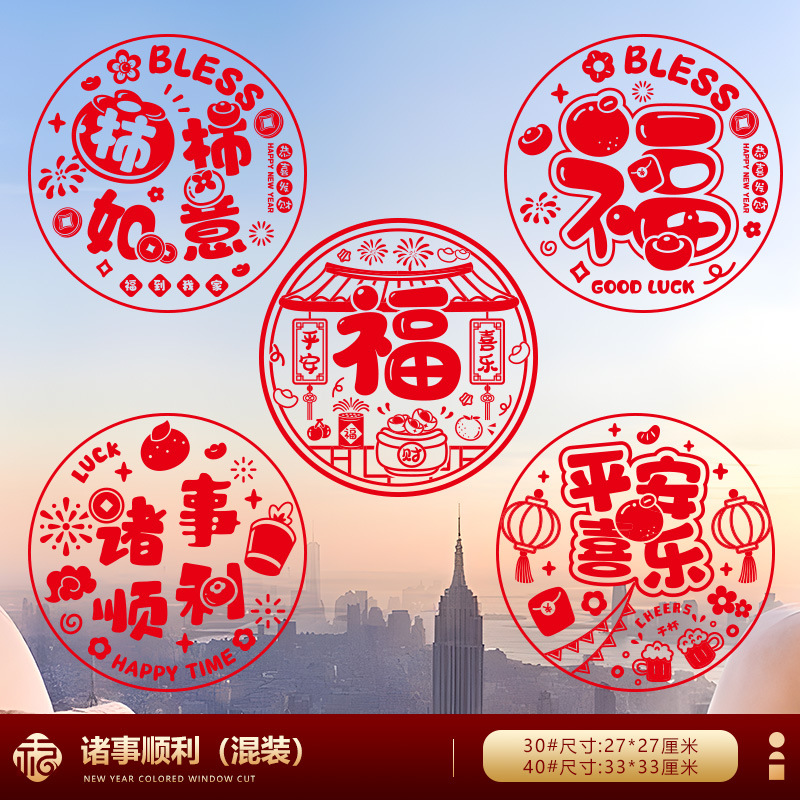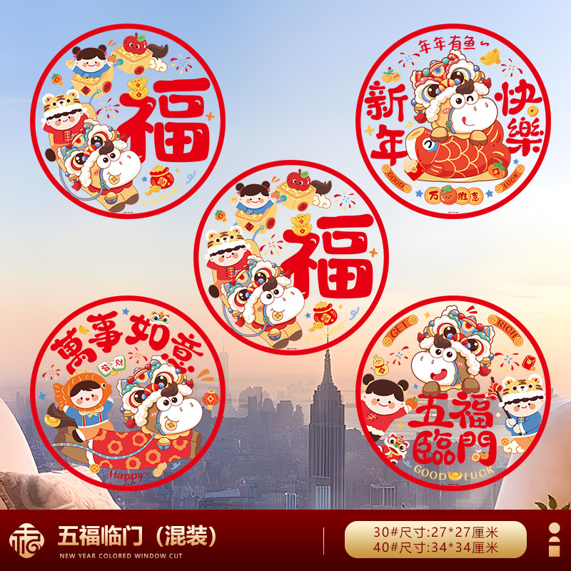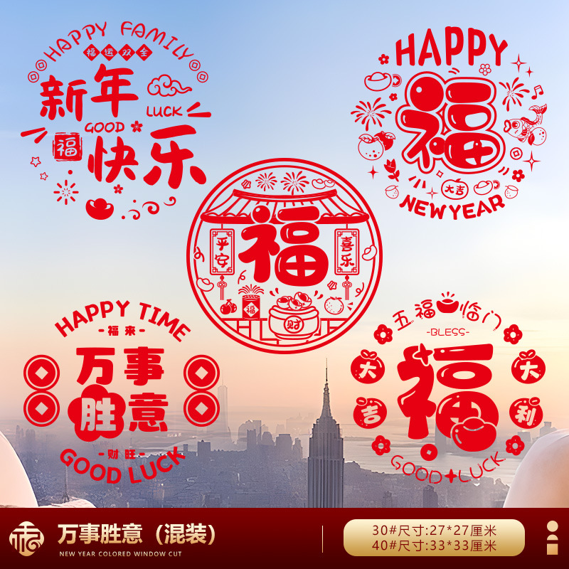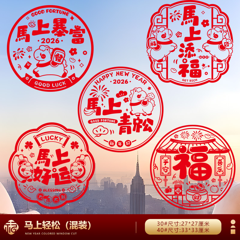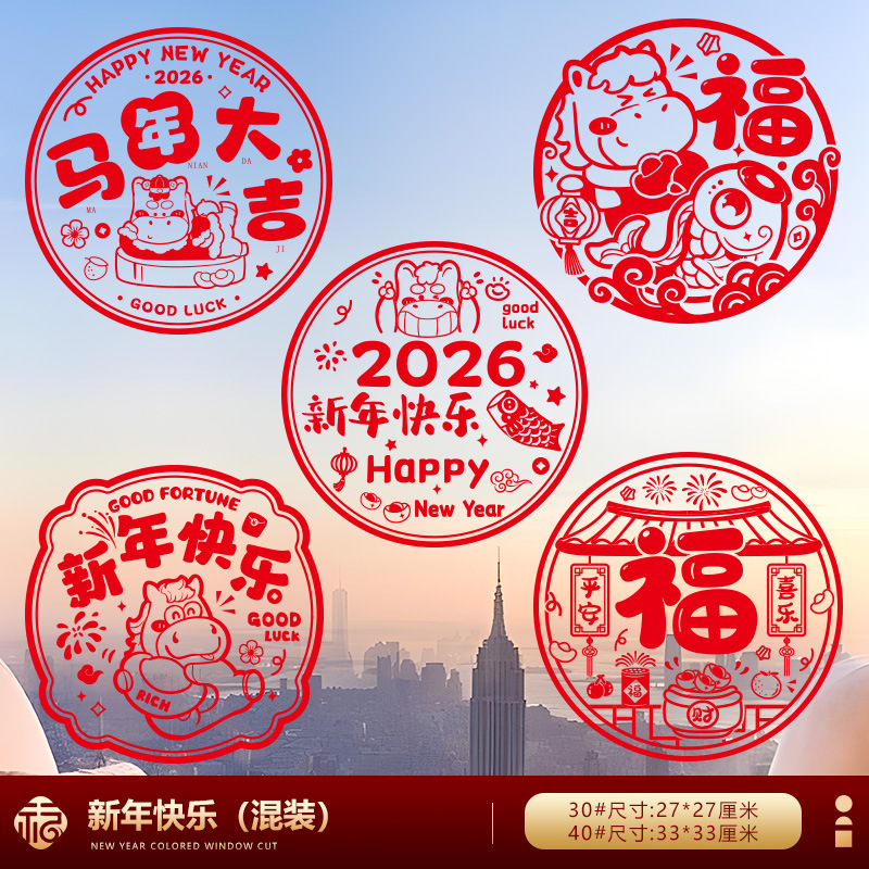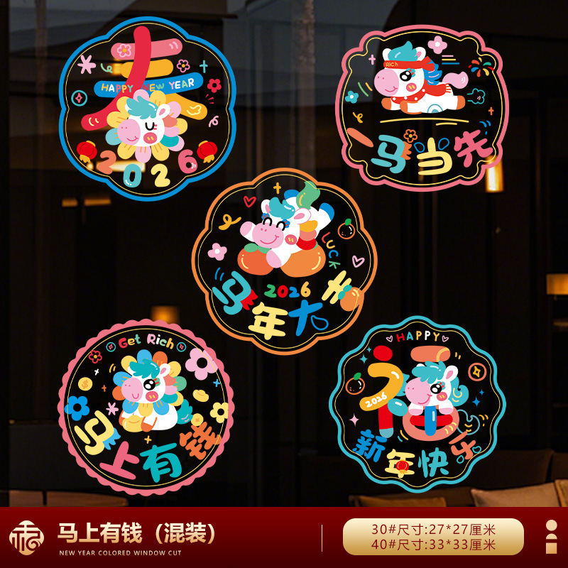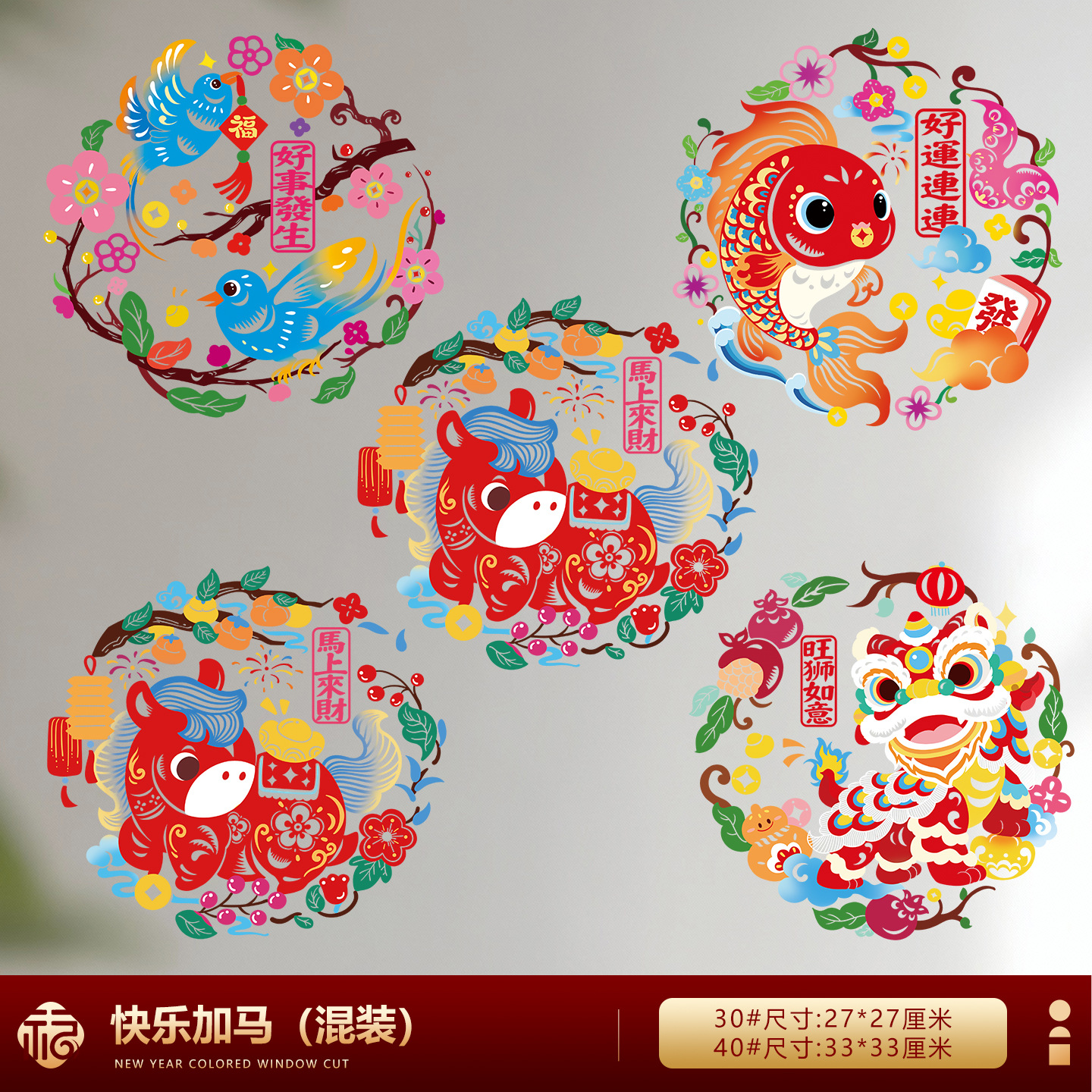 2026福字门贴马年新年装饰大张窗花贴春节过年窗户玻璃贴纸静电贴