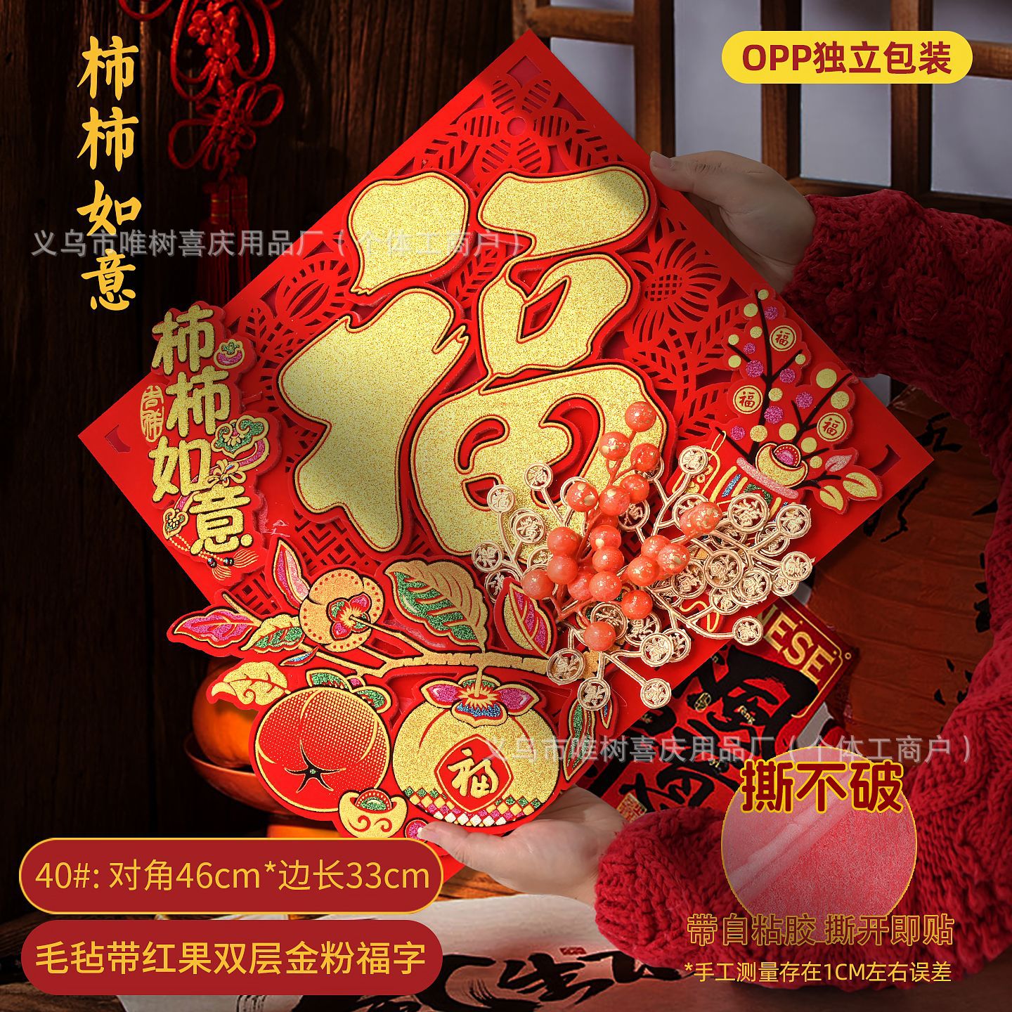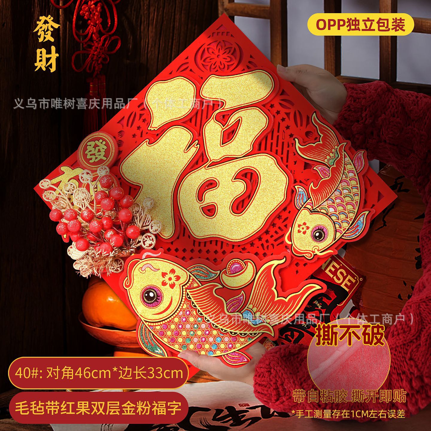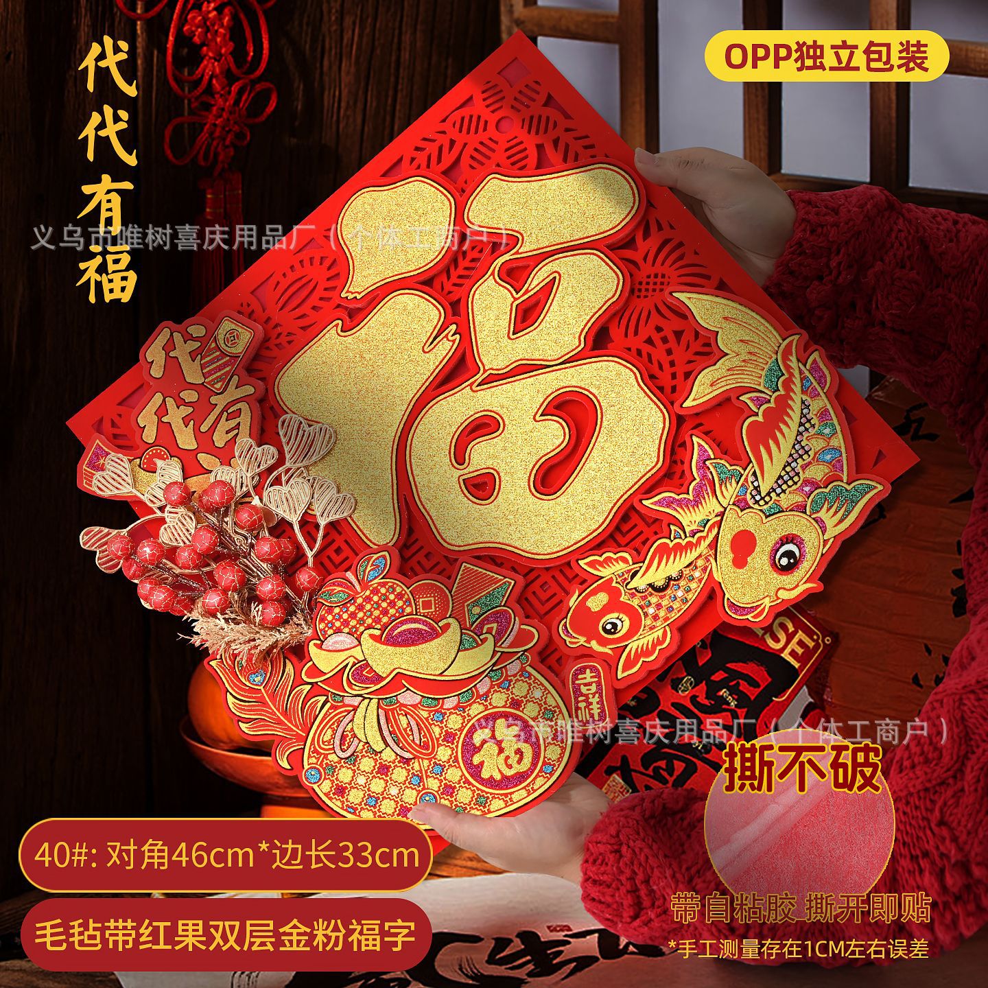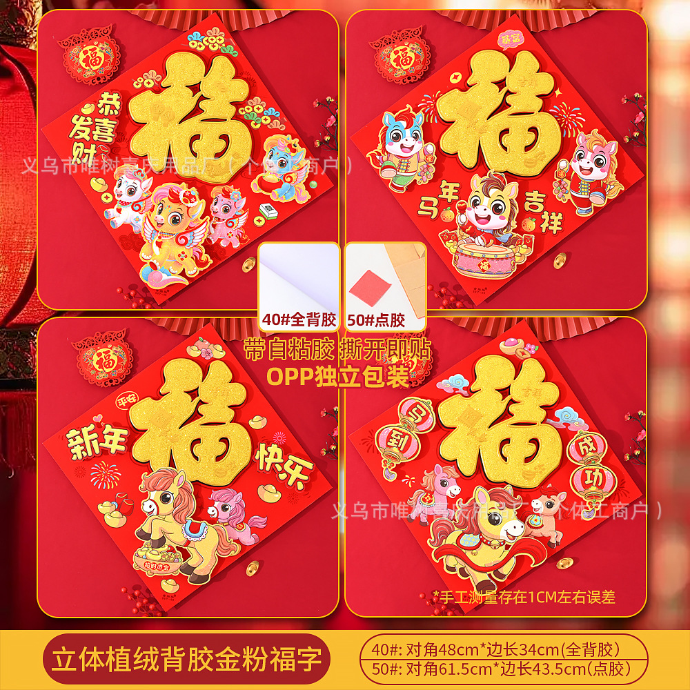 福字门贴2026马年植绒布立体生肖福字贴春节摆摊爆款年画批货厂家
