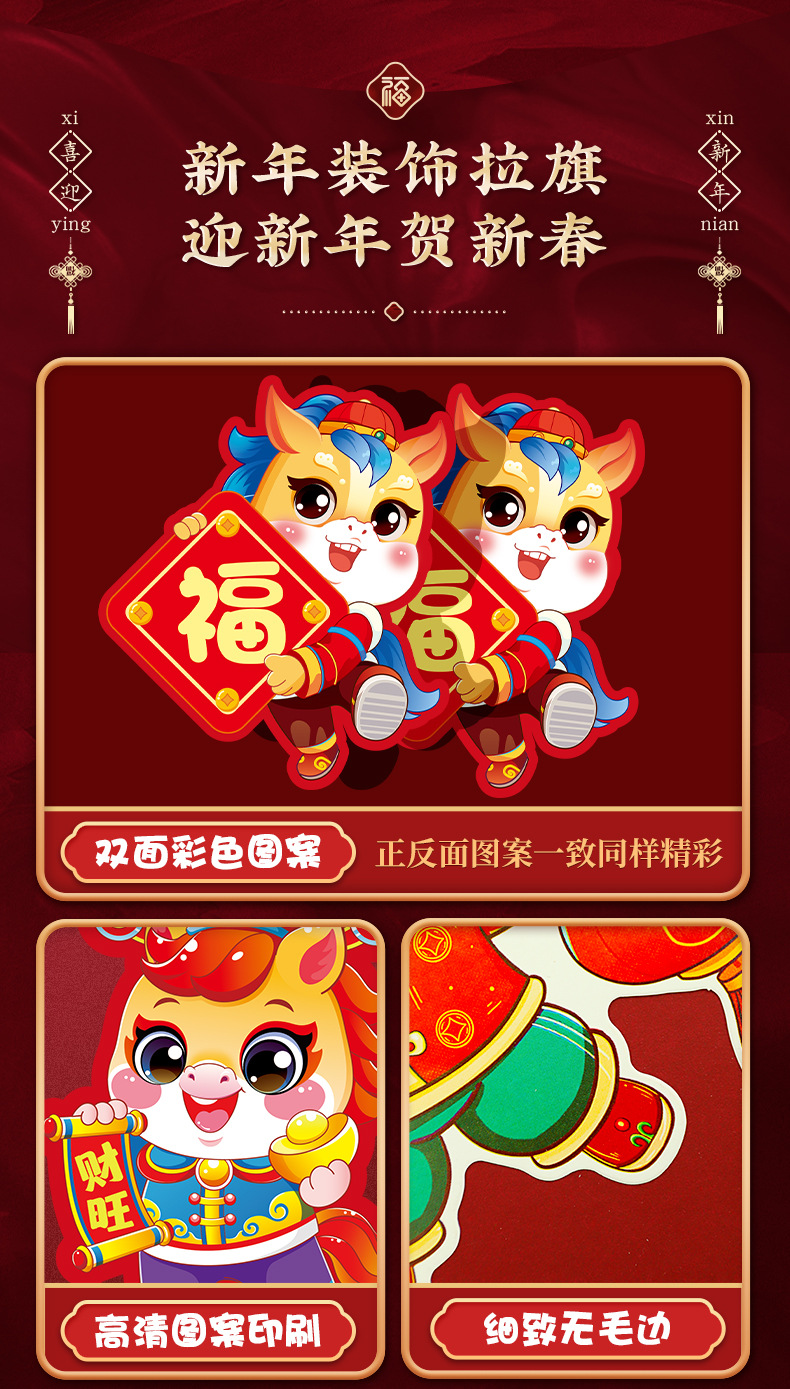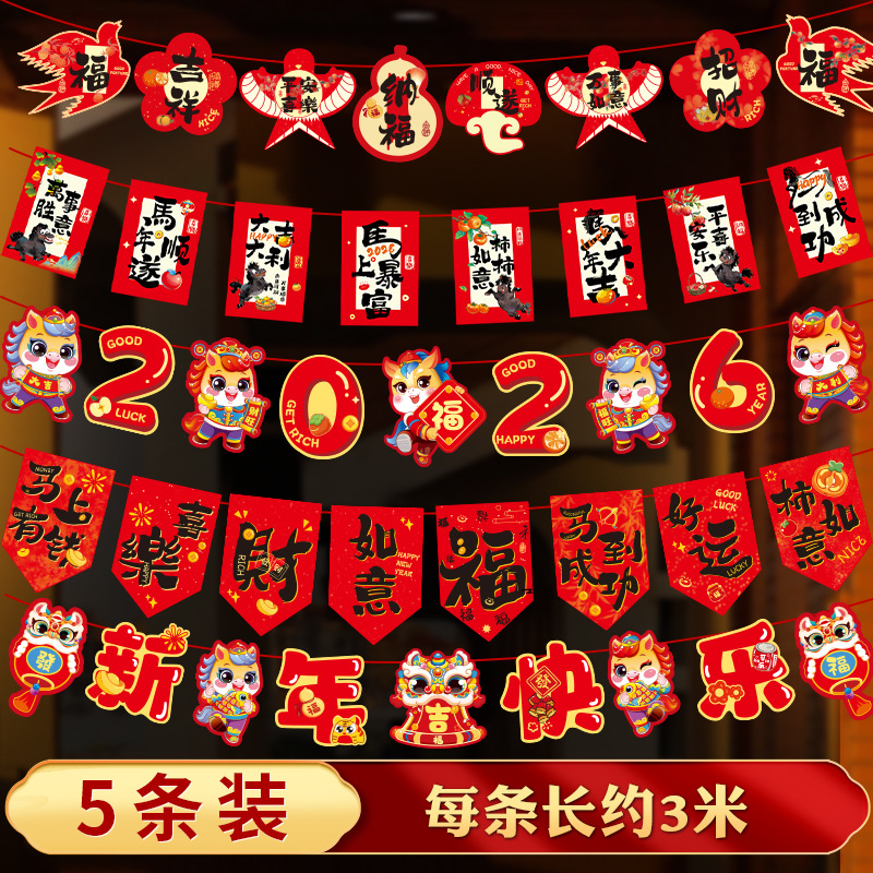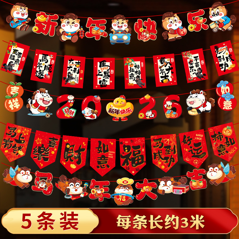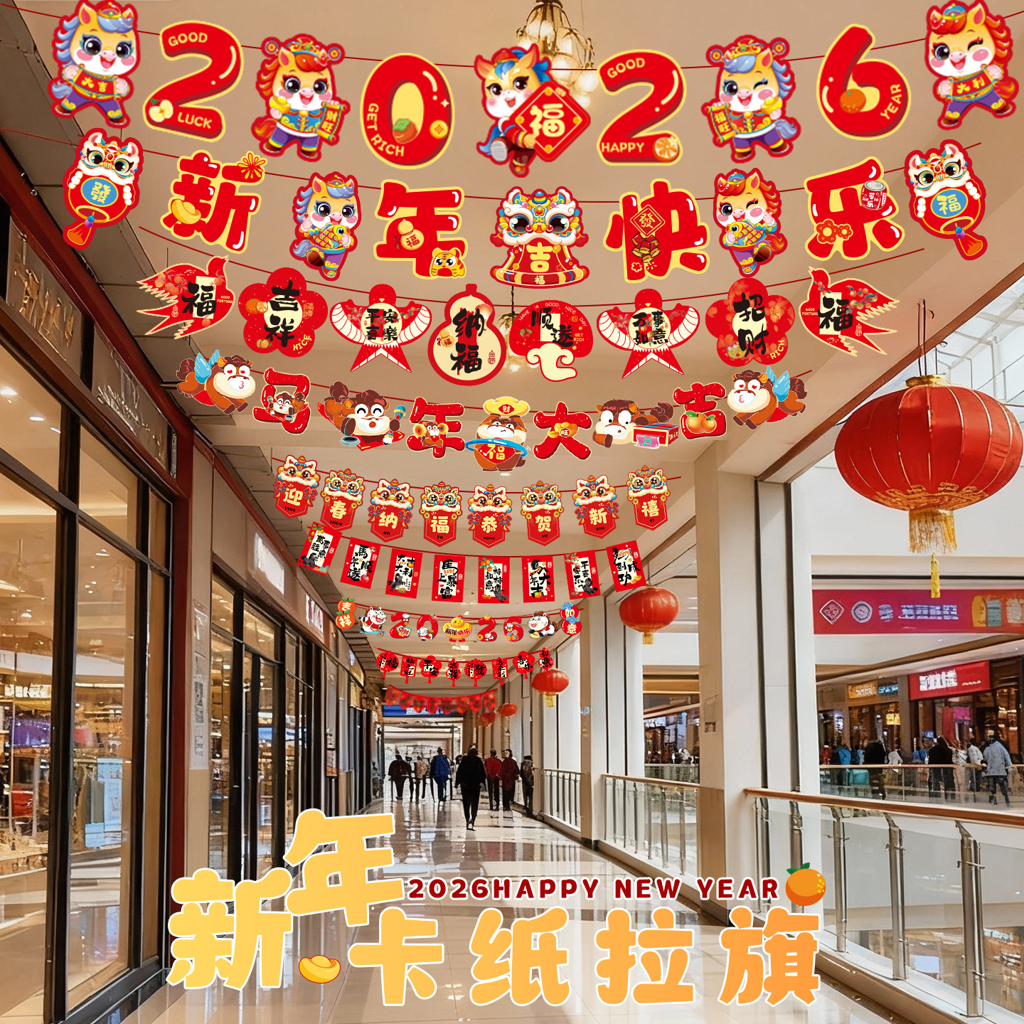 2026马年装饰品拉花挂件春节商场幼儿园拉旗挂饰新年入宅场景布置