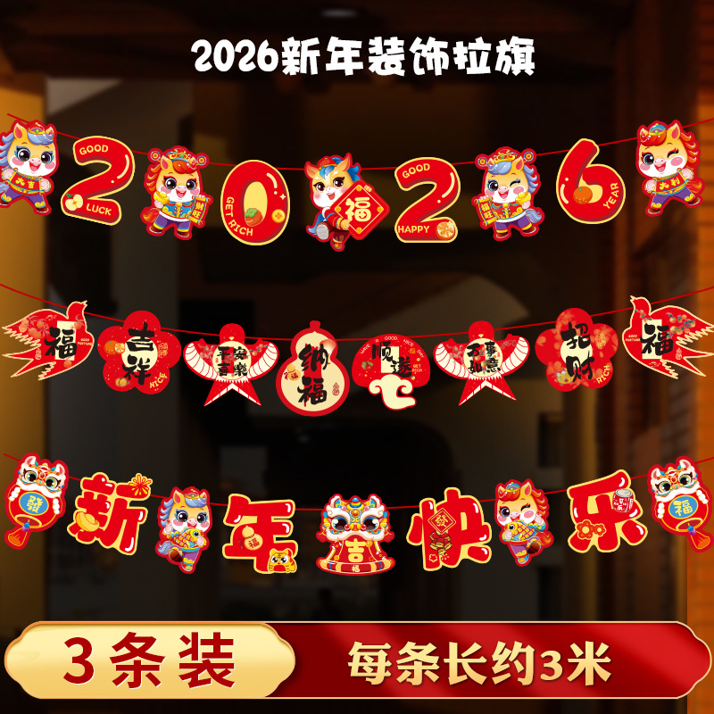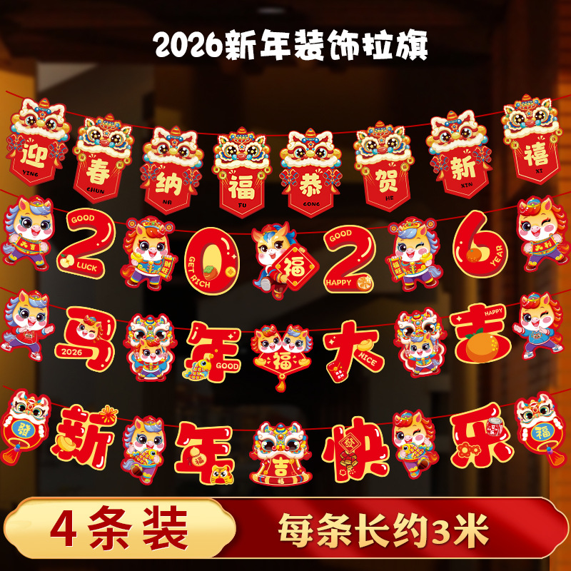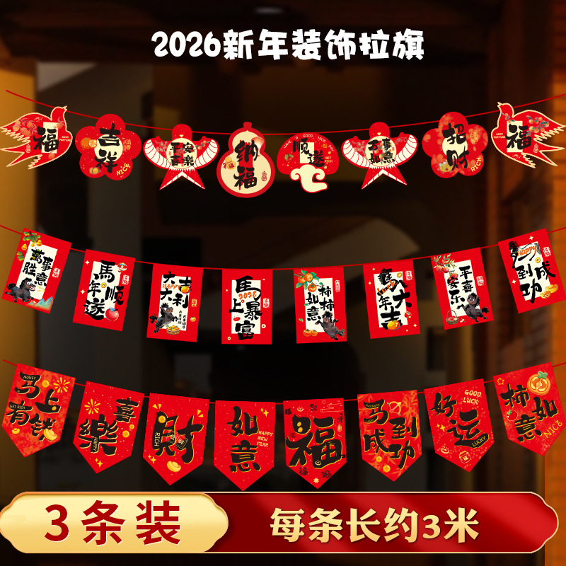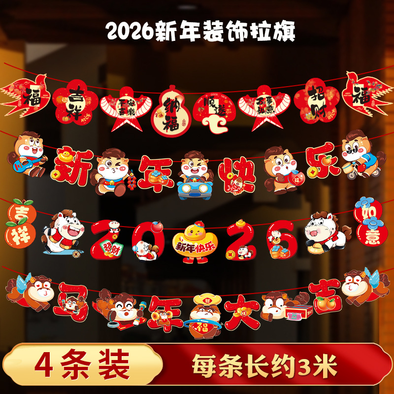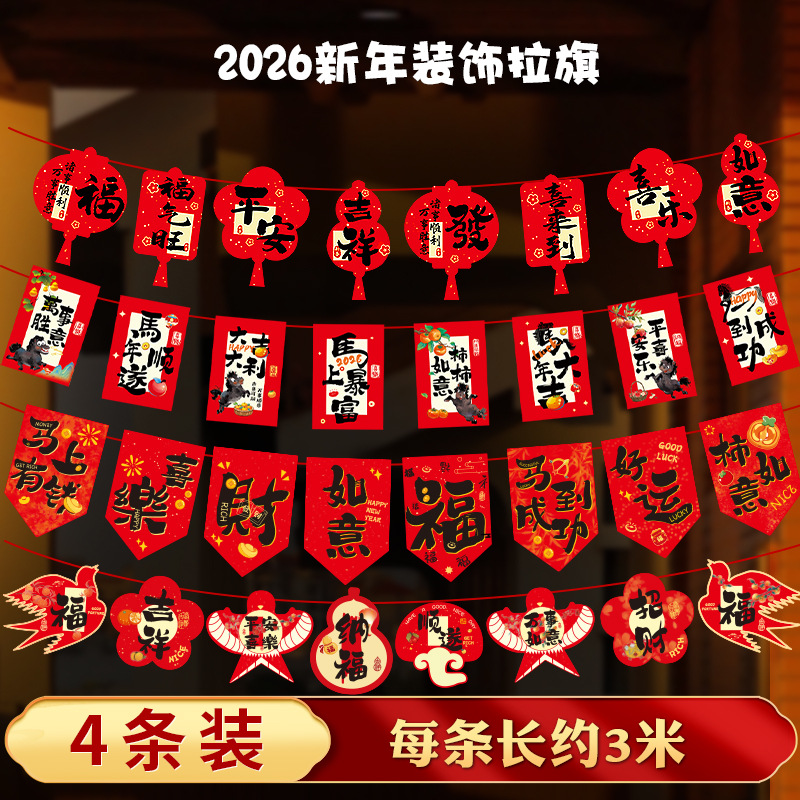 2026马年装饰品拉花挂件春节商场幼儿园拉旗挂饰新年入宅场景布置