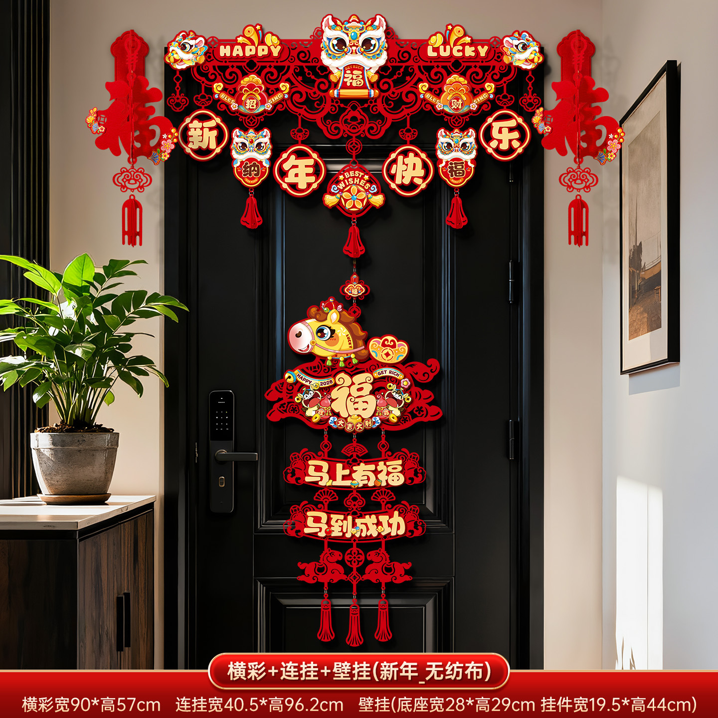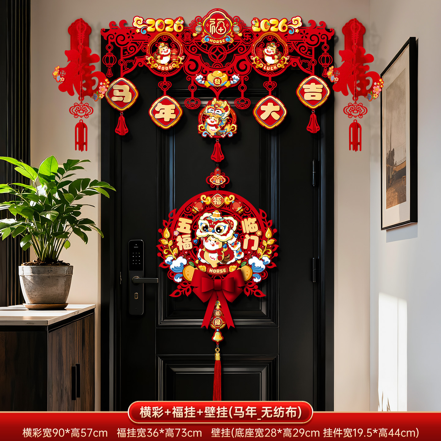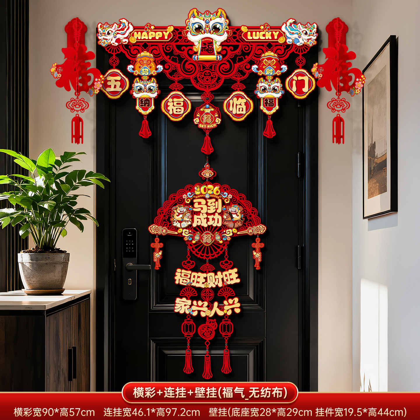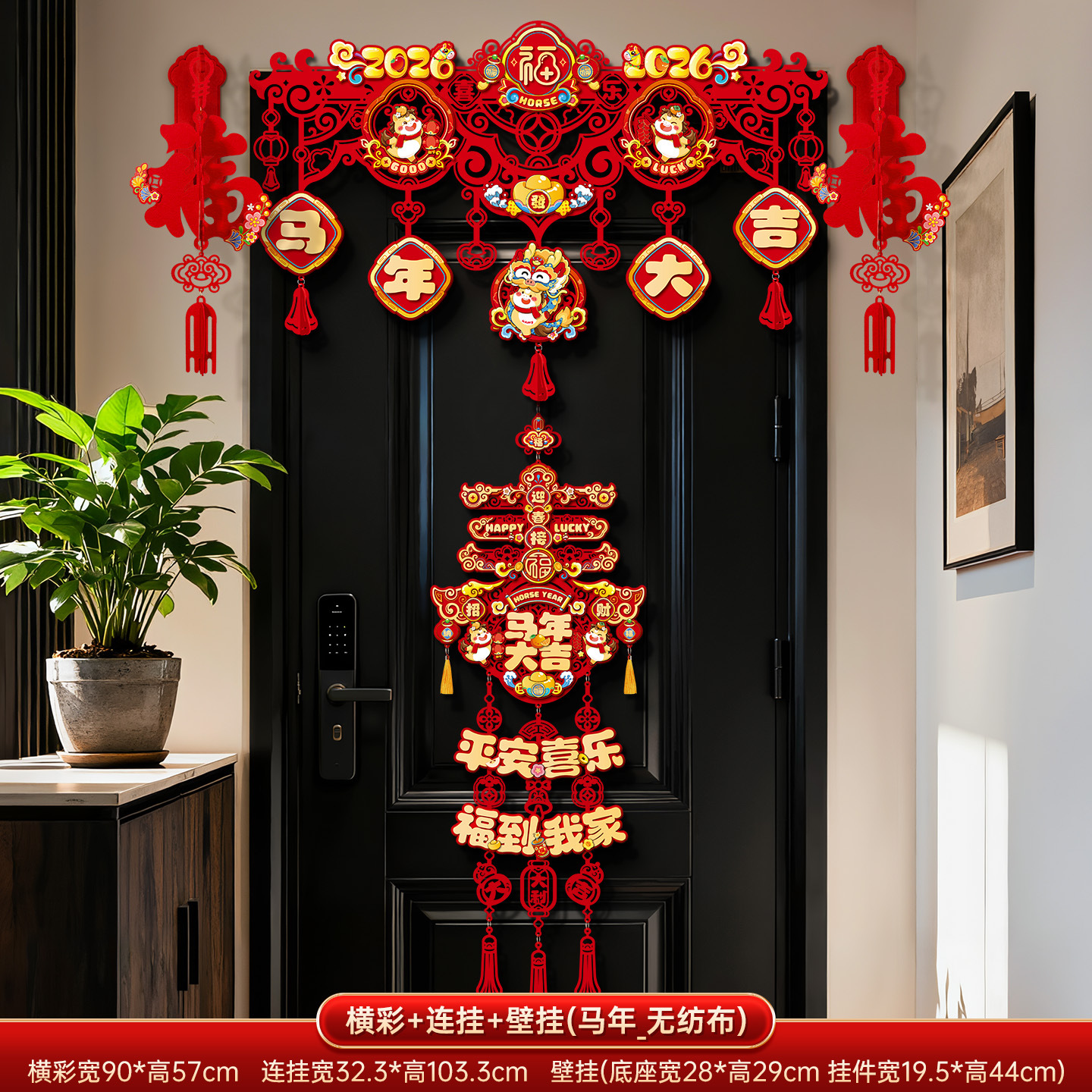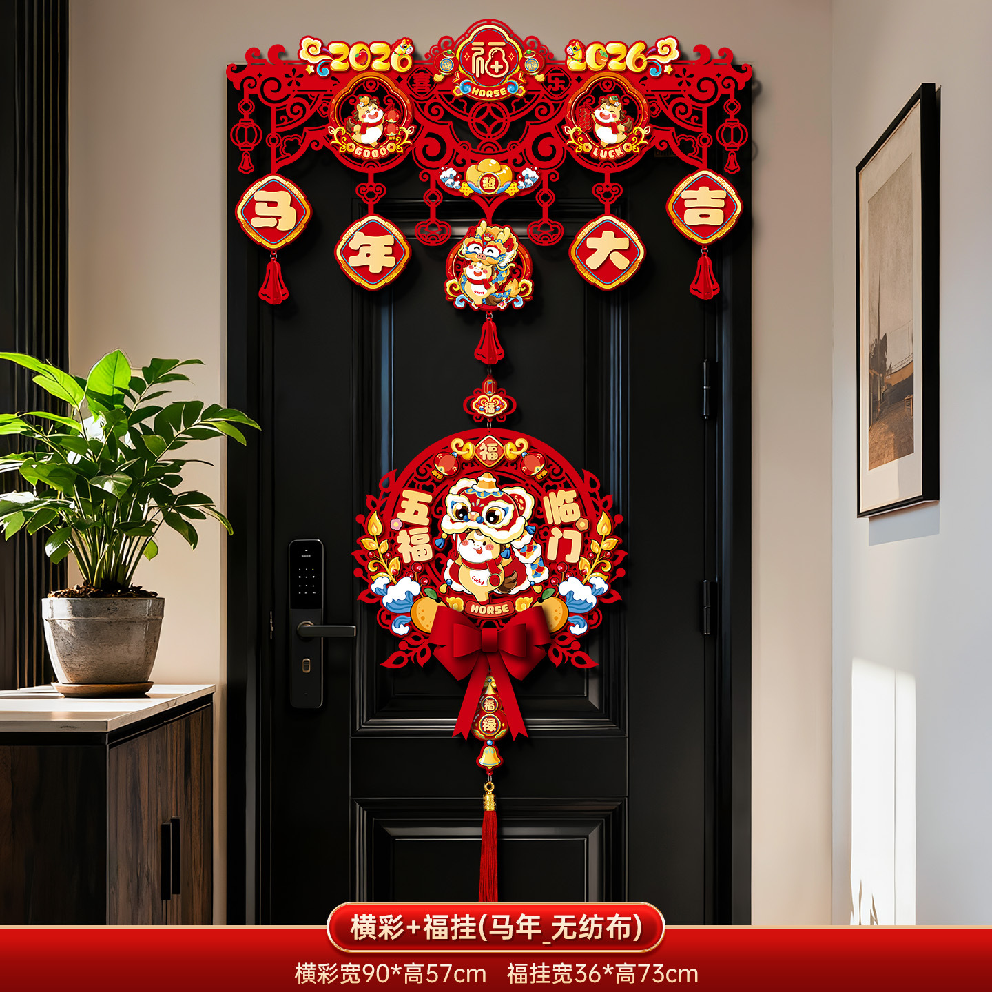 新年装饰马年福字挂件2026新款春节过年入户门帘拉花布置年货挂饰