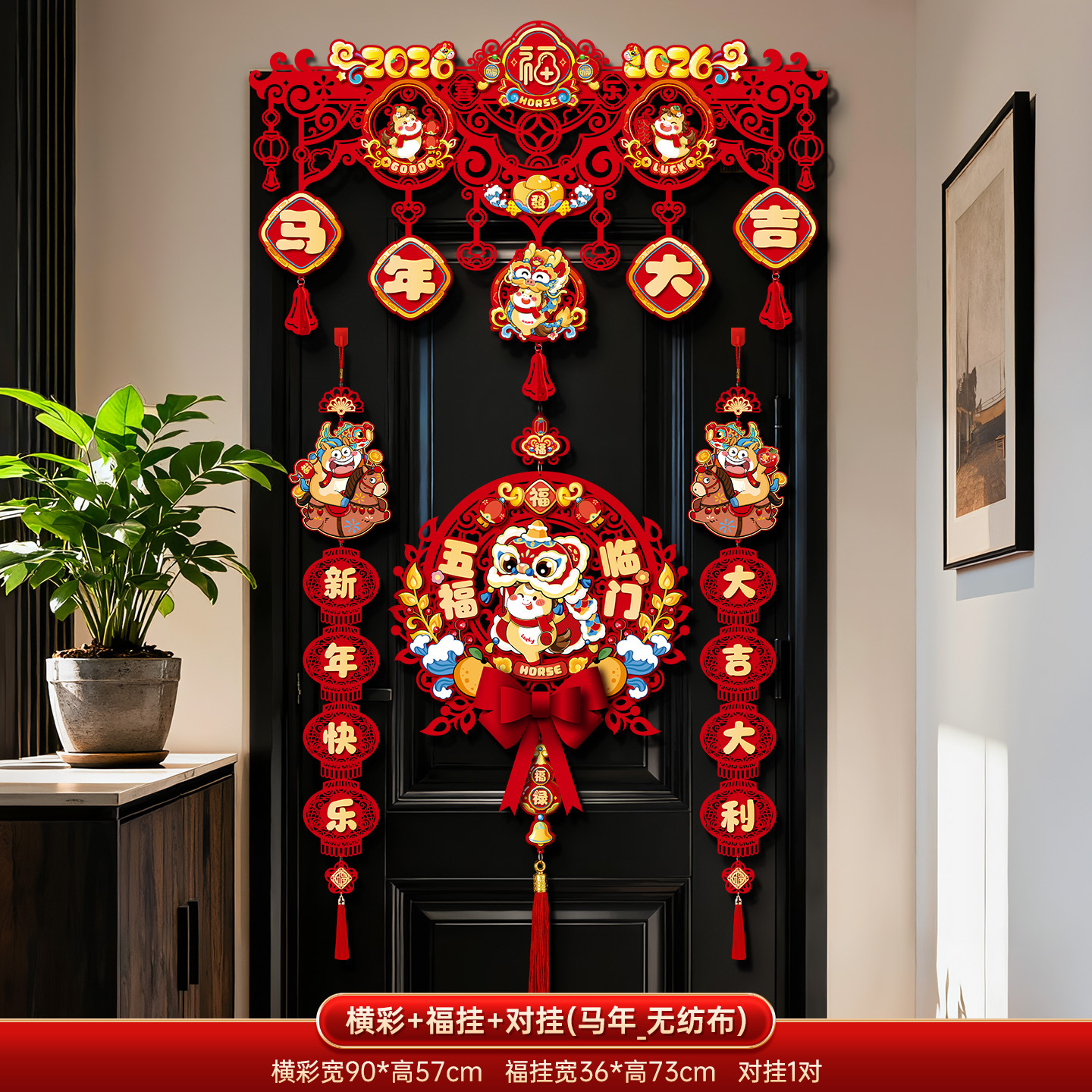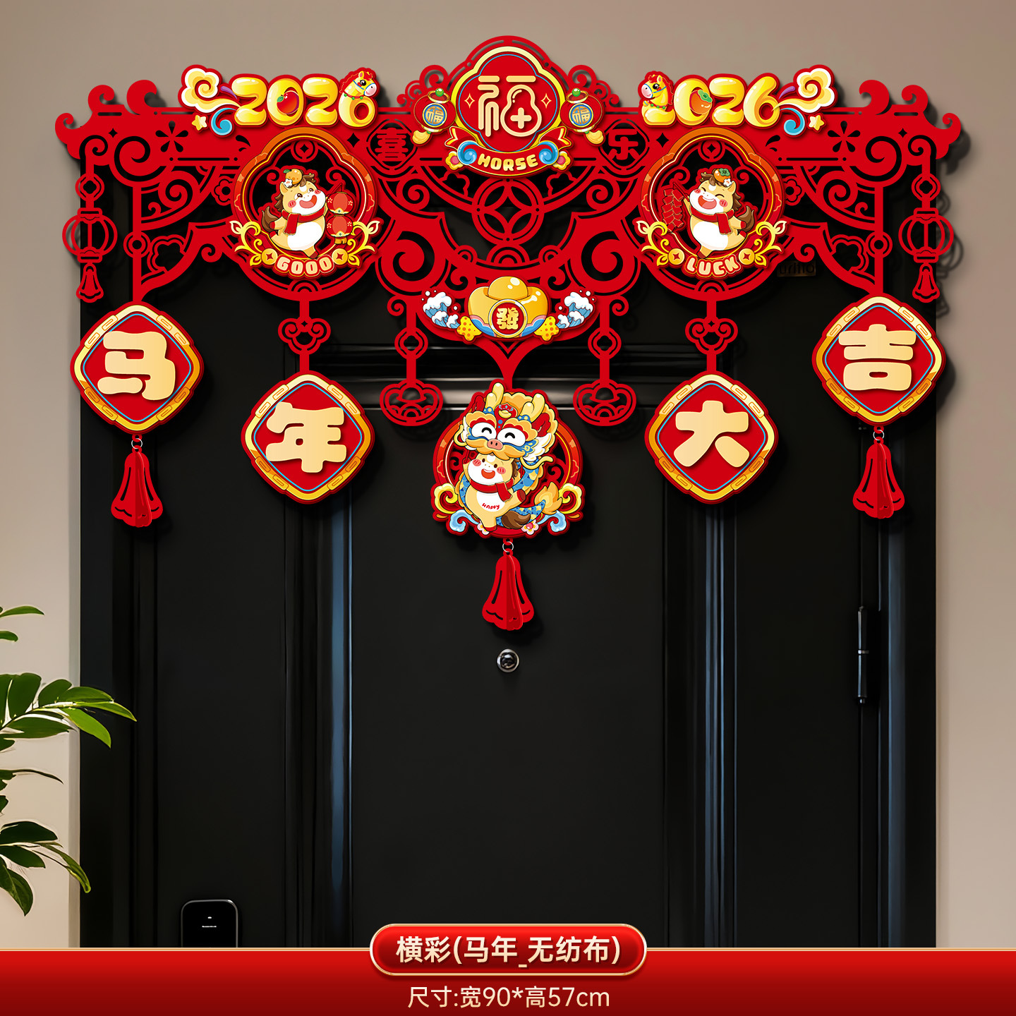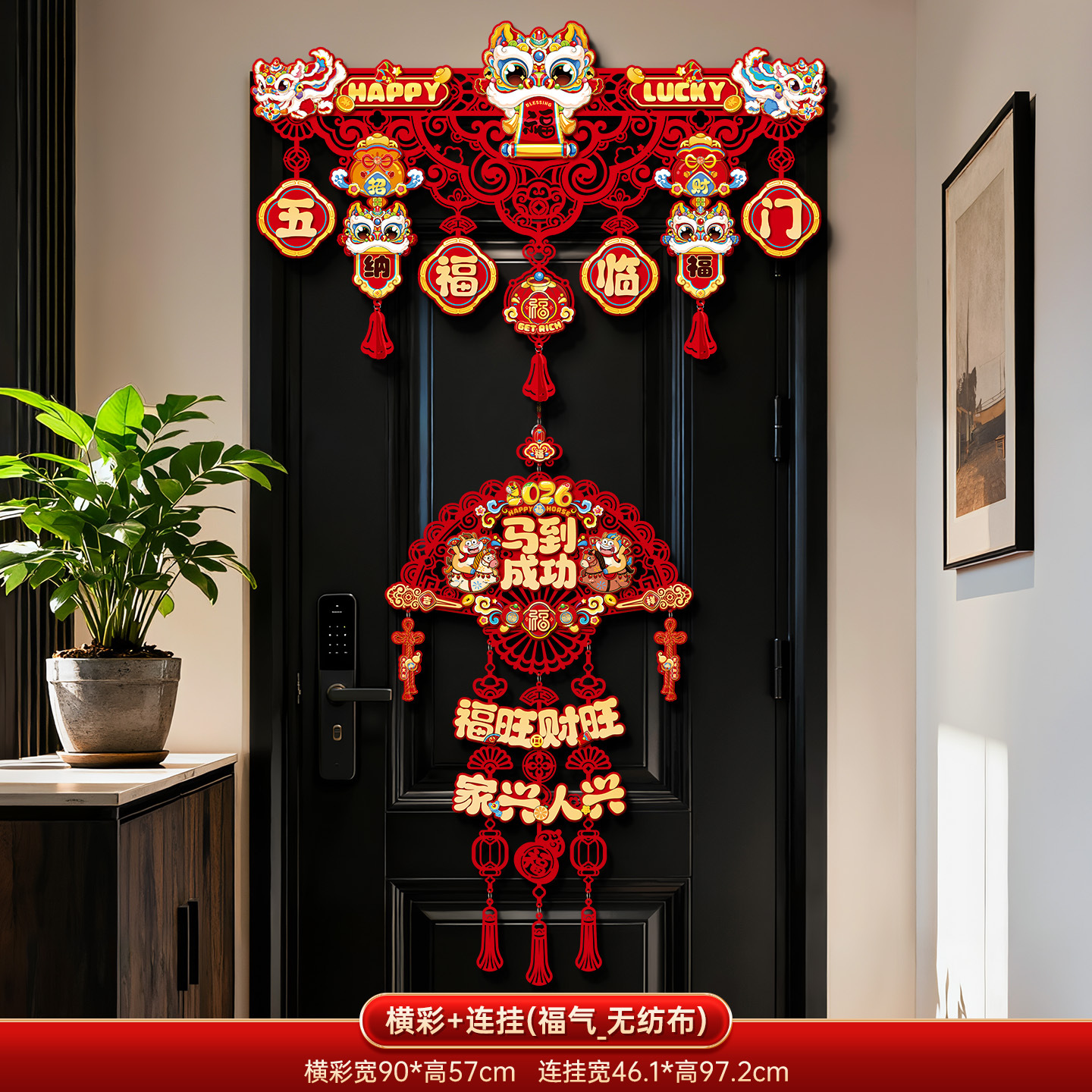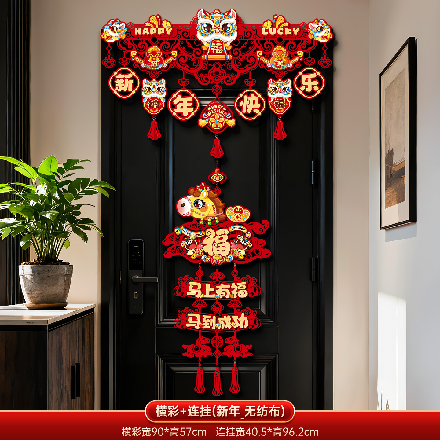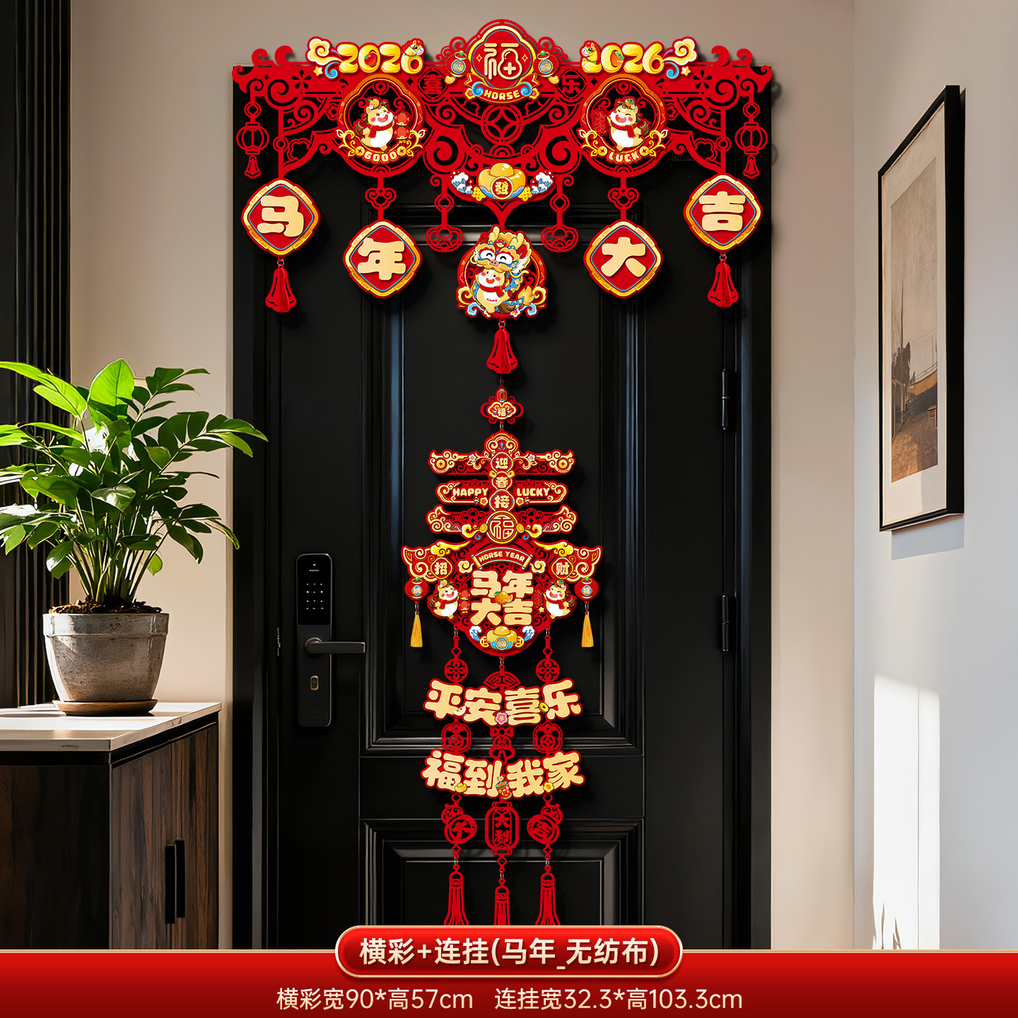 新年装饰马年福字挂件2026新款春节过年入户门帘拉花布置年货挂饰