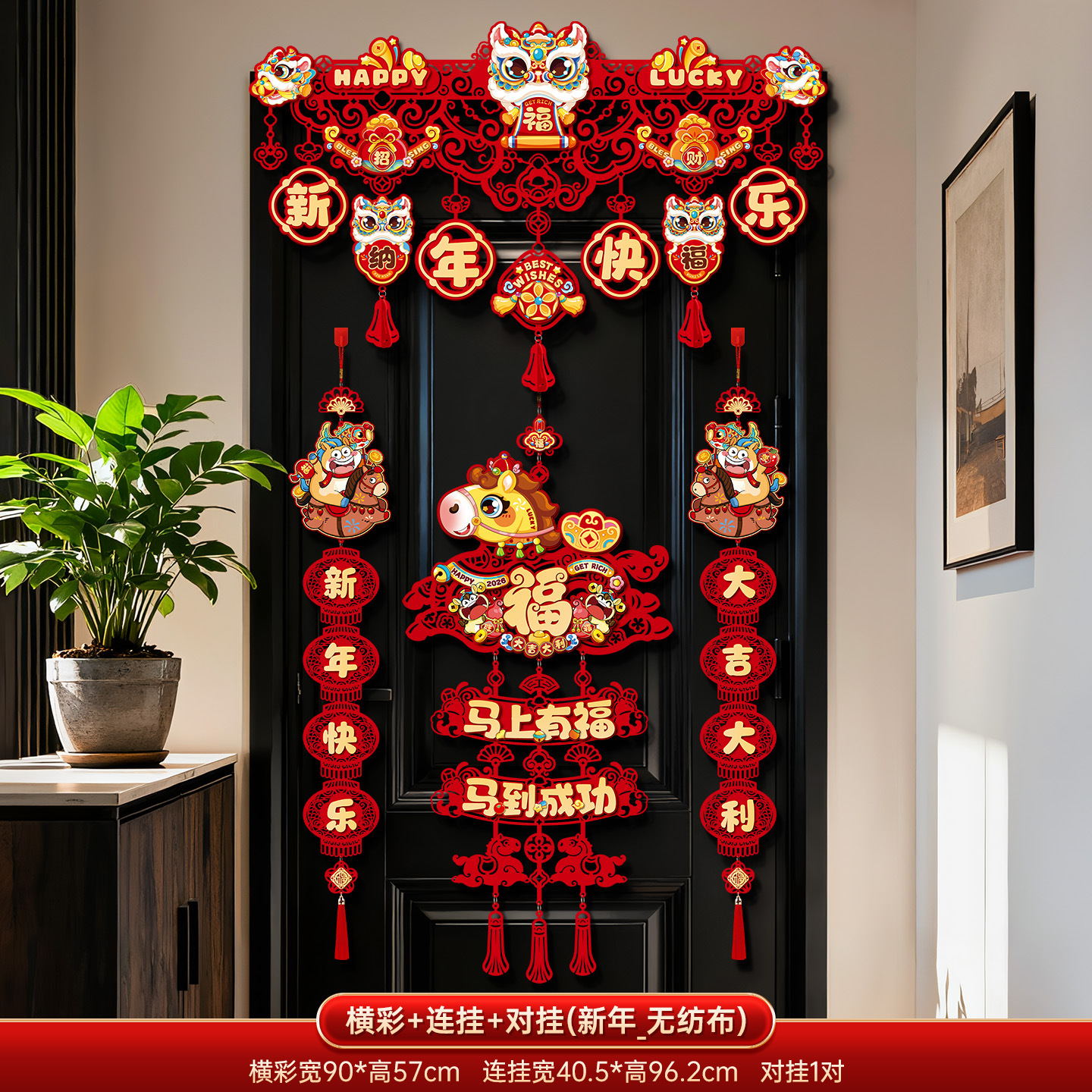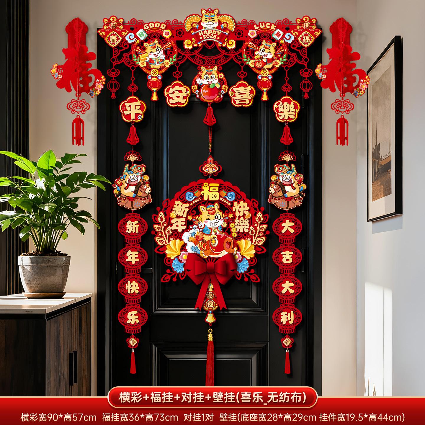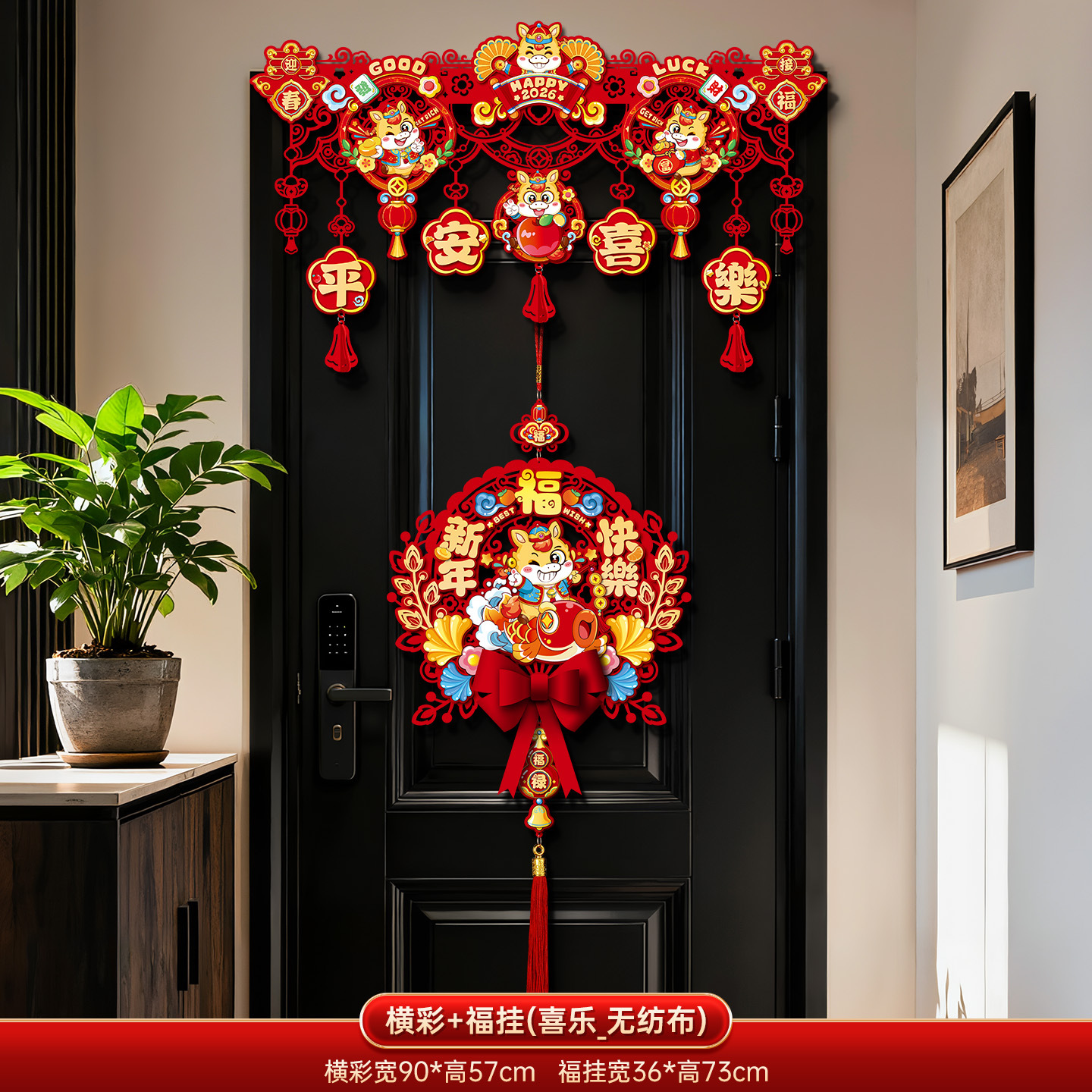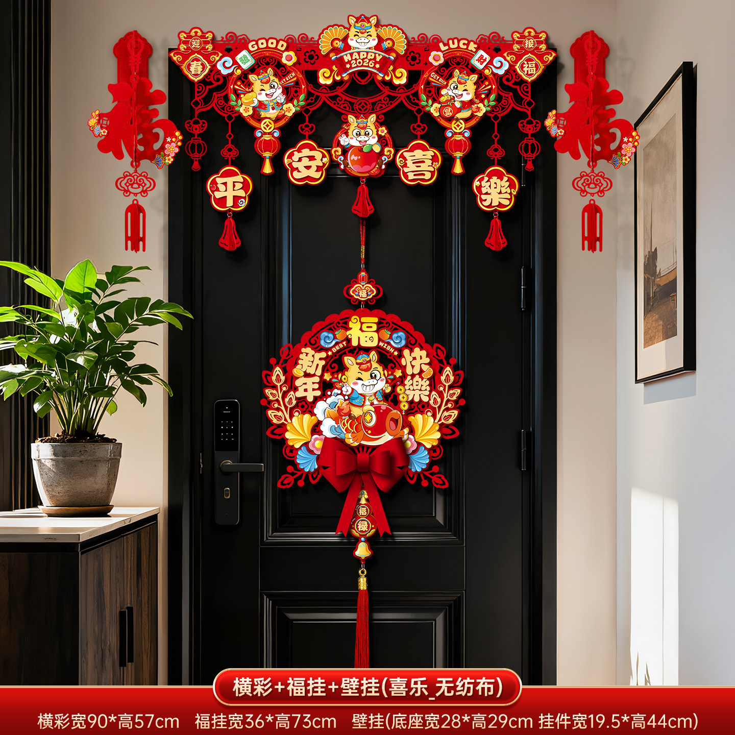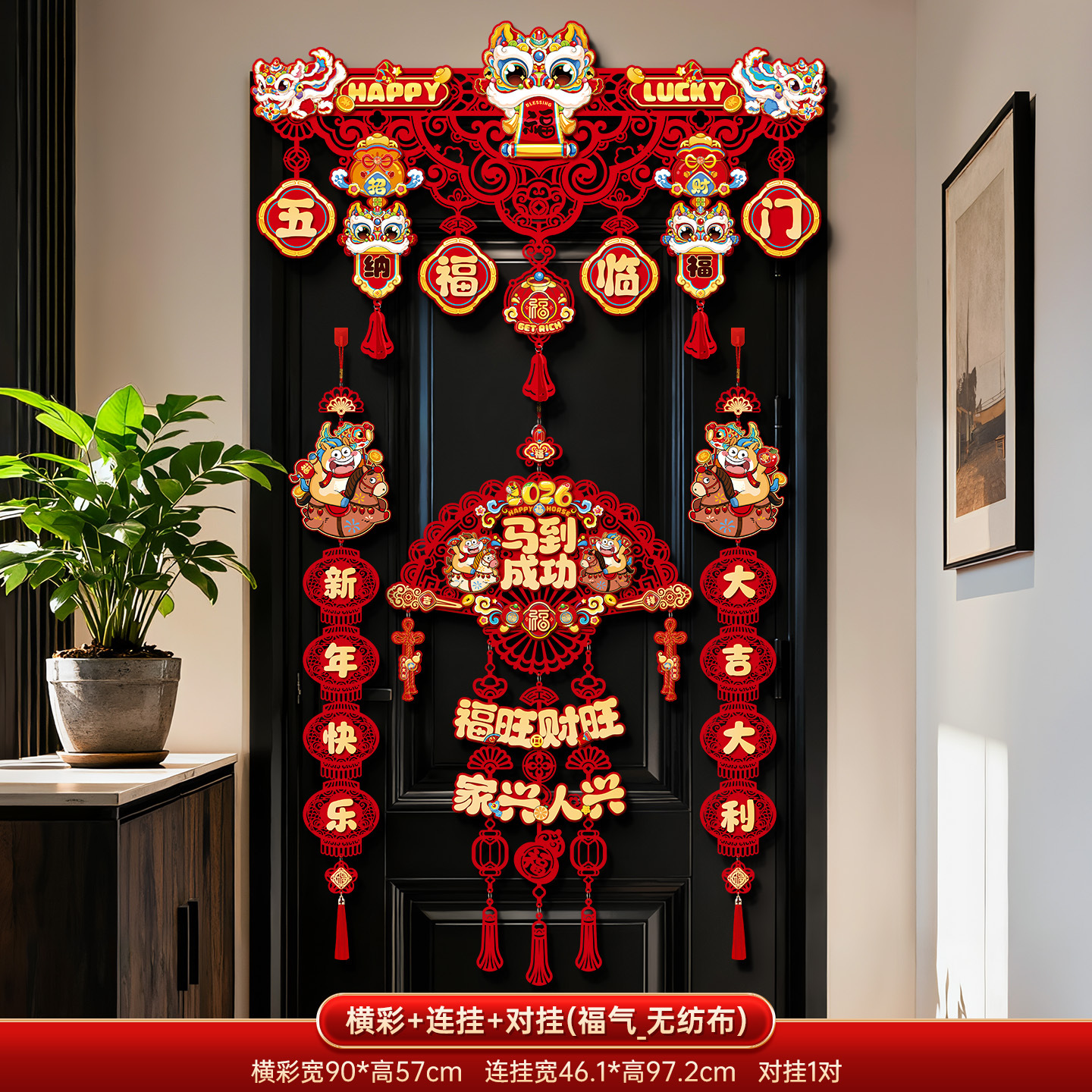 新年装饰马年福字挂件2026新款春节过年入户门帘拉花布置年货挂饰