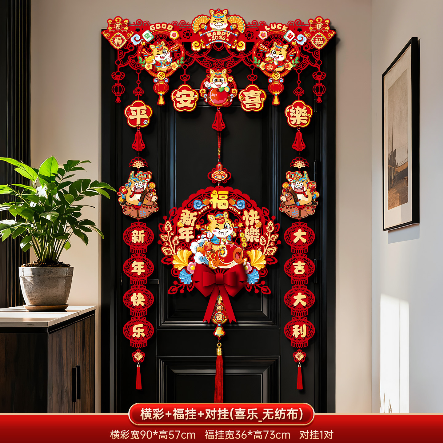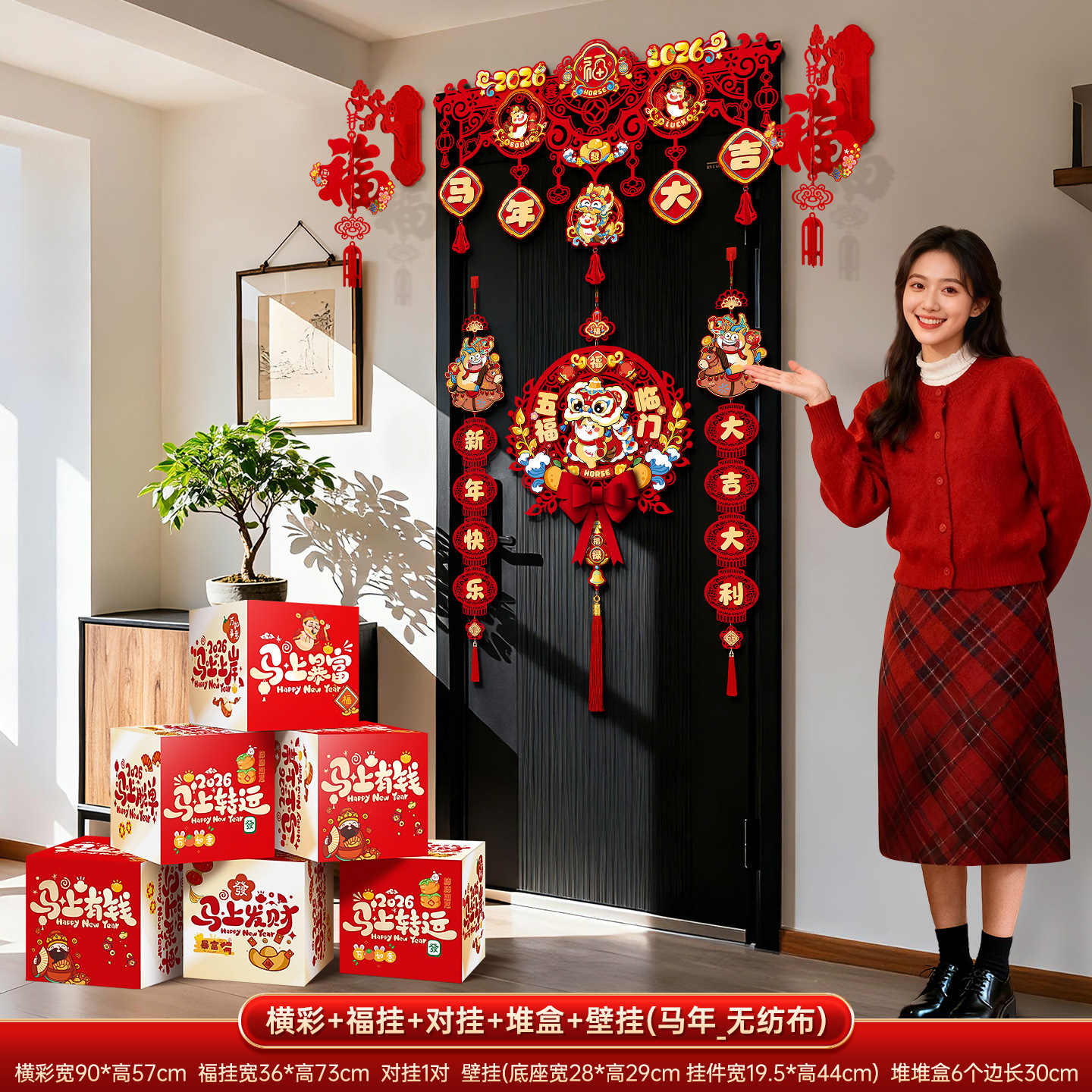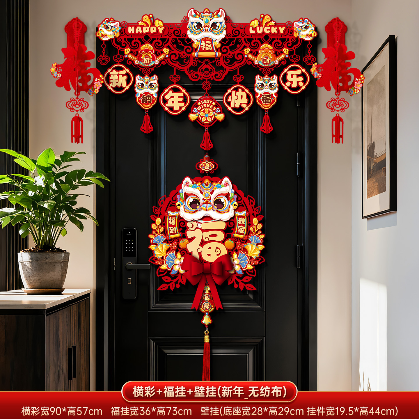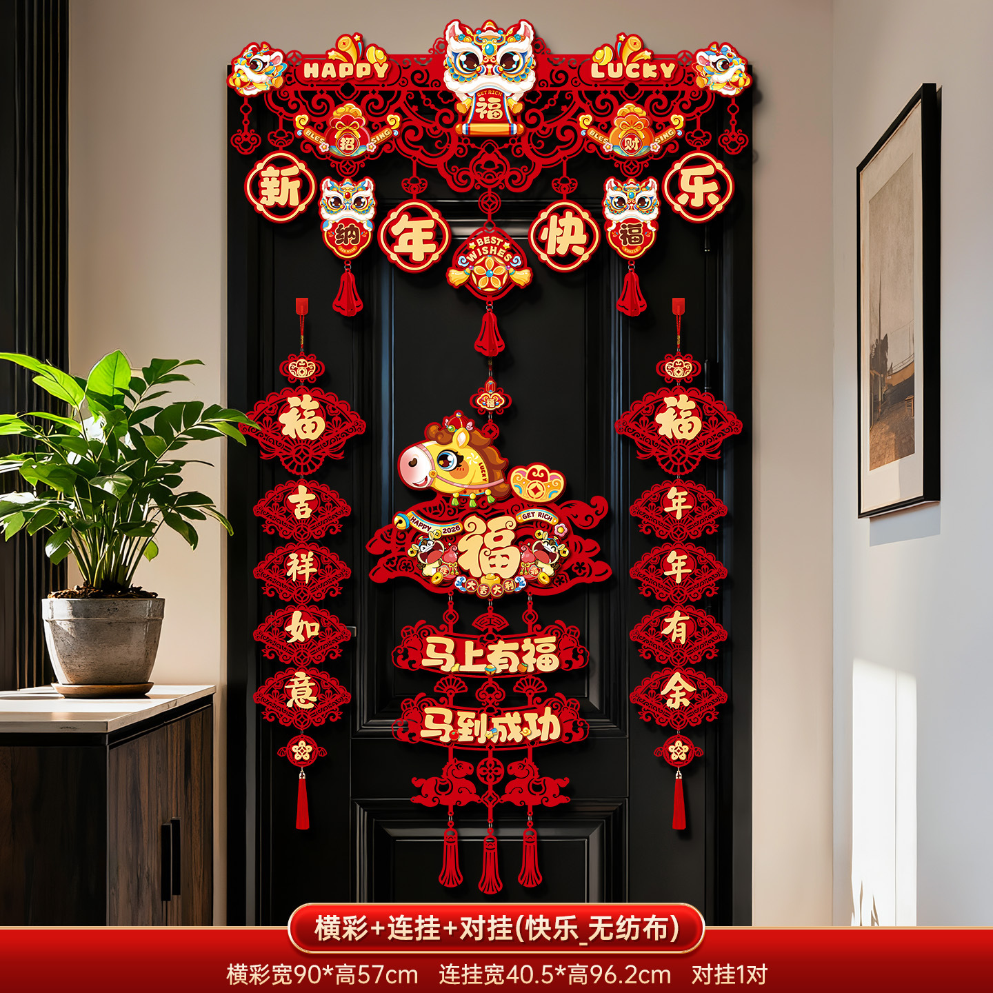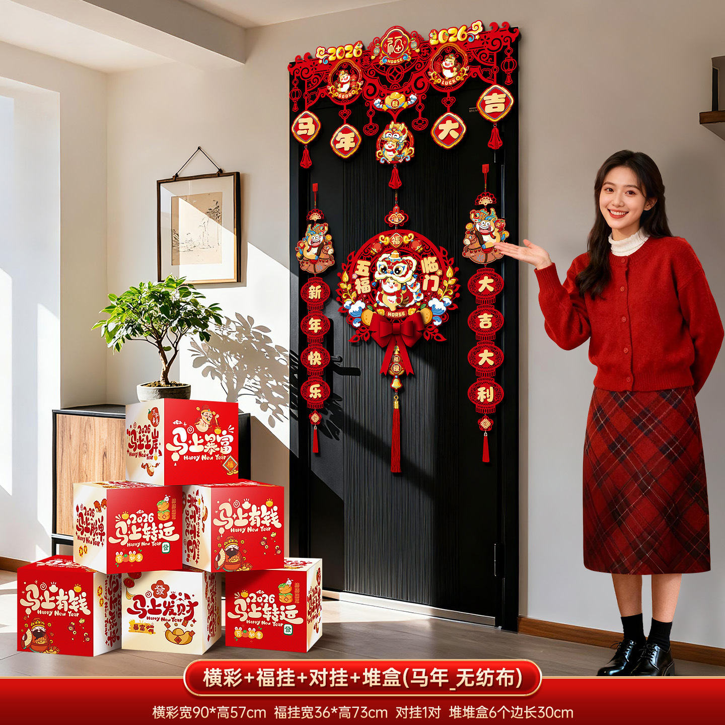 新年装饰马年福字挂件2026新款春节过年入户门帘拉花布置年货挂饰
