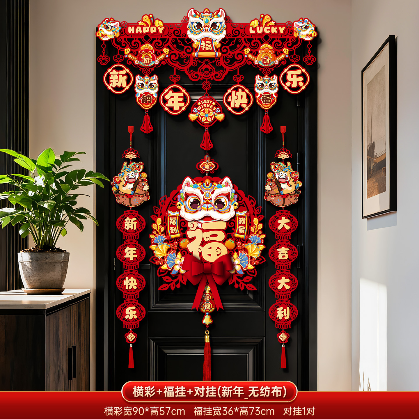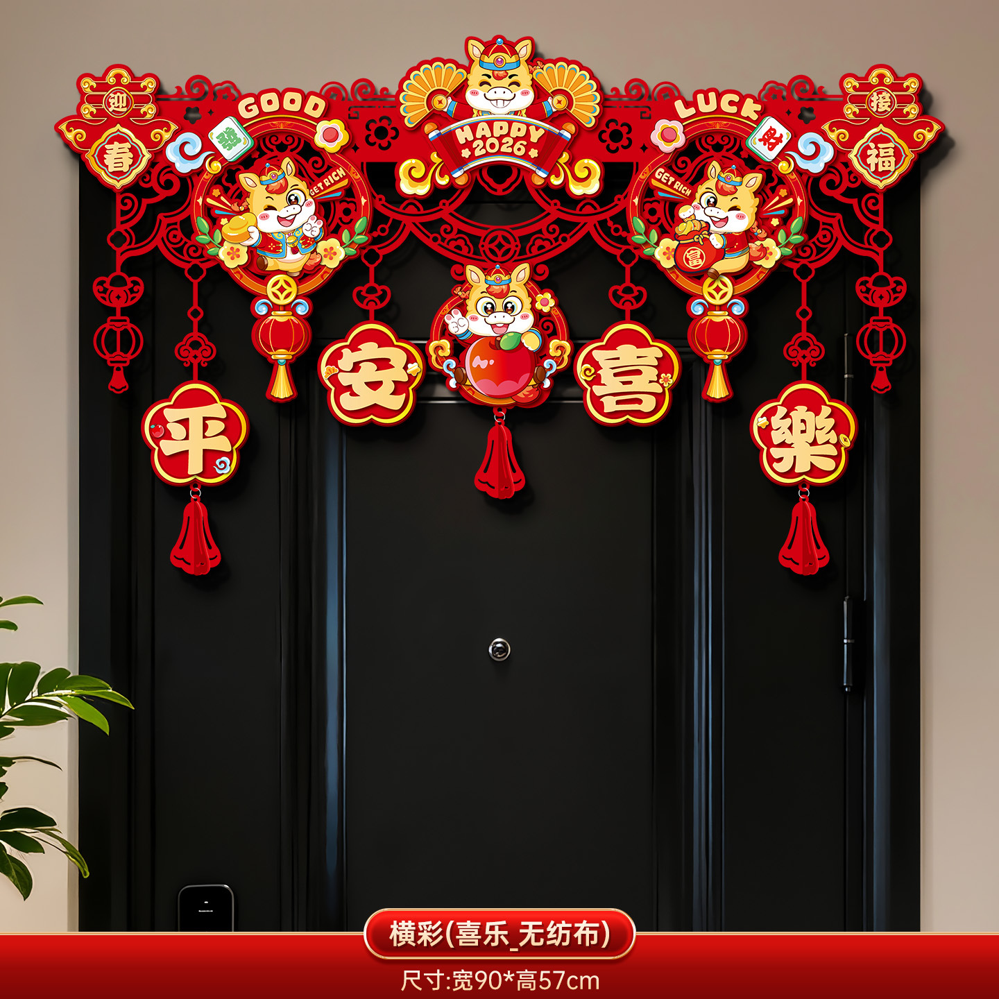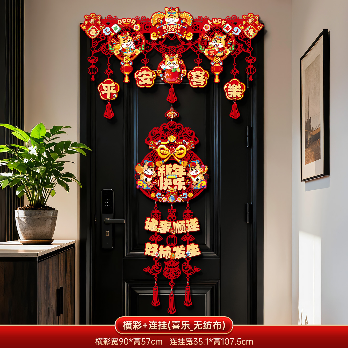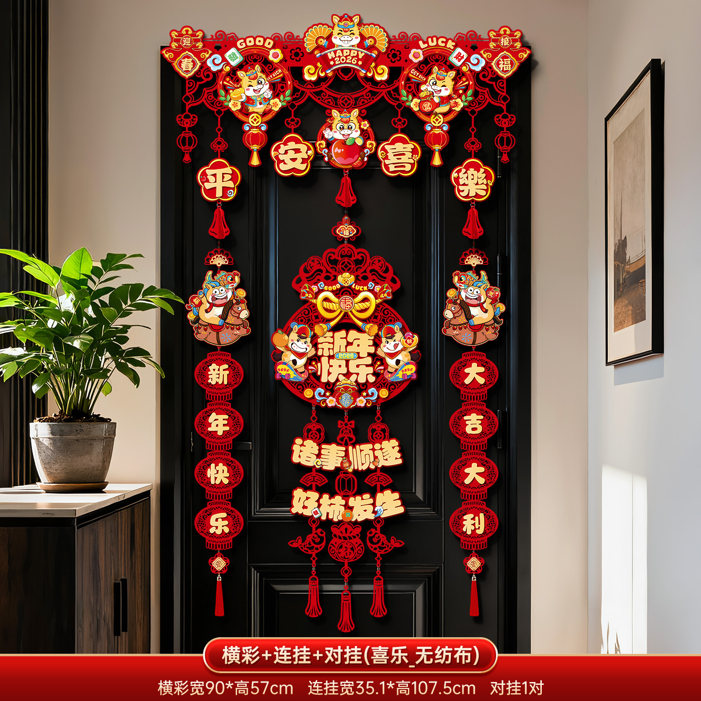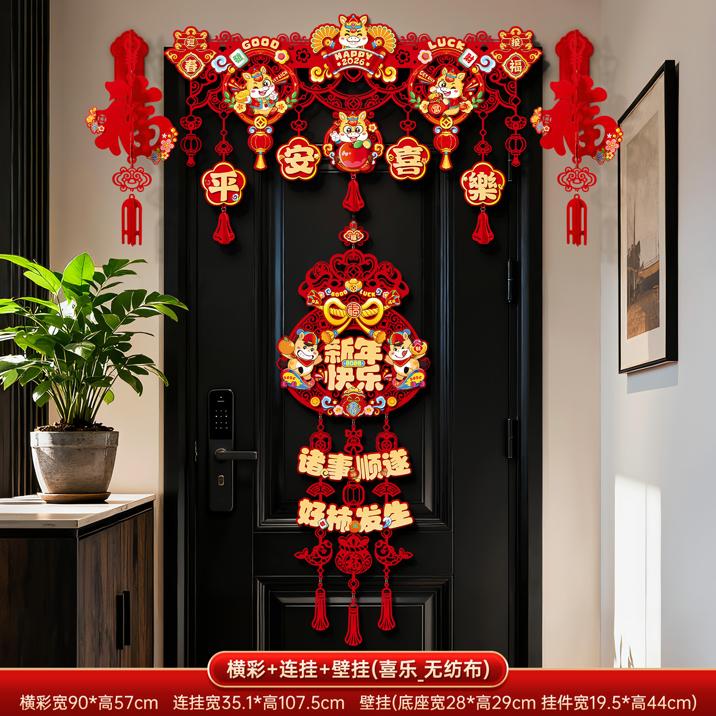 新年装饰马年福字挂件2026新款春节过年入户门帘拉花布置年货挂饰