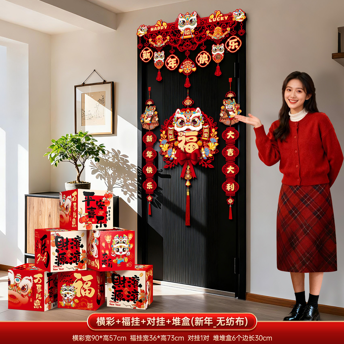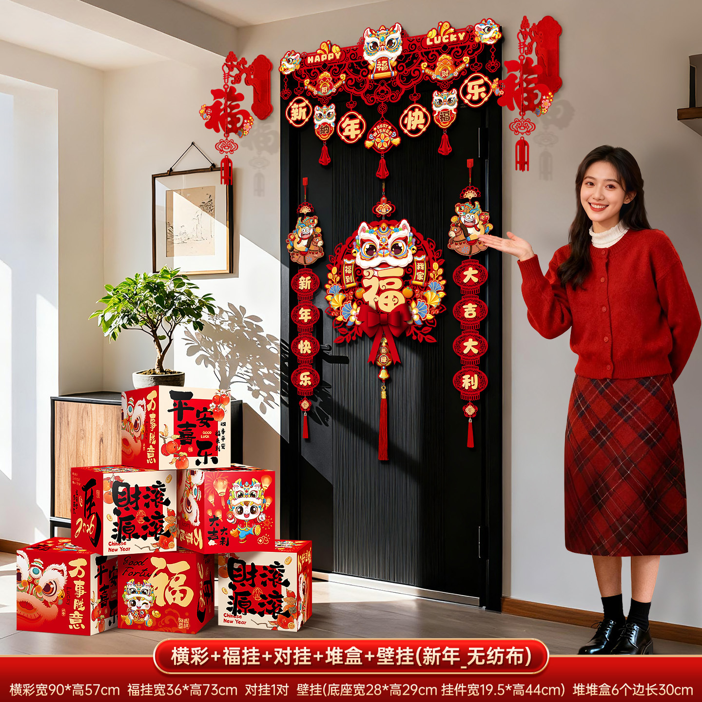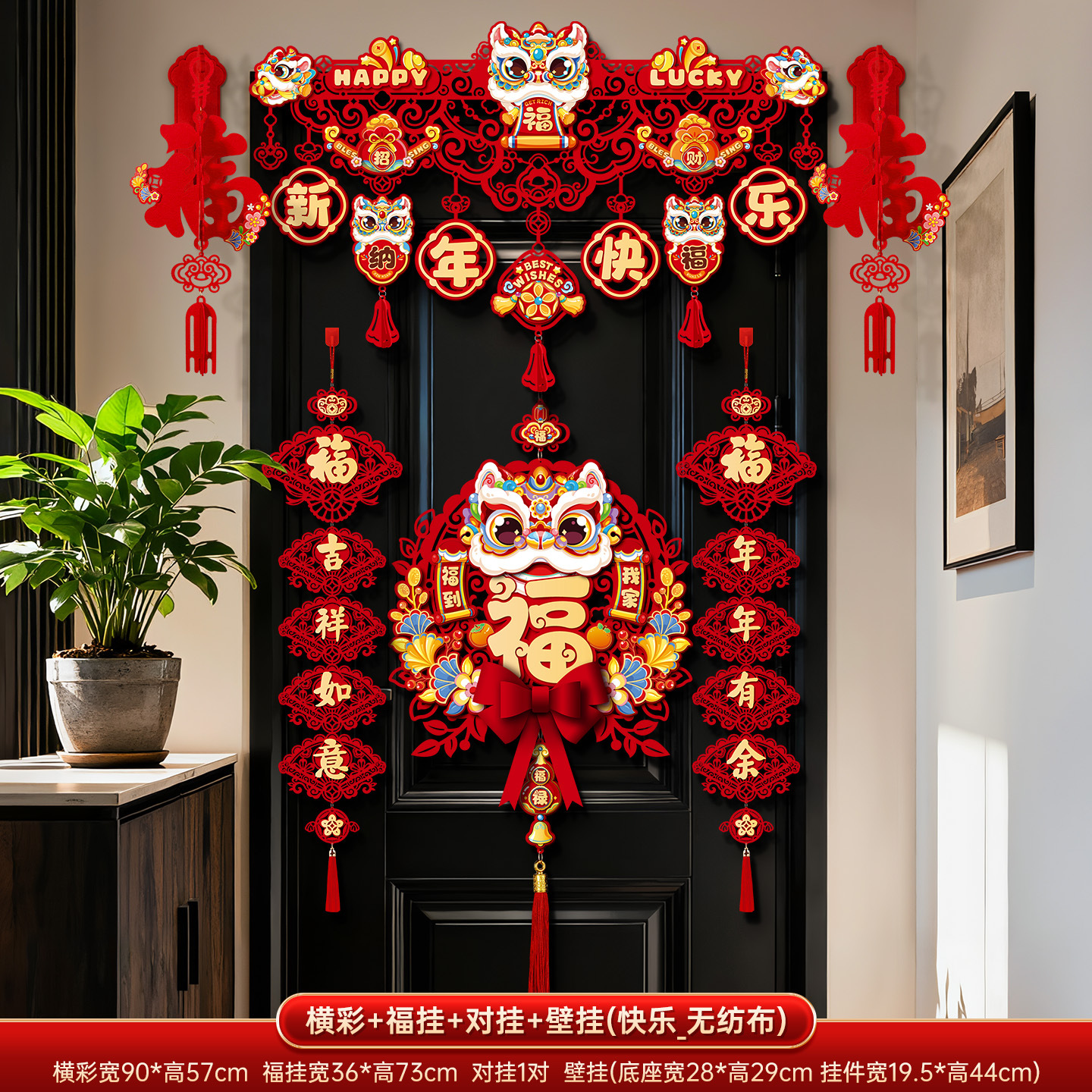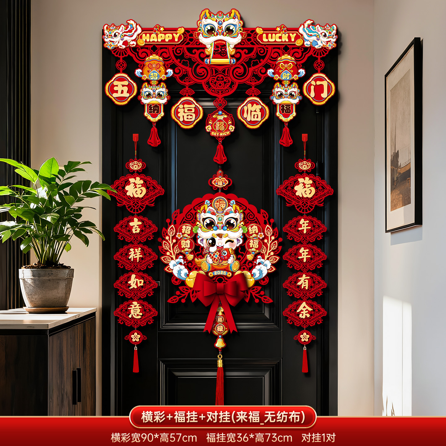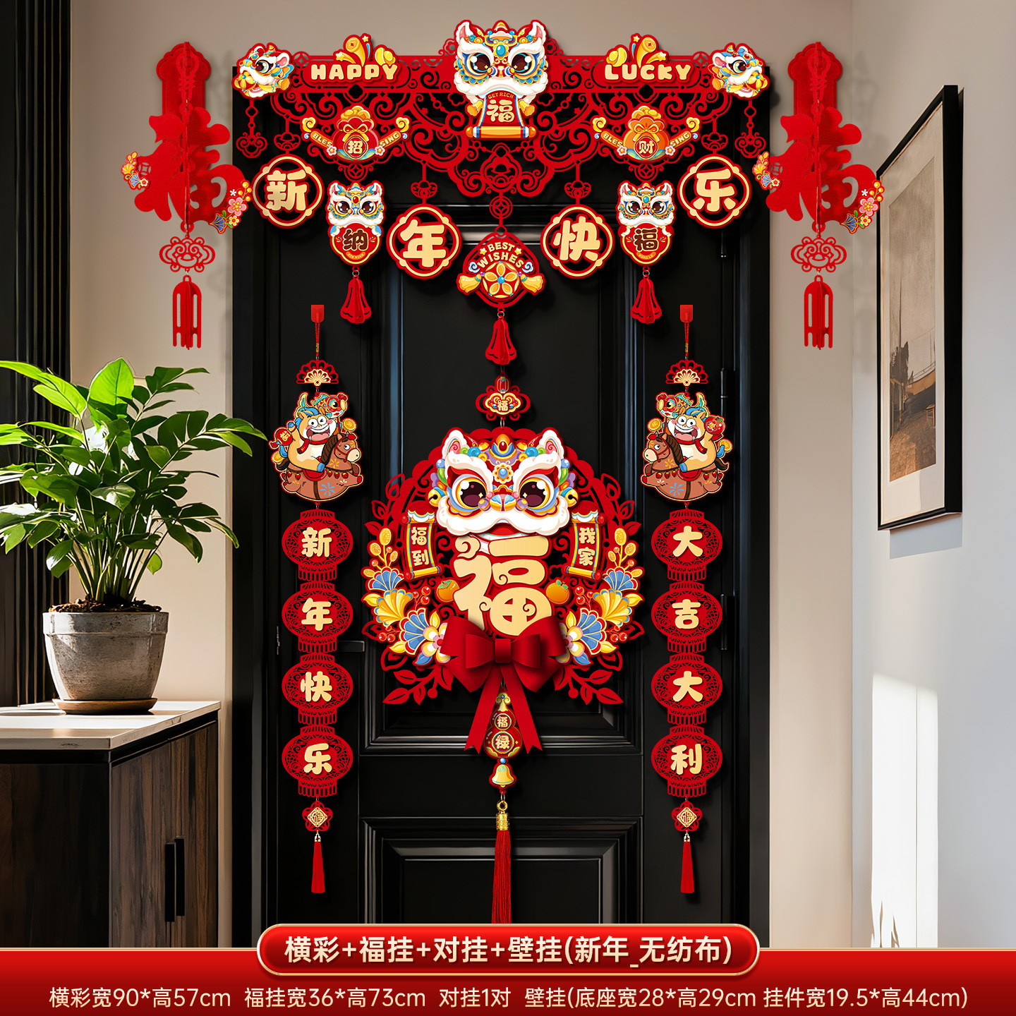 新年装饰马年福字挂件2026新款春节过年入户门帘拉花布置年货挂饰