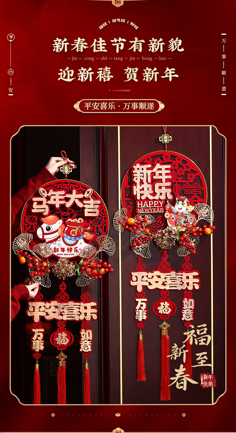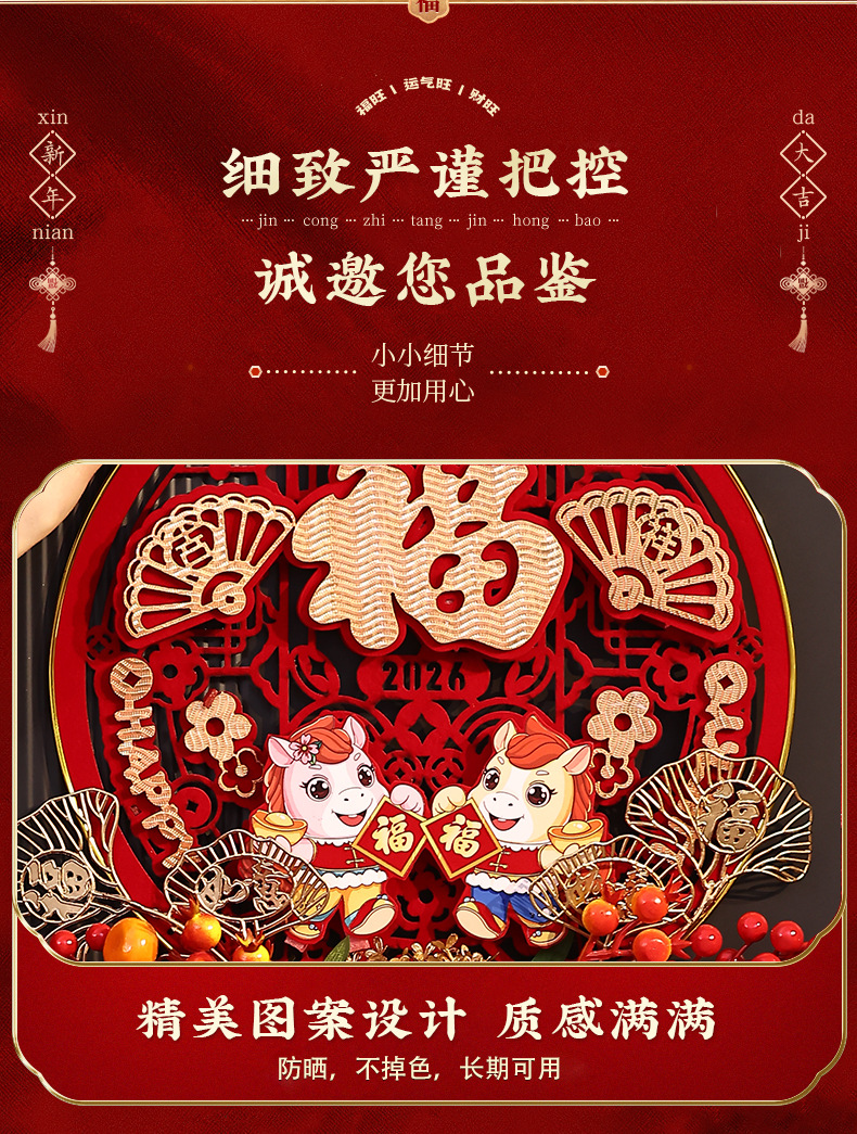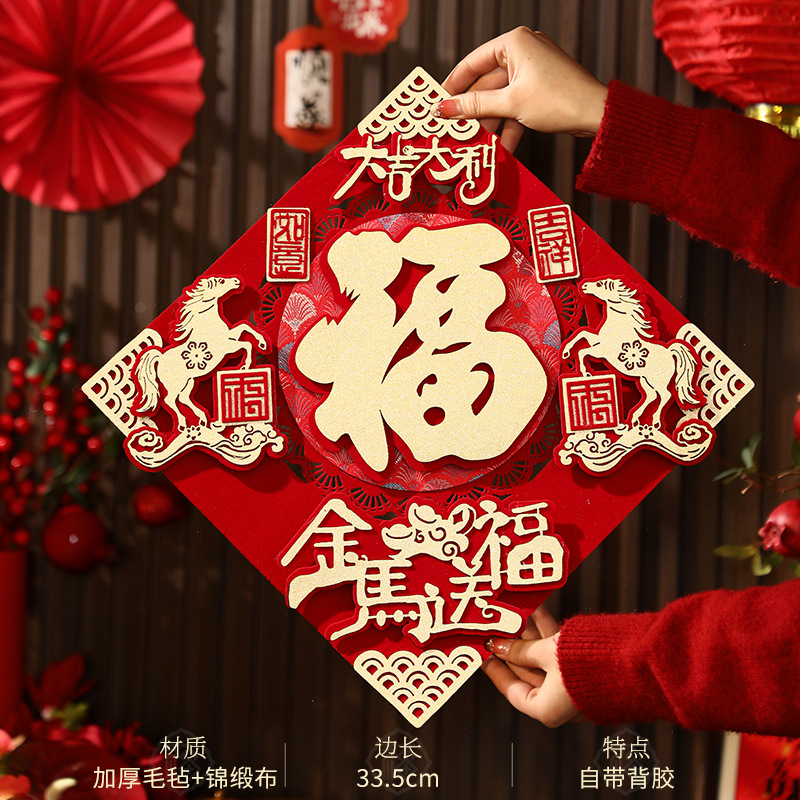 2026新款立体福字挂饰马年春节过年入户门挂客厅新年挂件卡通装饰