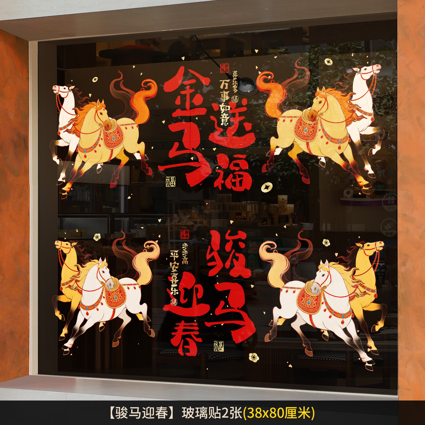 2026新年快乐春节橱窗玻璃贴新年马年装饰用品静电贴过年玻璃贴纸