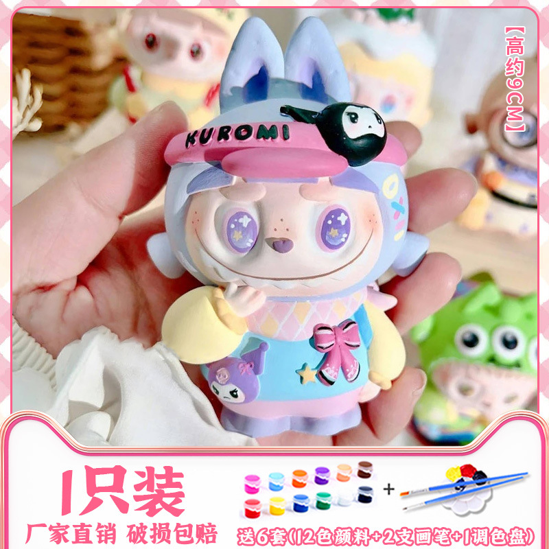 拉布布香薰石膏娃娃diy手工涂鸦涂色幼儿园摆摊涂鸦玩批发labubu