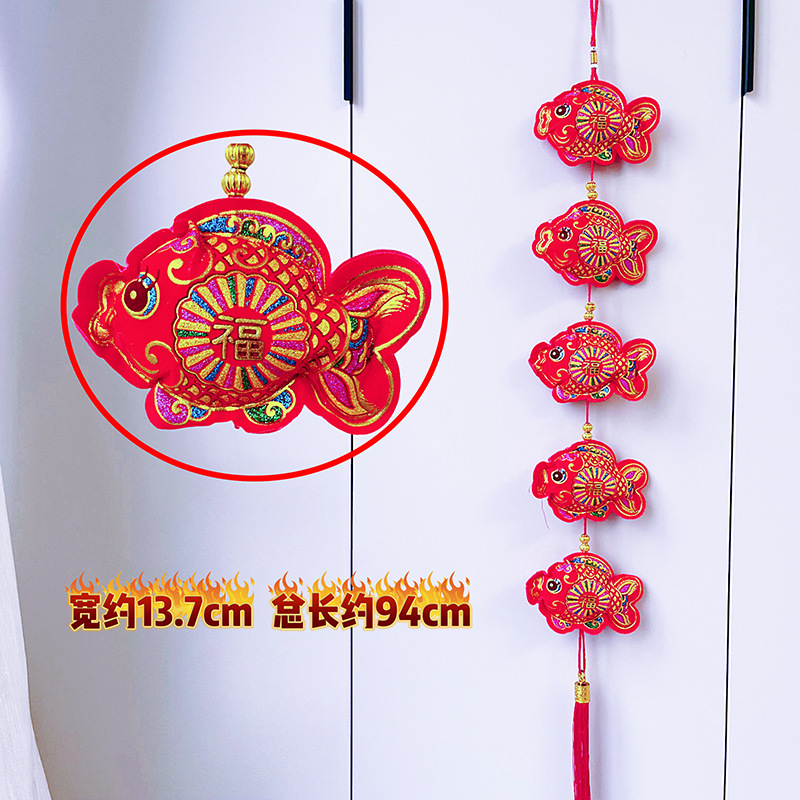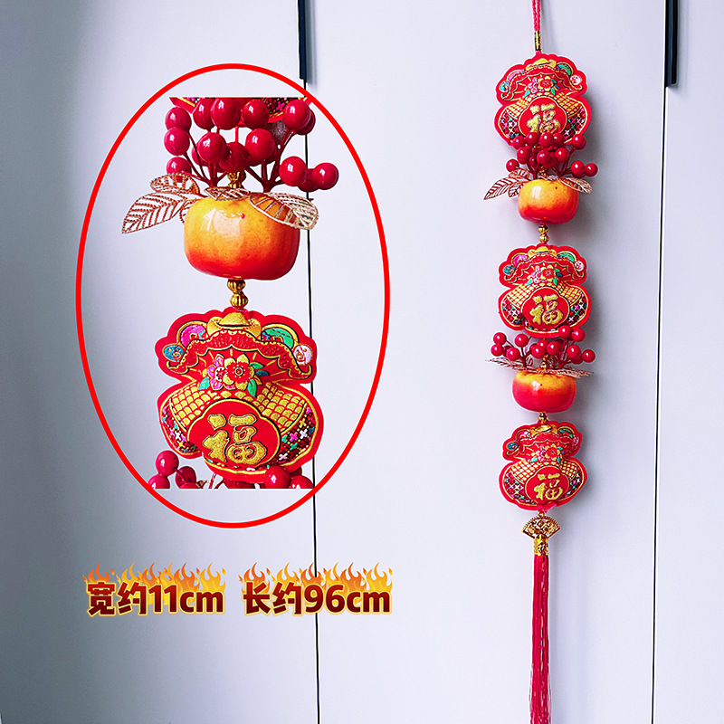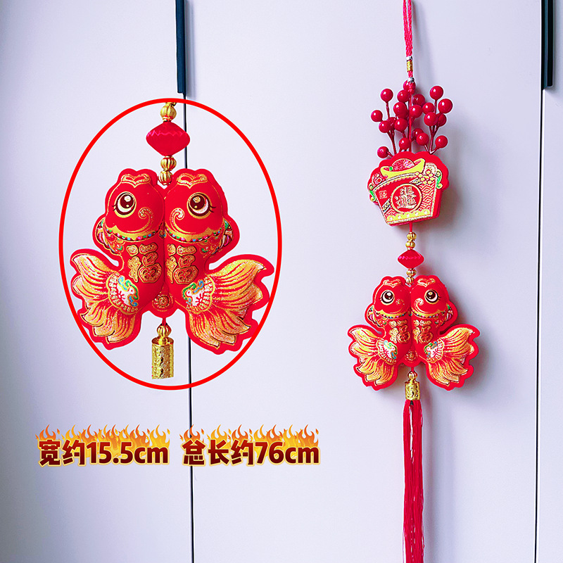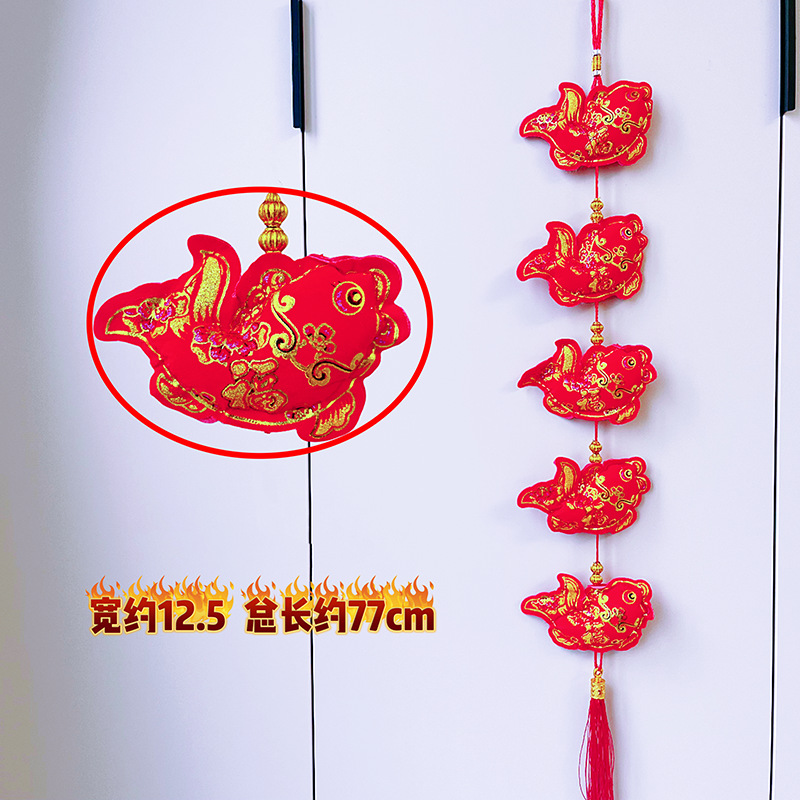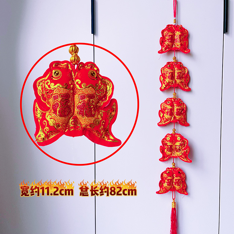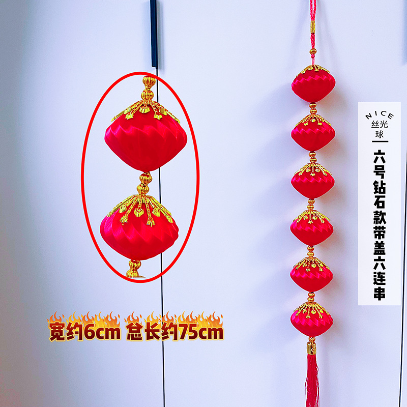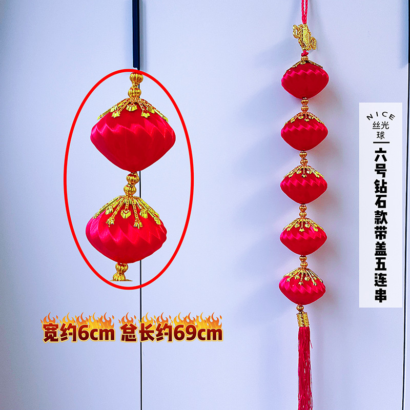 2026马年红果五连串丝光球挂件批发双鱼钱袋挂串春节装饰新年挂串