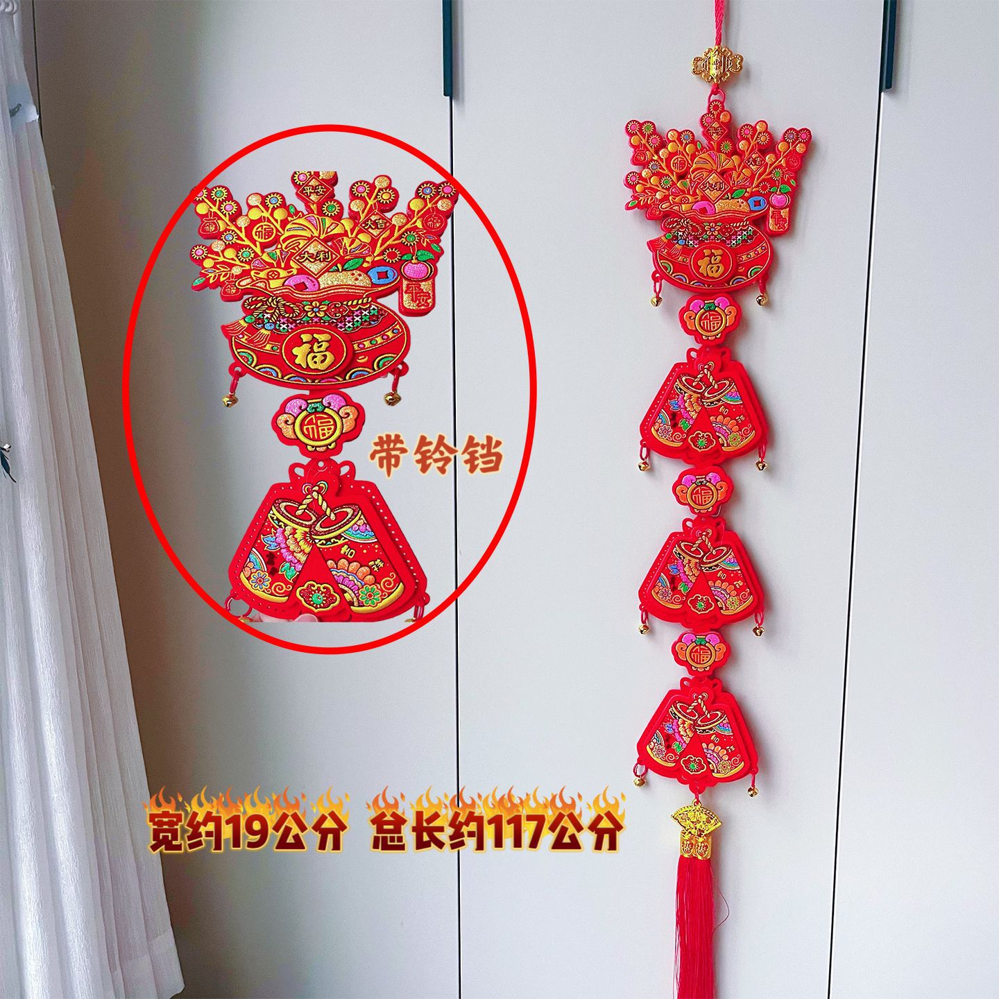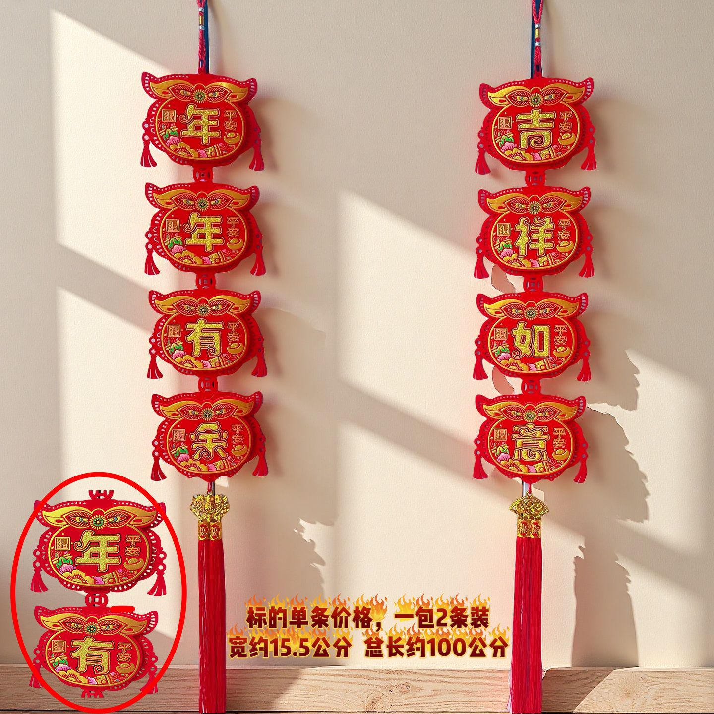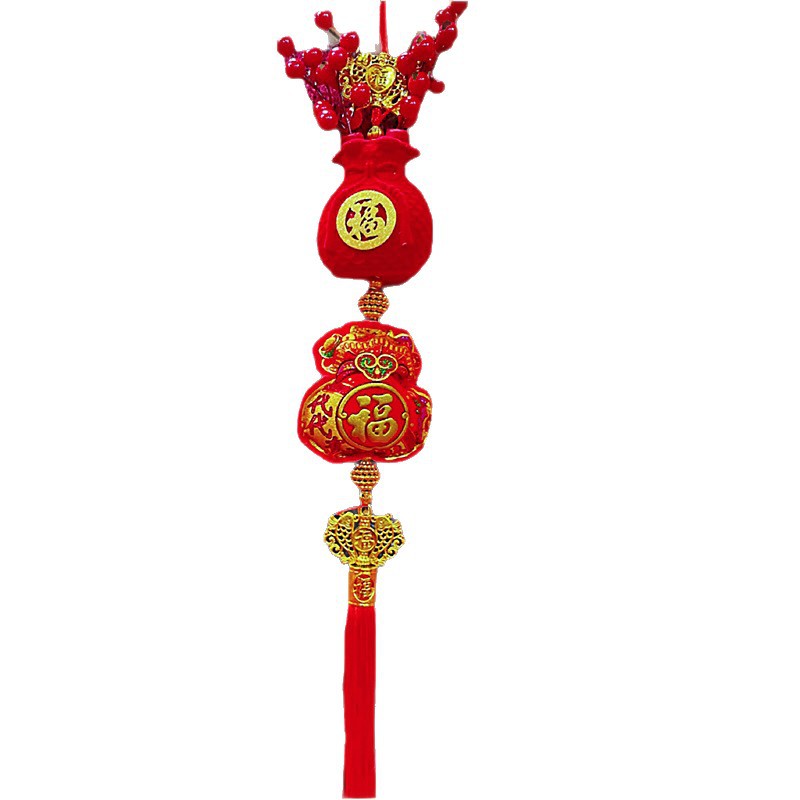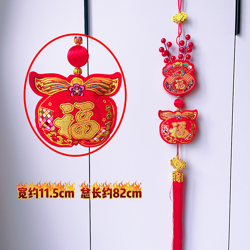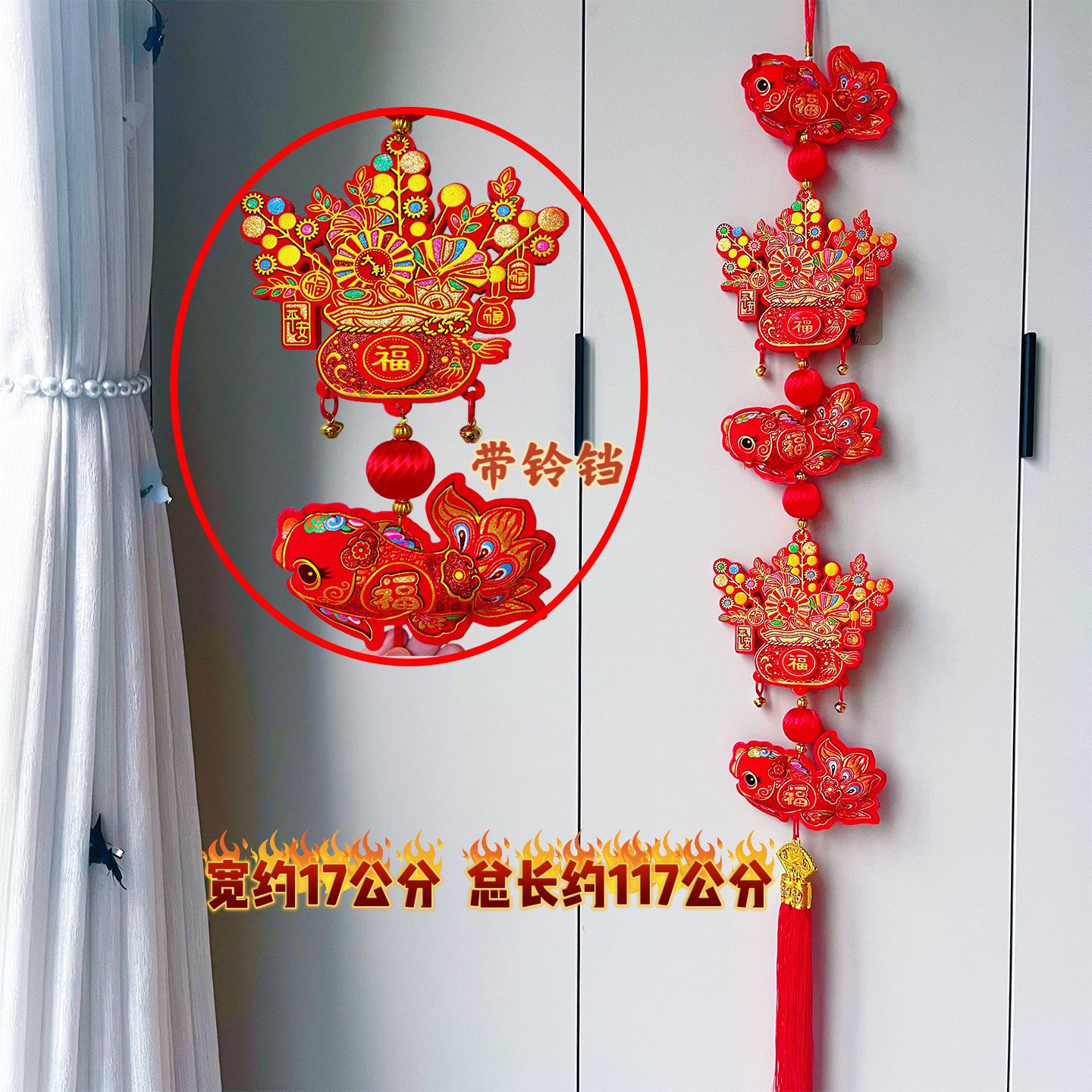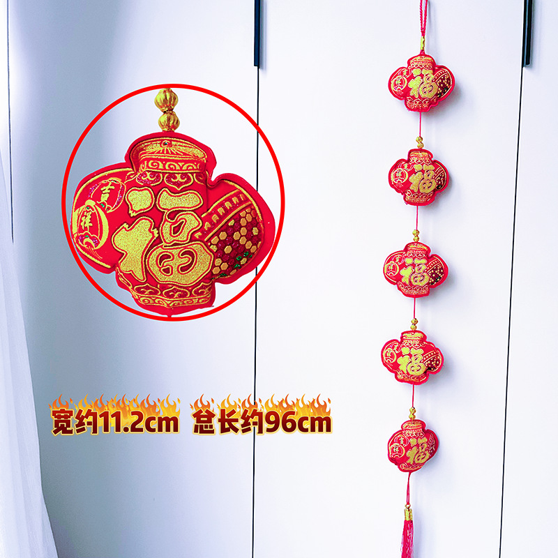 2026马年红果五连串丝光球挂件批发双鱼钱袋挂串春节装饰新年挂串