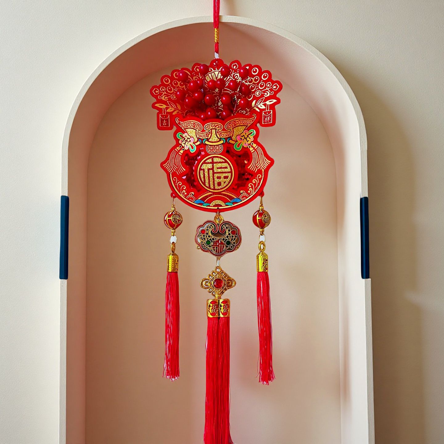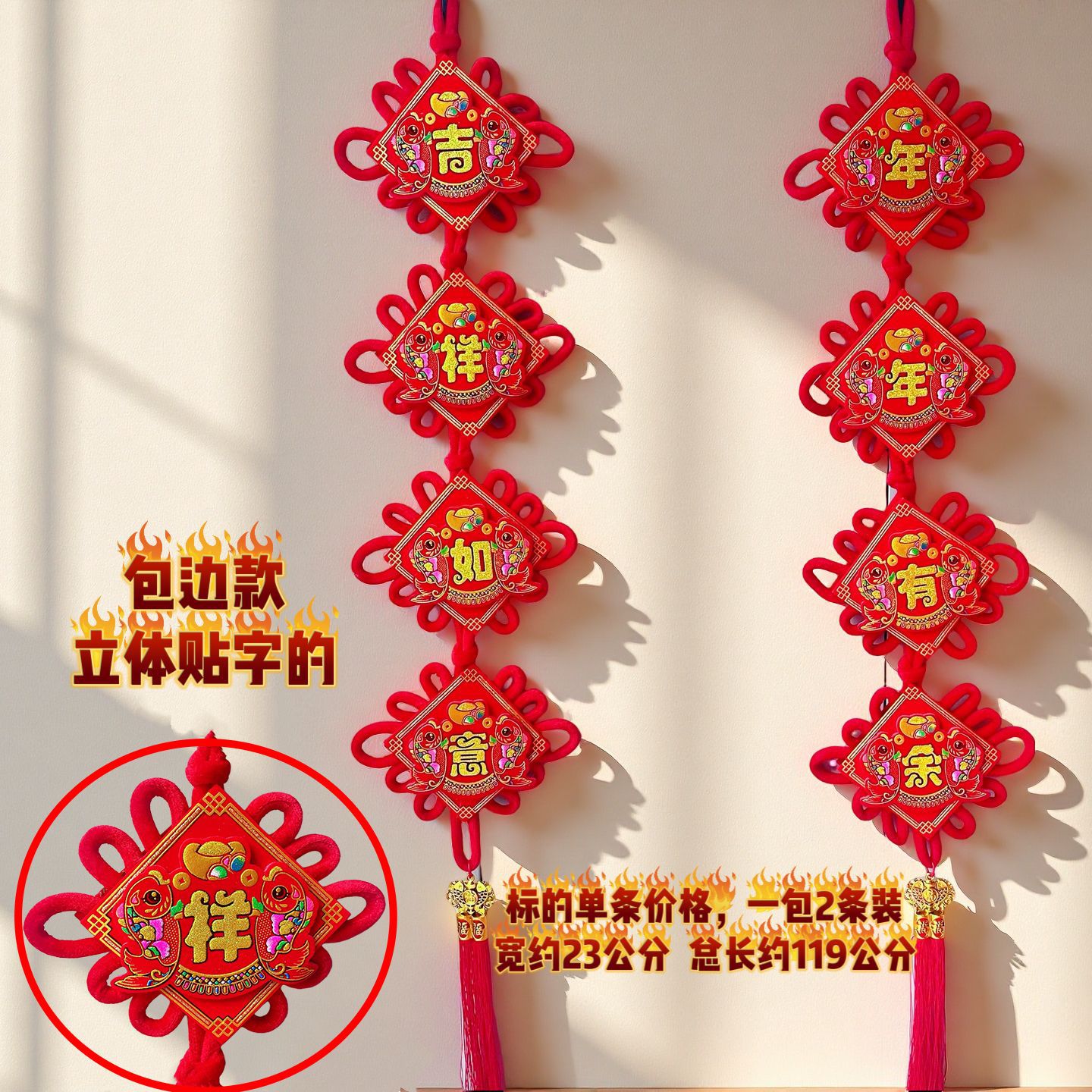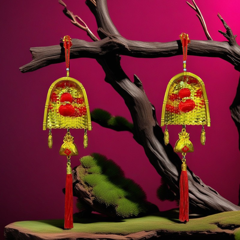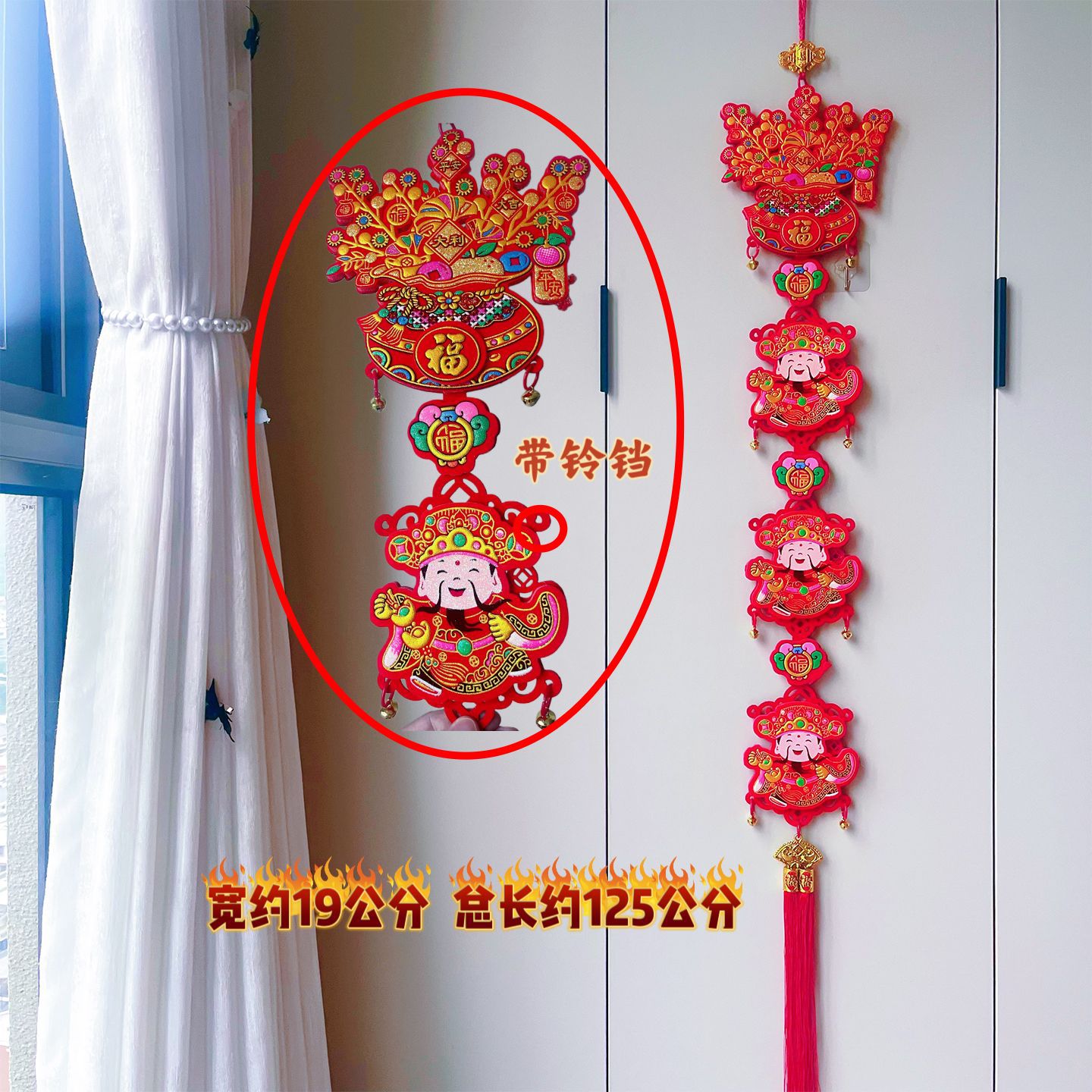 2026马年红果五连串丝光球挂件批发双鱼钱袋挂串春节装饰新年挂串