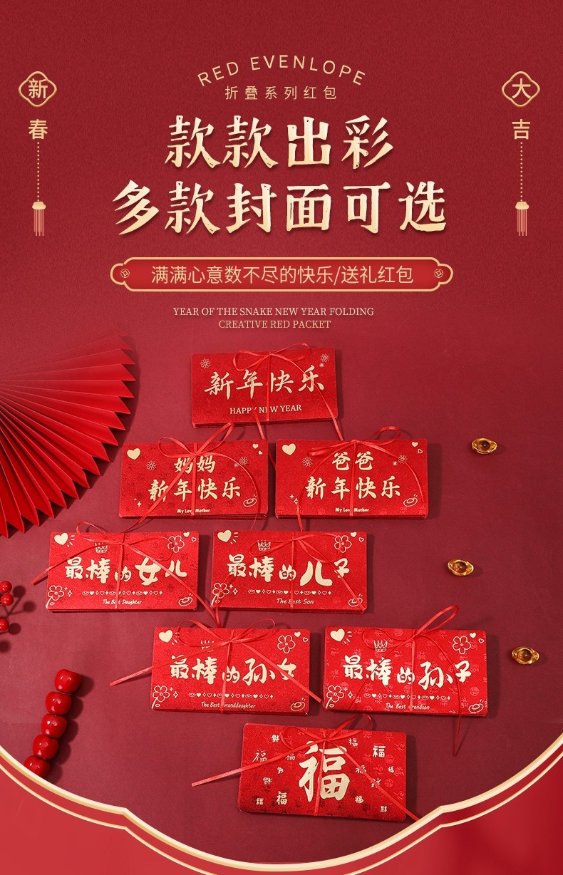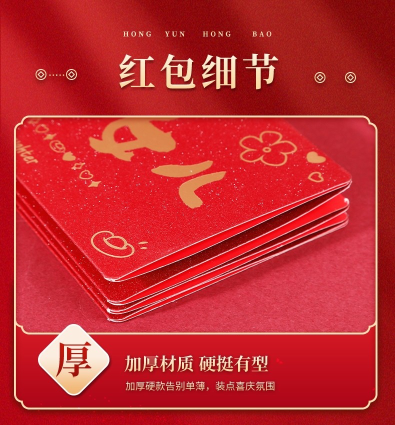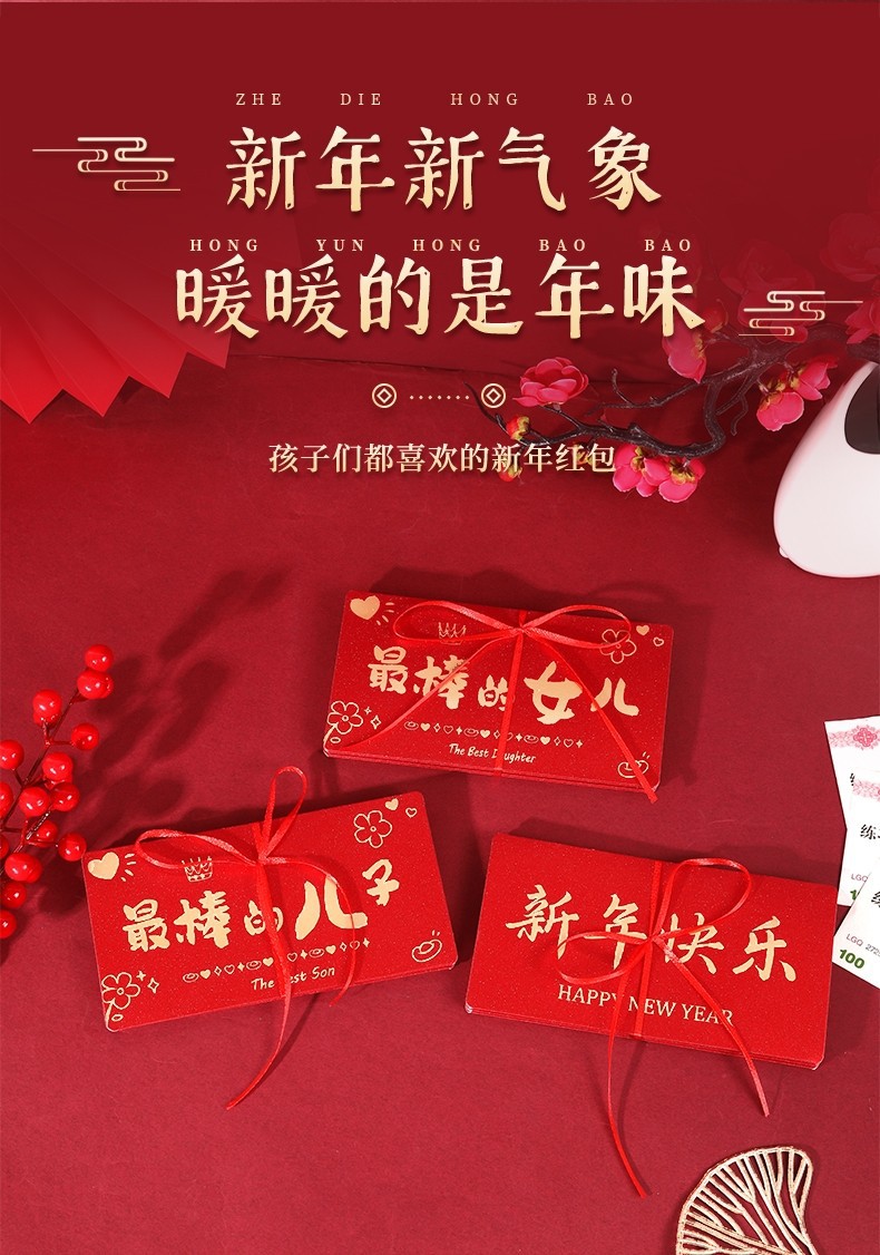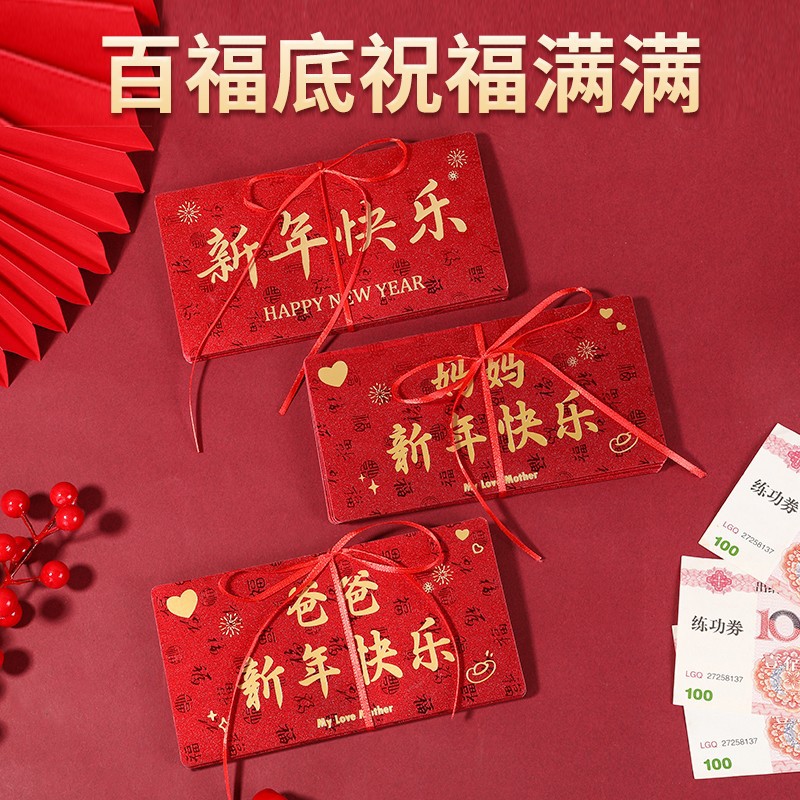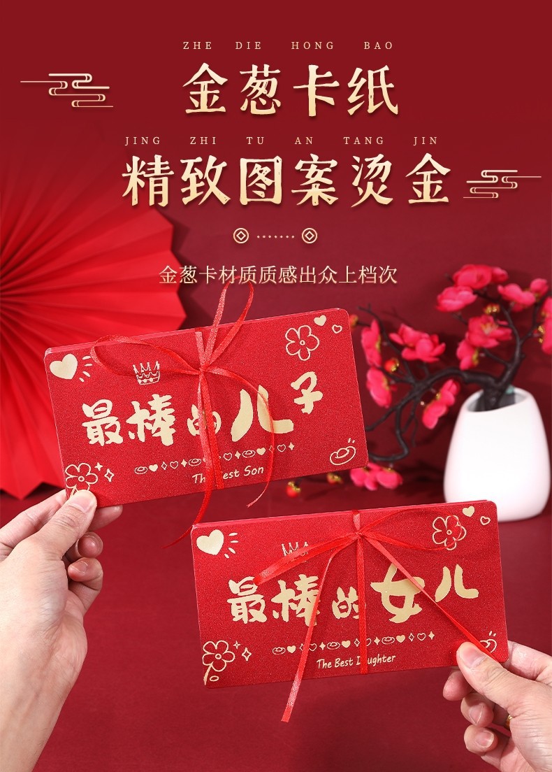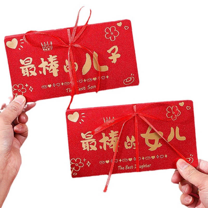 2026年马年新年快乐儿子女儿福寿金葱烫金磨砂红包利是封生压岁